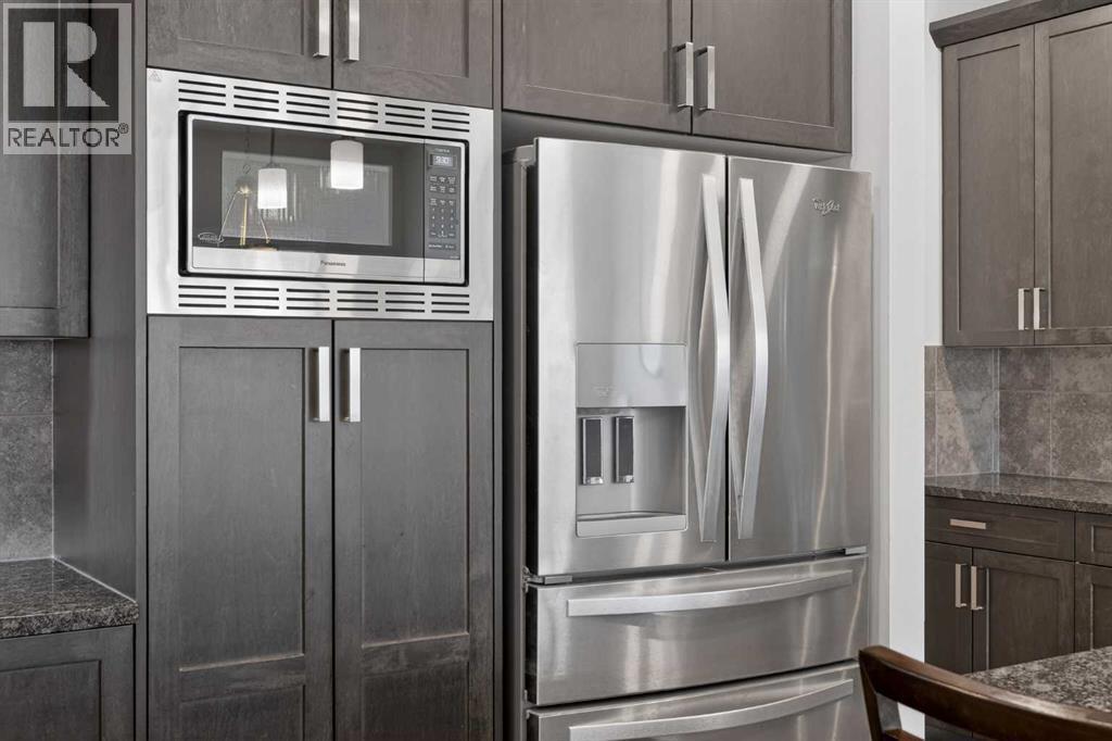 Nestled in a quiet, family-friendly cul-de-sac within one of Okotoks’ most sought-after communities, this stunning residence offers the perfect balance of small-town charm and city convenience. Situated on an expansive, sun-drenched pie-shaped lot, the property provides a massive private retreat for outdoor entertaining or play. The location is second to none—just minutes from premier shopping and world-class golf, with a seamless, 20-minute commute to South Calgary. Built in 2016 and meticulously maintained, this 2,417 sq. ft. home showcases high-quality, original finishes that stand the test of time. As you enter, you are greeted by an open-concept main floor featuring gleaming hardwood and durable tile flooring. The heart of the home is the chef-inspired kitchen, a true showpiece boasting rich custom cabinetry, premium granite countertops, a high-end gas range, and a built-in microwave. Whether hosting a dinner party or a quiet family night, the transition from the kitchen to the living room—complete with its stately gas fireplace—is effortless. Best of all, the entire home remains a sanctuary of comfort year-round thanks to the central air conditioning. The upper level is thoughtfully designed for the modern family. It features four generously sized bedrooms, including a spacious primary suite with a private 5-piece ensuite for a spa-like experience. A versatile central bonus room offers the perfect space for a home theatre or play area, while the convenience of an upper-floor laundry room, a second 4-piece bath, and upgraded finishes throughout elevate the daily routine. The Professionally Finished Basement, the living space continues into a builder-finished basement, ensuring the same high quality and seamless design as the rest of the home. This lower level is a cozy retreat featuring plush carpeting, a massive family/media room, and a fifth large bedroom with a legal egress window for maximum safety and natural light. A third full 4-piece bath completes this level, making it ideal for guests or older children. With premium A/C and an oversized lot, this property is a rare find. It combines the space of a luxury estate with the warmth of a true family home. (id:6769