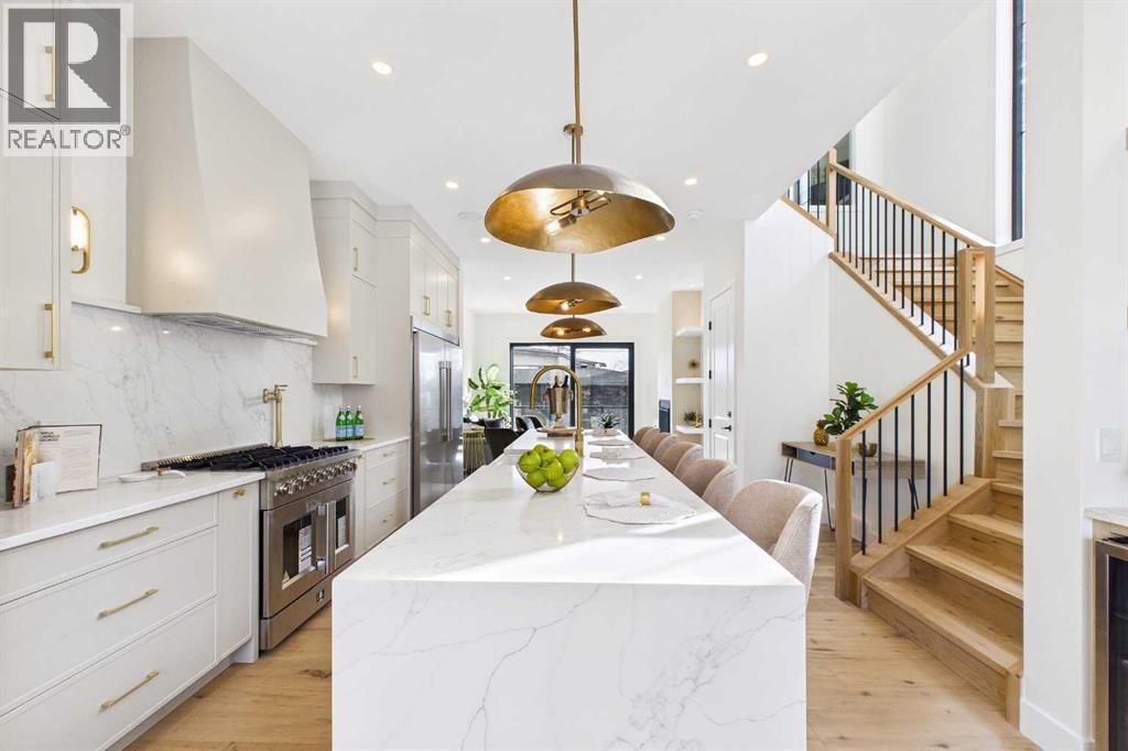 ** Open House March 14 & 15 - 2:00 pm to 4:00 pm ** Nestled on one of Spruce Cliff's most coveted streets, 418 36 Street SW stands as a testament to modern luxury and thoughtful design. Imagine a family envisioning their future, or a couple with growing needs, pulling up to their brand-new dream home. This isn't just a house; it's the backdrop for their next chapter. Stepping inside, the 10-foot ceilings on the main floor immediately captivate. Sunlight streams through unique European-style windows, which elegantly tilt or swing open, inviting the gentle breeze. The chef's kitchen is a true culinary sanctuary, featuring a premium stainless steel appliance package with a 6-burner gas range and a 60-inch fridge/freezer, a convenient pot filler, and ample prep space on the stunning 13-foot island with its farmhouse sink and waterfall quartz edge. Sleek painted thin-profile shaker cabinets and a dedicated coffee station add to the thoughtful design. Warm hardwood floors flow seamlessly, guiding them through the open-concept space. The dining area, with its stylish feature wall, promises intimate dinners. In the living room, the fully Venetian plastered gas fireplace beckons cozy evenings, while patio doors open onto a spacious composite deck, engineered for no maintenance and long-lasting durability, complete with a gas connection for BBQs. A clever secret, a hidden door, conceals the chic two-piece bathroom. As they ascend the hardwood staircase, the second floor unfolds into a haven of comfort. The large primary bedroom, a serene retreat, boasts a captivating feature wall, vaulted ceilings and a spa-like five-piece ensuite. The two additional bedrooms offer ample space for children or guests, serviced by a beautifully appointed four-piece bathroom. A dedicated office, complete with a built-in desk, provides a quiet space to focus. Hardwood floors continue throughout this level. But the story doesn't end there. Downstairs, a fully independent, two-bedroom legal suite, with durable LVP flooring, presents a world of possibilities. Perhaps for visiting family, or as a smart investment, offering the flexibility of long or short-term rentals. Beyond the immediate charm, this home offers hidden strengths and smart features. The party wall, built to code with upgraded insulation, an extra layer of 5/8" drywall, and resilient channels (Sound Bar), ensures unparalleled soundproofing. The thoughtful pre-wiring for A/C, built-in speakers, central vacuum, and Cat6 in the office and bedrooms speaks to a home designed for convenience and the future. 418 36 Street SW isn't just a new build; it's an invitation to a lifestyle. It's the beginning of countless memories and the quiet comfort of knowing you've found your forever home on a street where quality and community converge. (id:6769
