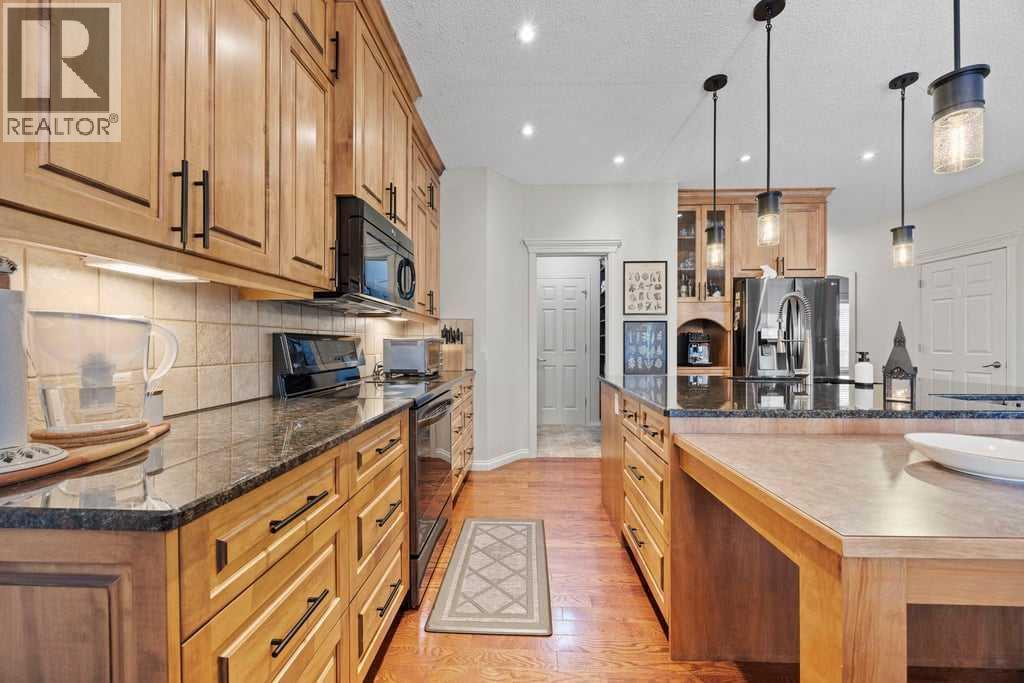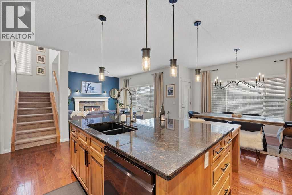 Fantastic walkout home in a quiet, friendly community — truly in beautiful condition. Filled with natural light, this home offers morning sunshine to the front and warm west sunshine in the afternoon and evening. Enjoy the space of a pie-shaped backyard, all located on a street with no through traffic. From the moment you enter, pride of ownership is evident with beautiful hardwood floors, fresh modern paint, and a stylish new lighting package that adds both function and contemporary appeal. A charming front flex room offers the perfect space for a home office, formal dining room, or relaxing sitting area. The pristine kitchen features maple cabinetry, granite countertops, and an amazing butler’s pantry, all overlooking the welcoming great room with a cozy gas fireplace — ideal for everyday living and entertaining. Upstairs, you’ll find a bright and spacious bonus room with pitched ceiling, perfect for family time, along with three generous bedrooms, including a large primary retreat complete with a walk-in closet and a private 5-piece ensuite. The fully developed walkout basement offers additional living space with a media area, fourth bedroom or office, and a 4-piece bathroom — perfect for guests or growing families. Step outside to enjoy the beautifully landscaped backyard featuring garden beds, trees and abundant perennials. This move-in ready home offers comfort, style, and an exceptional location you’ll love coming home to. (id:6769