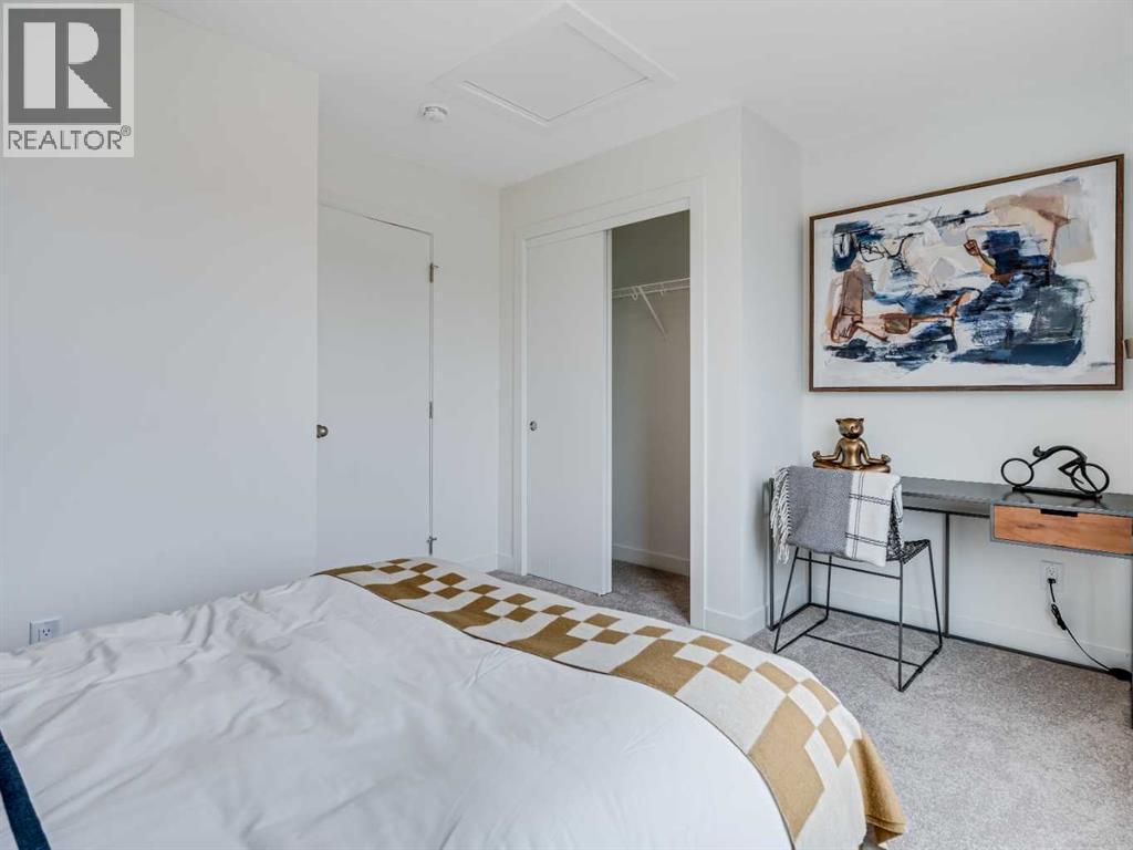 **Open House on Saturday : 1 pm-4 pm** Explore a series of stylish heritage-inspired row houses located near the center of our scenic Environment Reserve Park! This Heritage model A combines comfort and functionality, making it perfect for families and professionals. With 2 bedrooms, 2.5 bathrooms, and a flexible main-floor den, this expansive home is tailored for contemporary living. Upon entering, you will discover a bright ground-floor den or home office that includes a large window, a closet, and a handy powder room. Enjoy a beautifully landscaped front yard, a single attached garage, and additional parking in the driveway. The open-concept main floor features 9' ceilings and is bathed in natural light, creating a cozy and welcoming atmosphere for daily living or entertaining guests. The modern kitchen is equipped with quartz countertops, a breakfast bar, high-end stainless steel appliances, and a chimney-style range hood. Sliding doors lead to a full-sized balcony — perfect for unwinding or dining outside. On the upper level, there are two roomy bedrooms, including a primary suite that has a double access closet and a private ensuite with a stand-up shower and a sliding glass door. A second full 3-piece bathroom is available for the additional bedroom, which can also serve as a home office. The upper floor further includes a washer and dryer conveniently situated, a linen closet, and ample storage options throughout.This home is located in vibrant Springbank Hill and offers easy access to Aspen Landing, Rundle College, Griffith Woods, Ambrose University, restaurants, and senior care facilities.**The price includes GST. **All pictures are from show home #2225 81St SW. (id:6769