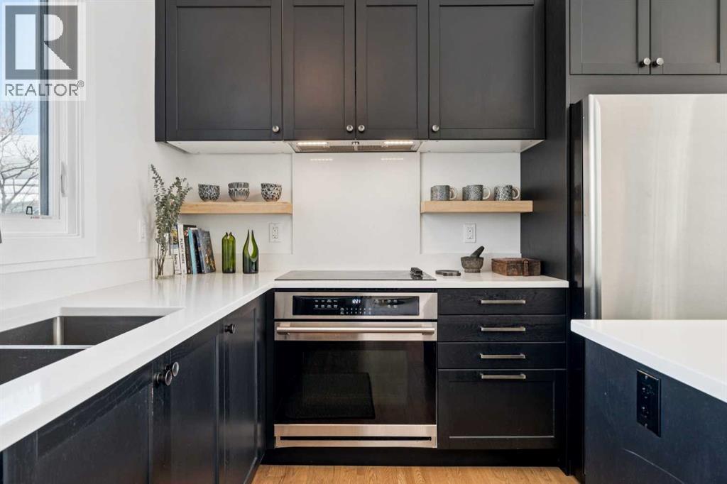 Nestled in sought-after Charleswood, this fully renovated South-facing four-bedroom bungalow offers exceptional walkability for families, professionals, or downsizers. Completed in 2021 by Harrison Pierce Homes, the comprehensive renovation blends quality craftsmanship with thoughtful, modern design. The bright layout features a vaulted ceiling in the living room and kitchen, 4 bedrooms, 2 full bathrooms, and a powder room, offering flexibility for growing families, guests, or a dedicated home office. The bungalow design provides easy, functional living with generous space across both levels. Upgrades include triple-pane windows, window dressings, added insulation for enhanced energy efficiency, a new hot water tank, water softener, new kitchen appliances and cabinets, oak hardwood flooring on the main level, and luxury vinyl plank downstairs. Layered lighting includes extensive pot-lights throughout and pendant lights.From the street, the house boasts excellent curb appeal, with wide composite stairs leading to the entrance, framed by two beautiful mature trees. Outside is a well-sized, landscaped backyard offering plenty of room for children, pets, or entertaining, complete with a spacious deck. The single detached garage provides secure parking and additional storage.This charming home is close to Alberta’s top-ranked public schools, including Banff Trail Elementary School, Branton Middle School, and William Aberhart High School (French immersion), Collingwood Elementary School, Senator Patrick Burns Middle School (Spanish bilingual) and the University of Calgary. Just steps from the C-Train Station, Brentwood Village, and Triwood Community Association, you’ll enjoy seamless access to transit, recreation, and amenities. Outdoor enthusiasts will love being within walking distance to Confederation Park and Nose Hill Park, offering year-round recreation just minutes from your door.A rare opportunity to own an immaculate, move-in-ready home in one of Calgary’s mo st established and connected inner-city communities. (id:6769