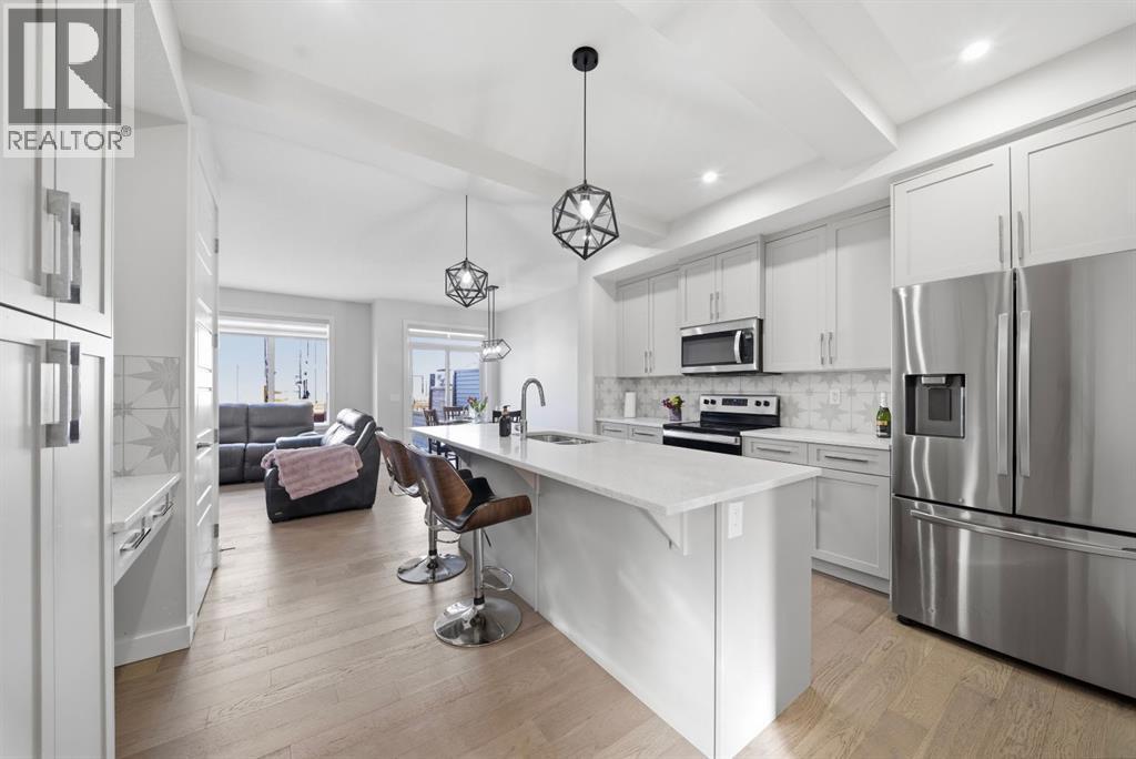 NEW PRICE!!!!! OPEN HOUSE SUNDAY MARCH 15TH 12PM-2PM | A semi-detached Duplex feels like a House, Not Communal Living. More PrivacyLess Density. Built by Douglas Homes in 2021, this move-in ready duplex is located in the vibrant community of Creekrun in Airdrie, within the sought-after Cobblestone area, just steps from pickle-ball and tennis courts, soccer fields and green space. Offering 1410.11 sq ft of thoughtfully designed above grade living space, this home combines modern style, functionality and remaining new home warranty coverage for added peace of mind.The main floor features luxury Vinyl Plank Flooring, a bright open layout, a convenient half bath and a beautifully designed kitchen centred around a large 9 foot quartz island that comfortably seats up to six, making it the true heart of the home for everyday living and entertaining. A cozy electric fireplace, oversized windows and upgraded light fixtures add warmth and character throughout. Upstairs you will find three bedrooms including a spacious primary retreat with a walk in closet with a window and a private 3-piece ensuite. A full 4-piece bathroom and the convenience of upper floor laundry complete this level. Carpet is featured upstairs with tile flooring in the bathrooms.The unfinished side entry basement offers incredible future potential and the possibility for a legal suite (subject to city approval). Step outside to a fully fenced yard with a deck already built, a generous backyard and an attached single garage with ample storage.Additional highlights include a smart thermostat, electric range, over-the-range microwave hood fan, quartz countertops and a functional, well-planned layout throughout. There are no condo fees.The Alberta New Home Warranty began September 28, 2022 and includes five-year building envelope coverage and ten-year structural coverage.Creekrun is one of Airdrie’s newest and fastest growing communities, offering future schools, parks, pathways and quick access to shopping, Planet Fitness, No Frills and other everyday amenities, all within minutes. This is a rare opportunity to own a nearly new home in a growing, family friendly neighbourhood with long term value and income potential. (id:6769