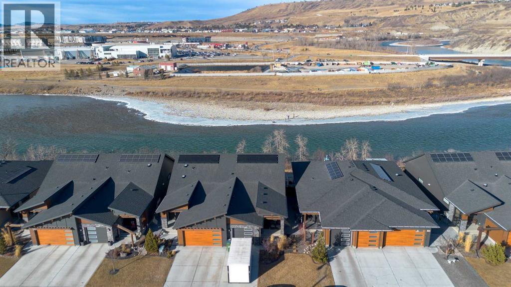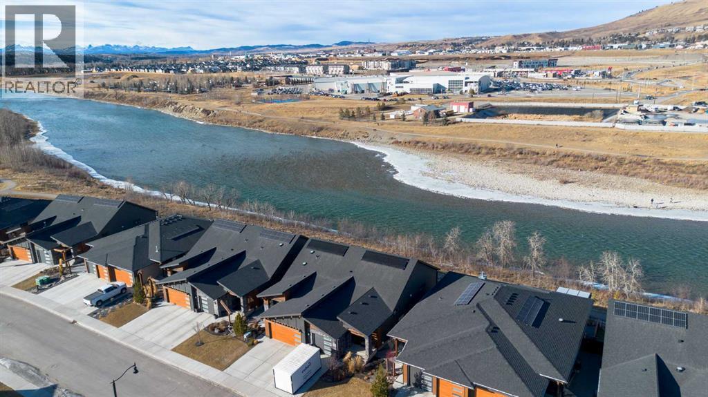Welcome to Rivers Edge, where luxury villa living meets the natural beauty of the Bow River. Perfectly positioned in the tranquil community of Riviera, this exceptional semi-detached walk-out bungalow offers an unparalleled lifestyle in Cochrane. With a breath taking view and a location that truly cannot be beat, this home blends peaceful surroundings with refined comfort.Situated on a quiet, private street and backing directly onto the river, you can unwind in your spa-like backyard oasis that is complete with a hot tub, fully fenced yard, and professionally landscaped, low-maintenance grounds all while listening to the soothing sound of flowing water. A pathway just beyond your back gate invites you to enjoy scenic nature walks anytime.Inside, the home welcomes you with an expansive front entry and oversized closet, setting the tone for the open, airy design throughout. The main floor features 9-foot ceilings, a bright den, elegant powder room, and a stunning open-concept kitchen with a large centre island, quartz countertops, and high-end appliances, including a built-in gas range. The dining and living areas are filled with natural light and open onto a deck where river and mountain views create an unforgettable backdrop.The spacious primary retreat is also on the main level and offers a luxurious ensuite with double vanity, standalone shower, and walk-in closet with laundry hookups for added convenience.Downstairs, the fully finished walk-out basement is designed for both entertaining and relaxation, featuring a large recreation room with a show-stopping wet bar, a second cozy family room for movie nights, a bright second bedroom, a stylish 3-piece bath, dedicated laundry room, and generous storage space.Additional highlights include tankless hot water, solar panels, underground sprinklers and a single insulated attached garage.This is refined riverside living at its finest. A rare opportunity to own a sophisticated home in one of Cochrane’s most pi cturesque settings. (id:6769