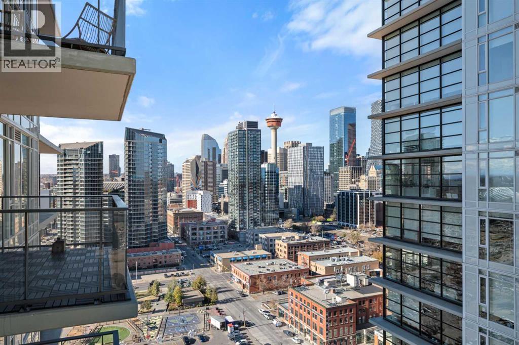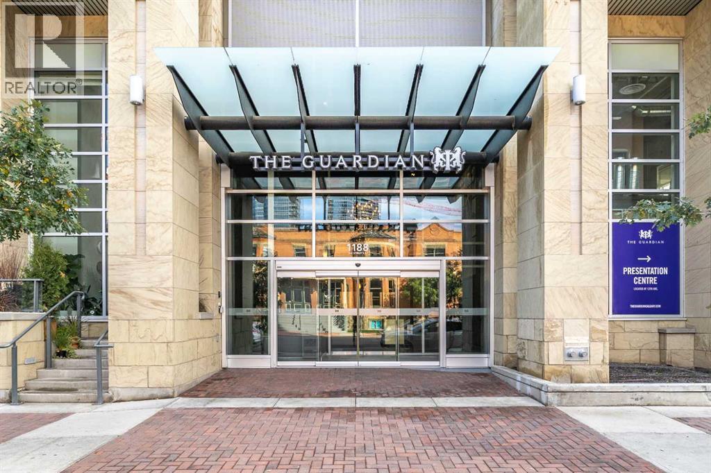 Experience elevated urban living with a VIEW in this modern one bedroom condo with titled underground parking in The Guardian South Tower, one of Calgary’s most iconic high rise communities loaded with next level amenities.Inside, the thoughtfully designed open concept layout is anchored by a sleek contemporary kitchen featuring integrated executive style appliances including a hidden refrigerator, elegant quartz countertops, and modern cabinetry. The space flows seamlessly into the dining and living area, where floor to ceiling windows flood the home with natural light. Durable LVP flooring runs throughout, offering a clean modern look with easy maintenance.Step out onto the spacious covered balcony and take in vibrant city views and stunning sunsets. Glass railings showcase the Calgary skyline, including the iconic Calgary Tower.Residents enjoy impressive amenities including a massive social club with fireplace, big screen TVs, Wi Fi, and lounge seating, a fully equipped fitness centre that rivals most commercial gyms, and a beautifully landscaped garden terrace. The home includes titled, secure, heated underground parking. The building is pet friendly with approval and professionally managed, making it ideal for professionals, investors, or anyone wanting a low maintenance downtown lifestyle.Located in the heart of the Beltline, you are steps from the Stampede Grounds, Scotiabank Saddledome, transit, casinos, and endless restaurants, cafés, and shopping.A rare opportunity to own in one of Calgary’s most sought after towers. Walkability and true urban living at its finest. Book your private viewing before it’s gone. (id:6769