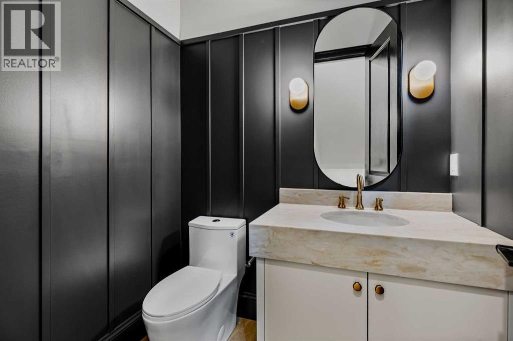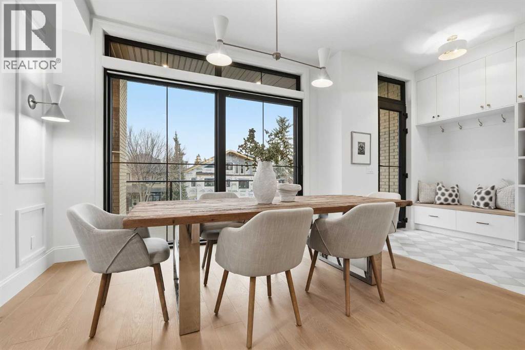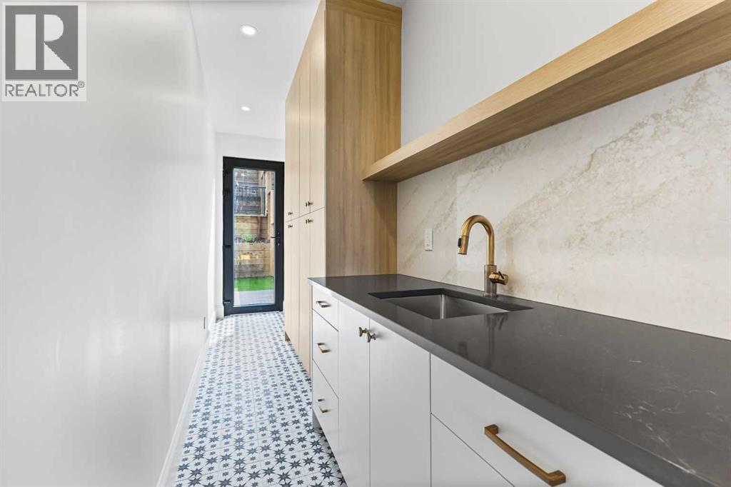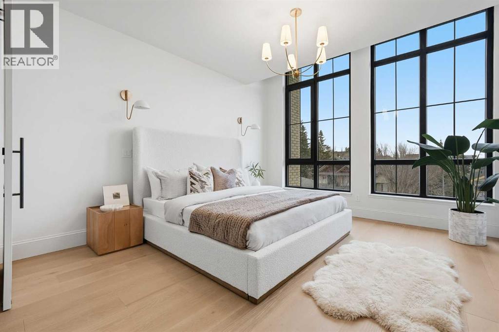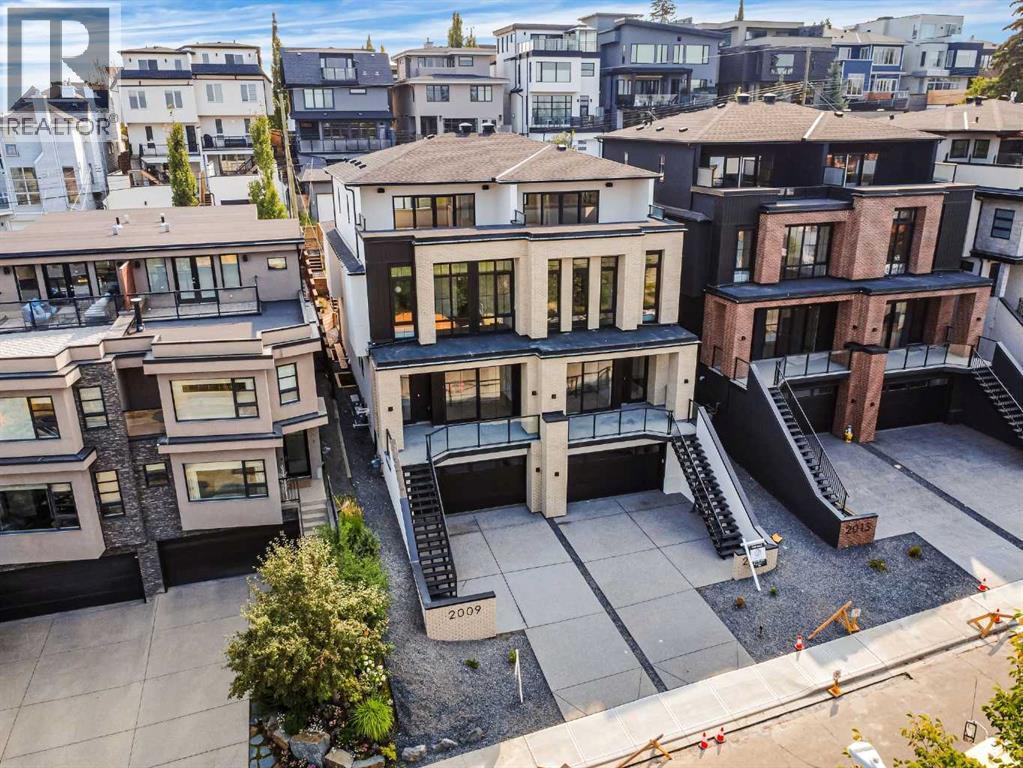 Experience quiet luxury at its finest in this stunning three-storey home, set on one of the highest points in Calgary with uninterrupted skyline views from all levels, and steps from Marda Loop. The exterior makes a striking first impression with its blend of classic white brick detailing, black accents, and timeless stucco. The curb appeal is enhanced by clean glass railings, low-maintenance landscaping, and a welcoming front balcony. Step into a beautiful and functional foyer, complete with custom built-in millwork, a bench, and smart storage including hanging compartments, open shelving, and pull-out drawers. The open-concept design includes a dedicated dining area surrounded by massive sliding doors that lead to the balcony. This is styled for intimate dinners, elevated entertaining, or just enjoying a coffee with stunning skyline views.At the heart of the home, the chef’s kitchen is a true masterpiece. It features a 14-foot island with quartz from Hanstone (made in Canada), a quartz backsplash, plaster textured hood fan, pot filler, and oversized premium appliances including a 48” dual oven gas range and a 66” built-in fridge/freezer. There is a butler’s pantry with sink and cabinetry, mud room, coffee bar, and tons of storage including under the island. The kitchen is set up to be not only beautiful but also functional and includes a garbage drawer, bar cooler, and spice racks/cabinetry. Across from it, the living room centers around a beautiful fireplace and custom built-ins which make it cozy, refined, and made for real living. Large doors lead to the deck and the sunny south facing backyard, that is tiered, turfed and truly low maintenance. Throughout the home, you’ll enjoy tons of natural sunlight from the large windows, 10-foot high ceilings, arched transitions, and wide-plank engineered hardwood create a warm and elevated flow.Upstairs, the primary suite is a serene retreat with a spa-like ensuite featuring a steam shower, dual vanity, custom tilew ork, and skyline views. Secondary bedrooms are generously sized, each with walk-in closets, and connected by a stylish bathroom ideal for kids or guests.The third level includes a beautiful rooftop patio where you can soak in the skyline views, a stylish bathroom with nice finishes, a rec/living area with built-in storage and a gas fireplace. There is a large wet bar with LED lighting in the cabinetry, beatiful tile, shelves and bar fridge. This is the ultimate entertaining area to host friends and family.The fully finished basement extends the living space with heated floors roughed-in, a large flex room or guest suite, and full bathroom. Additional features include a heated double attached garage with epoxy flooring, integrated speakers and security system, central A/C, roughed-in heated driveway.Whether you're enjoying a quiet morning in the sun, hosting friends on the rooftop, or watching the city light up at night, this home was built for a lifestyle that’s elevated and timeless. (id:6769