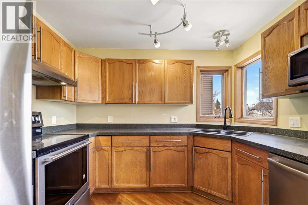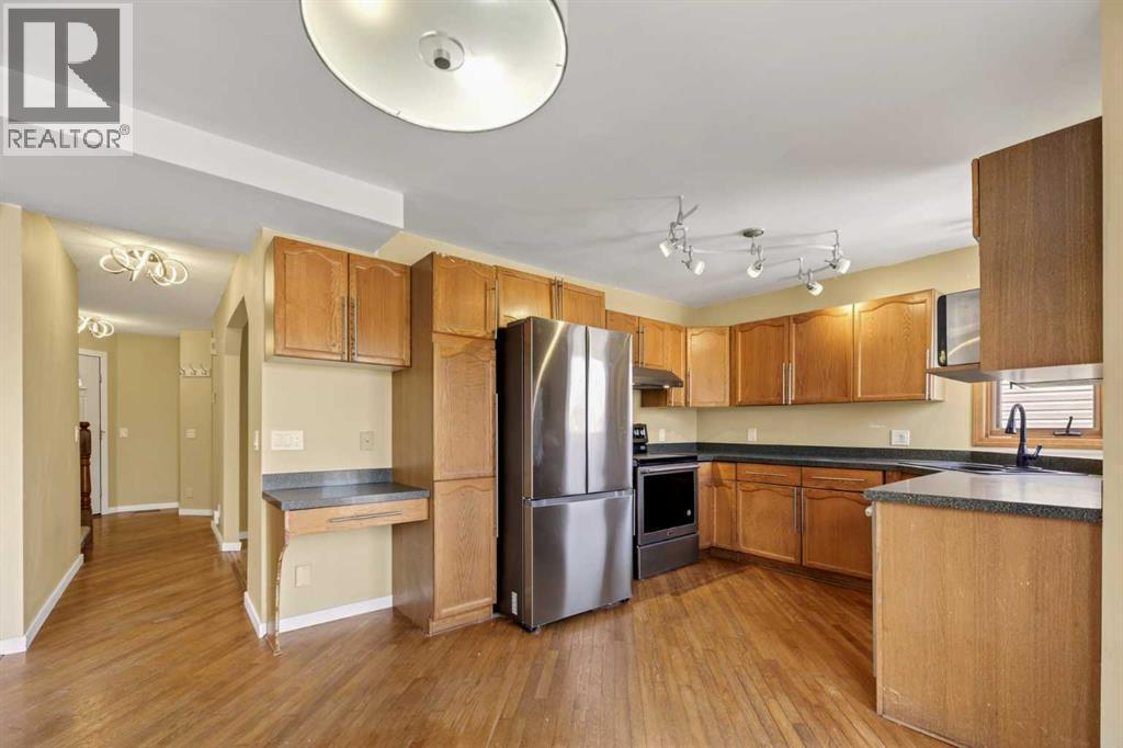 Ready to step into Calgary's serene neighbourhood of Riverbend? Look no further than this stunning home, nestled by green spaces, upgraded for peace of mind, and prepared for your unique touch. Stepping into the home from the upgraded front porch you are greeted by a large entry foyer, living room, and hallway access to your storage closets + laundry room, half bathroom, and side entrance/exit. Passing the separate dining space you enter the heart if the home, with a modern equipped kitchen and family room bolstered with a real wood burning fireplace for those cozy winter evenings! Several large NE facing windows allow natural light to brighten the space further while also inviting you to step out onto your elevated balcony and soak in nature. Moving to the upper level this home is equipped with 2 full bedrooms their corresponding 4 piece bathroom, as well as your primary bedroom and attached walk-in closet + 4 piece ensuite bathroom. All of that combined with a finished walkout basement that includes a storage/utility room, oversized rec room + wet bar, and another 4 piece bathroom... you have access to over 2536 sq/ft of useable living space! Outside the sliding basement doors you have a large backyard plus a fully built separate patio for all your summer hosting needs. The private fence gate allows you to freely walk the green space and walking/bike paths adjacent to your backyard, and connects your property to open parks + playgrounds! Additional features in this home include the large double garage, fenced in dog-run by your side entrance/exit, and of course... NO POLY B PIPING! Not only does this home include modern touches, but it also provides peace of mind through its numerous upgrades that include: new washer/dryer in 2021, an upgraded porch/balcony/patio in 2022, new roof and gutters in 2023, FULL Poly B replacement in 2024, new fridge in 2025, and a brand new boiler for 2026. Need further peace of mind? The upgrades are logged with receipts and big ticke t items include a transferable warranty!! Don't miss out on this amazing home! Schedule a showing today to see it for yourself! (id:6769