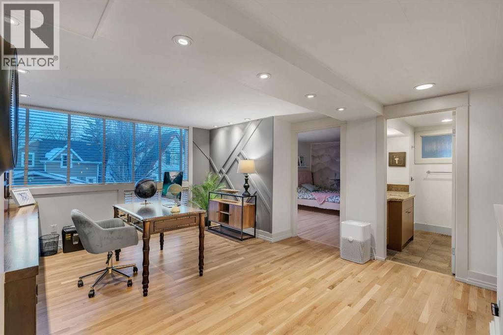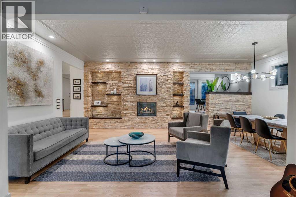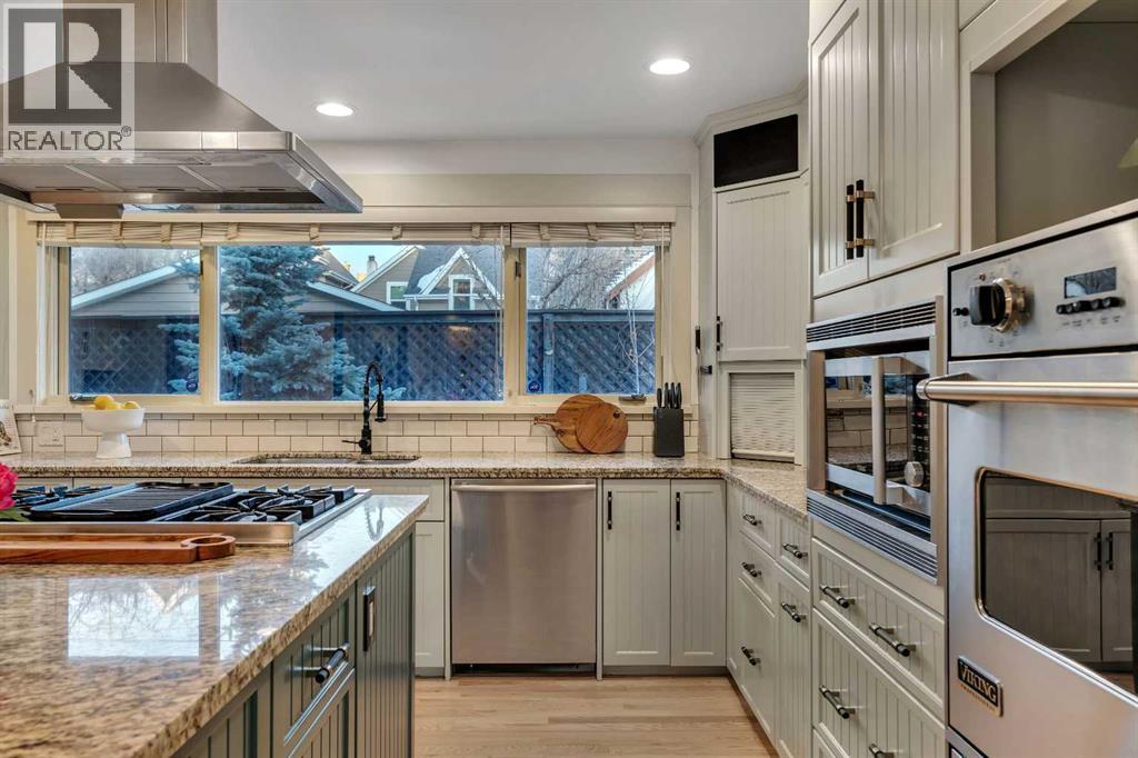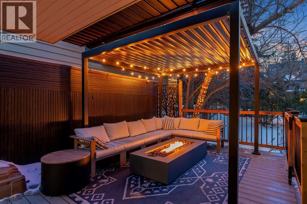 Perfectly positioned in the heart of Elbow Park, just moments from the Glencoe Club and the picturesque pathways along the Elbow River, this impressive residence offers 3,574 sq ft of above-grade living space with an oversized attached garage in one of Calgary’s most prestigious neighborhoods.A rare feature of this home is the expansive west-facing front yard framed by mature trees and natural privacy. A covered front deck, accessed directly from the dining room, overlooks a welcoming fire pit area and creates seamless indoor-outdoor living for both summer evenings and cozy winter gatherings. The rear deck has also been redesigned and covered, offering year-round functionality and easy access from the kitchen.Inside, newly refinished hardwood floors lead into a elegant living room anchored by a striking stone fireplace and detailed ceiling design. The formal dining area connects effortlessly, making the space ideal for elegant entertaining. The thoughtfully positioned and refinished kitchen features granite countertops, a generous island, stainless steel appliances, abundant storage, and a breakfast nook with built-in seating and wet bar.The second level includes a versatile and cozy second living room with a massive 12 ft window overlooking the yard, a dedicated office that can be enclosed to create an additional bedroom if desired, two very spacious bedrooms including one with its own ensuite, a full bath, and a large laundry room with extensive built-in cabinetry and linen storage.The entire top floor is dedicated to a private primary retreat with vaulted ceilings, a sitting area with double-sided fireplace, a spa-inspired ensuite, dual walk-in closets, additional linen cabinetry, and a separate office space ideal for working from home in complete privacy.The developed basement offers a generous theatre, gym and games area, adding further flexibility for family living.Extensive recent upgrades include triple-pane windows in most areas, refinished hardwood f loors, new upper-level carpet, refinished kitchen cabinetry, upgraded millwork, a renovated secondary bedroom, updated roofing including a new flat roof, new covered decks, new metal gates and an EV charger for added convenience.Walk to top-rated schools, 4th Street shops and restaurants, transit, and enjoy a quick commute to downtown. A rare offering in one of Calgary’s most established inner-city communities, this beautifully maintained residence provides the space, privacy, and thoughtful design many buyers seek, without the need for renovation or compromise. (id:6769