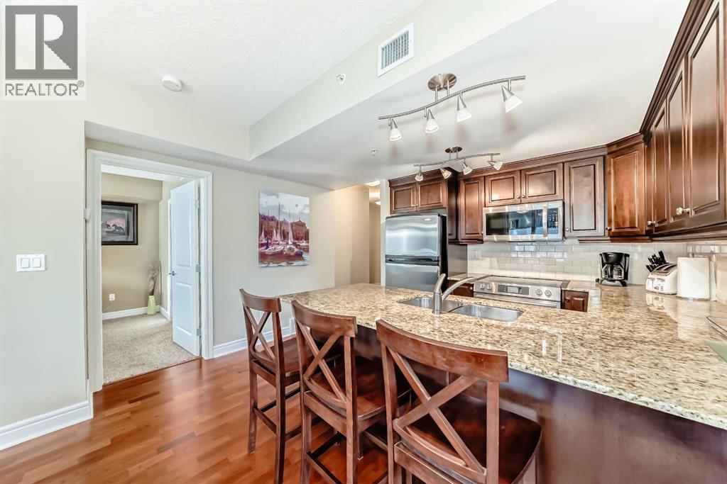 An exquisite residence located in the esteemed FIVE WEST – Phase 2, nestled in the vibrant heart of Downtown. This luxurious haven showcases a clever layout adorned with air conditioning, two secluded bedrooms, two well-appointed bathrooms, a conveniently structured office nook, and a charming fireplace for those cozy evenings. All these attributes speak volume of its move-in readiness that uniformly exudes evident pride of ownership. Situated in the epicenter of all amenities, this property is within an arm's reach to the serene Bow River, an extensive pathway system, a diverse range of restaurants, and shopping outlets. The Downtown Core and LRT access are effortlessly walkable, engraving a superb urban living experience. Entering this home you will find a modernized kitchen adorned with pristine granite countertops and stainless appliances. It flawlessly opens onto the dining and living room, illuminated by floor-to-ceiling windows that radiate natural light. The corner fireplace amplifies the ambiance, and a private balcony comes complete with a gas bbq outlet, perfect for the al fresco dining experience. The generously sized master bedroom boasts a comprehensive 4-piece ensuite with jetted tub and sizeable walk-in closet. The second bedroom ingeniously features a door to a second 3-piece bathroom, ensuring privacy for all occupants. Further home amenities include a custom-built computer nook and spacious in-suite laundry, showcasing well-thought-out efficiency. The building's perks include a heated, underground parking, a dedicated storage unit, an inviting party room that opens onto a private sun deck, dutiful concierge service, and a handy car wash. Indoor visitor parking is also graciously provided, putting your company's convenience at the forefront. Don't miss this golden opportunity. Contact your agent today for a private viewing and let this property pique your house-hunting desire! (id:6769