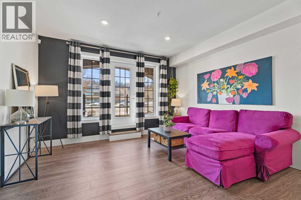 Welcome to The Riviera in Parkdale, offering refined inner-city living in one of Calgary’s most desirable riverfront communities. Ideally located directly across from the Bow River and its extensive pathway system, this location provides easy access to Kensington, Downtown, Foothills Hospital, and Alberta Children’s Hospital.This south-facing main floor 1 bedroom + den unit offers over 665 sq ft of thoughtfully designed living space with 9’ ceilings and large windows that fill the home with natural light. The modern kitchen features quartz countertops, quality appliances, a pull-out pantry, and a large island, opening seamlessly to the bright living area.Additional features include laminate flooring, in-suite laundry, central A/C, in-floor heating, central water softener, and extensive soundproofing. Enjoy the spacious south-facing patio with pleasant river valley views. The primary bedroom is bright and comfortable with convenient access to the 4-piece bath complete with a soaker tub.The Georgian-inspired Riviera building showcases a stunning lobby with 20’ coffered ceilings and elegant chandeliers, and the unit includes titled underground parking and an assigned storage locker.An excellent opportunity for professionals and investors seeking a premium location close to hospitals, downtown, shops, restaurants, and Calgary’s beautiful river pathways. Contact your favourite realtor today to book a showing! (id:6769