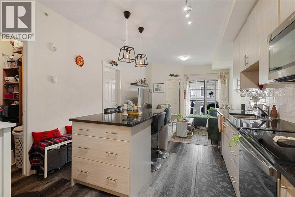 Welcome to Unit - 2414 at 298 Sage Meadows Park NW — a beautifully designed top-floor condo built in 2020, nestled in the desirable northwest community of Sage Hill. This modern, move-in ready home offers 2 spacious bedrooms, 1 full bathroom, and stunning East-facing views of the peaceful pond and surrounding park.Inside, you'll find a bright, open-concept layout featuring 9’ ceilings, durable Luxury Vinyl Plank flooring throughout, and an abundance of natural light from oversized windows. The stylish kitchen is a true highlight, equipped with sleek quartz countertops, full-height cabinetry, stainless steel appliances, and a large island with seating—perfect for cooking, entertaining, or enjoying takeout nights.The living area flows seamlessly off the kitchen, offering a cozy space to relax and unwind. Step out onto your private balcony to enjoy your morning coffee with tranquil water views. The primary bedroom features a generous walk-in closet, while the second bedroom offers versatility for guests, a home office, or even a roommate setup. A well-appointed 4-piece bathroom is conveniently located nearby.Additional features include in-suite laundry, titled surface parking, and a storage locker—ideal for seasonal items, sports gear, or extra storage. This well-managed building offers access to scenic walking paths, green spaces, and nearby ponds and parks, all just steps from your door. (id:6769