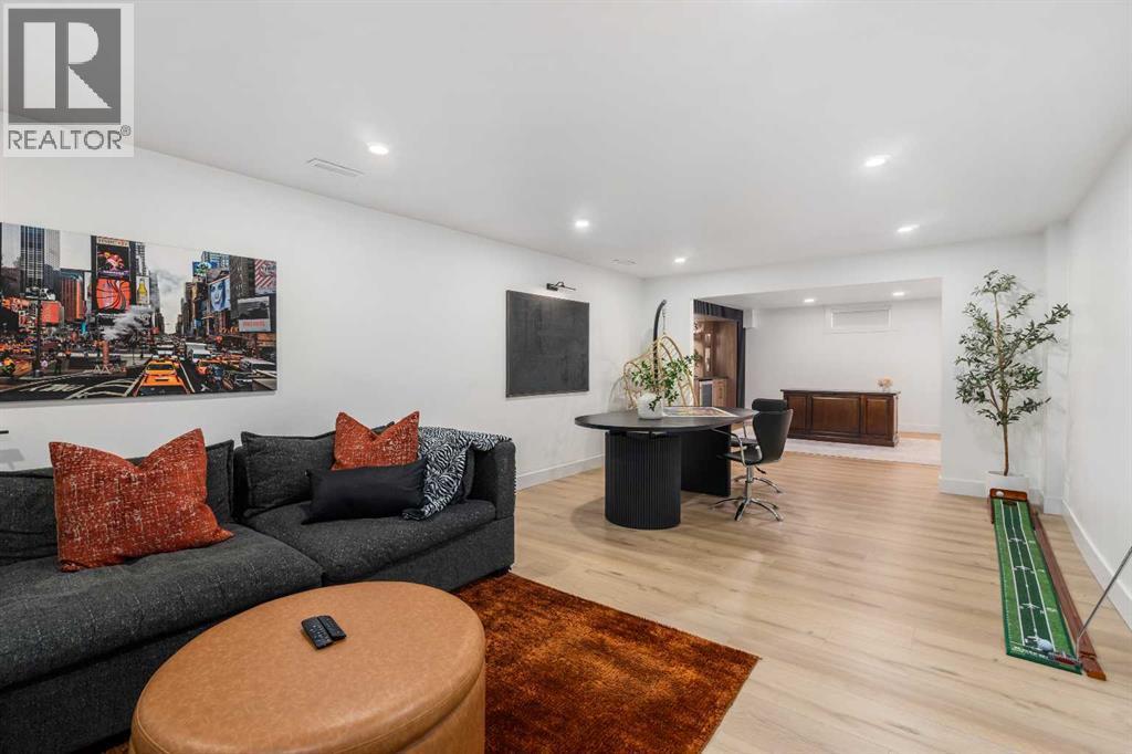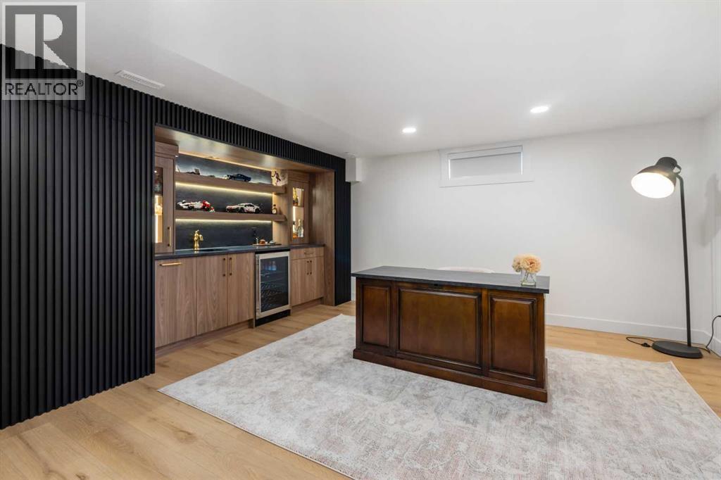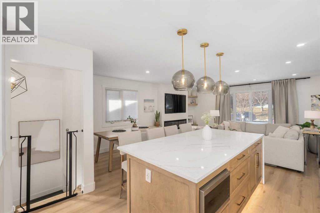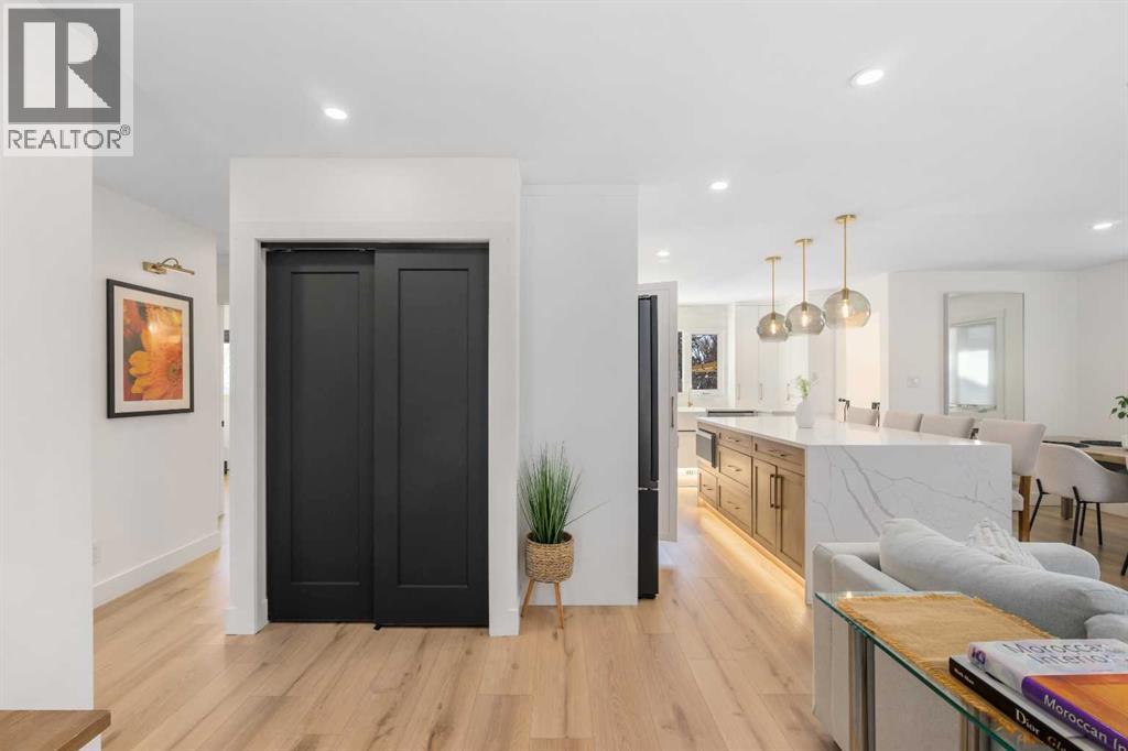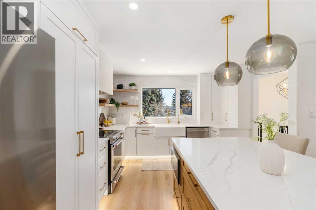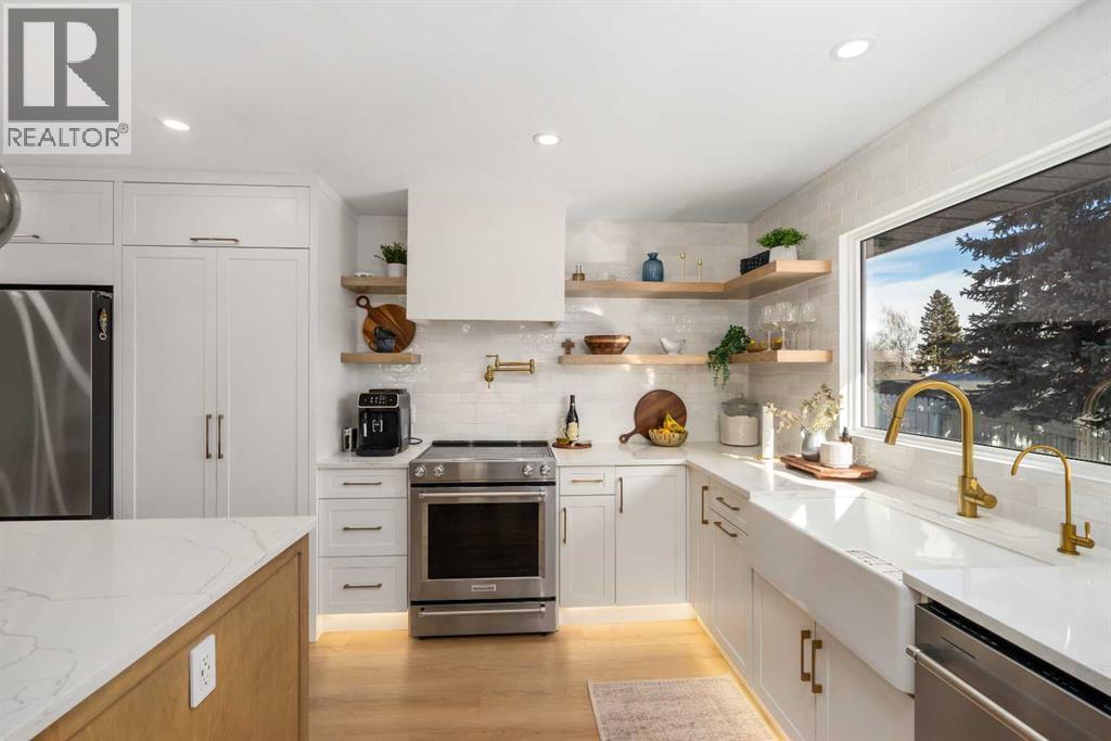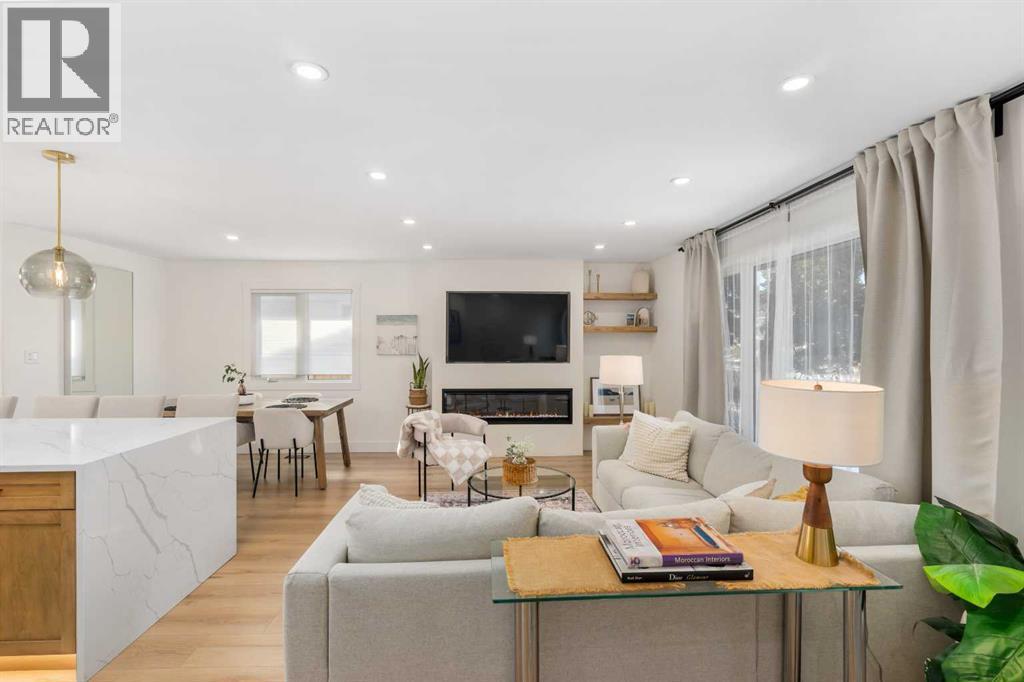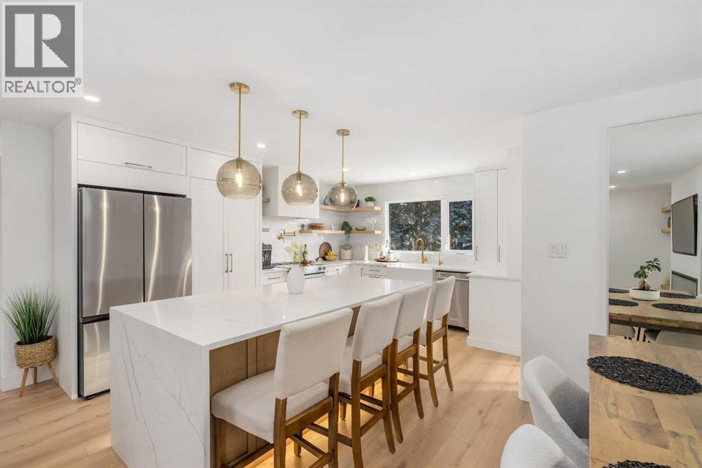 Experience a refreshing new twist on the renovated home—one that honours the original character and thoughtful space planning while introducing a modern design with carefully curated materials and a warm, inviting colour palette. Unlike the typical all-white renovations, this home offers a balanced and sophisticated aesthetic from the moment you step through the front door. The main floor welcomes you with an open and airy layout that seamlessly connects the kitchen, dining area, and living room. At the heart of the home is a beautifully designed kitchen featuring a large centre island—intentionally uninterrupted by sinks or cooktops—allowing the premium quartz surface to shine as both a functional workspace and gathering place. Natural wood grain cabinetry on the island adds warmth and contrast to the elegant off-white upper cabinets. A farmhouse sink provides both style and practicality for handling larger pots and pans, while the window above offers a peaceful view of the spacious backyard. Ample cabinetry ensures plenty of storage, with room to expand if desired. The dining area comfortably accommodates gatherings of eight and flows effortlessly into the living room, where a sleek electric fireplace creates a welcoming focal point. Above the fireplace, a perfectly framed niche offers space for artwork or a mounted television, complemented by wood shelving with integrated lighting. The living room provides a backdrop of large windows that fill the space with natural light. The main level has three bedrooms, including a primary retreat with a convenient 2-piece ensuite and walk-in closet, along with two additional bedrooms located near the stylish 4-piece bathroom. The fully developed basement expands the living space with a large family room and an impressive games and entertainment area complete with a modern wet bar that could rival any downtown lounge. A generous fourth bedroom comfortably fits a king-sized bed with nightstands, and a contemporary 3-piece ba throom completes this level. Outside, the large backyard offers mature trees and a welcoming outdoor space featuring a concrete patio and Rundle rock firepit area—perfect for relaxing evenings or entertaining. Additional features include Central A/C, and an extra-wide double detached garage adds convenience and functionality. Situated in the established community of Canyon Meadows, this home offers excellent access to nearby schools including Canyon Meadows Elementary, St. Catherine Elementary, Robert Warren School, and Dr. E.P. Scarlett High School. Residents enjoy exceptional amenities such as Fish Creek Provincial Park, Canyon Meadows Golf & Country Club, the Canyon Meadows Aquatic & Fitness Centre, Trico Centre for Family Wellness, Southcentre Mall, and Willow Park Village. Commuting is effortless with convenient access to Macleod Trail, Anderson Road, and Stoney Trail, along with a short walk to the Canyon Meadows LRT Station. (id:6769