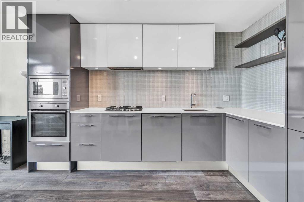 Welcome to elevated urban living in the heart of downtown Calgary. This modern 1-bedroom unit is located on the 21st floor of the Mark on 10th building, offering stunning south-facing views, 9-foot ceilings, and floor-to-ceiling windows for abundant natural light. The open-concept layout includes wide plank flooring, full-height Nobilia cabinetry, quartz countertops, gas cooktop, Liebherr built-in appliances, and a pull-out spray Kohler faucet. The unit comes with a titled heated underground parking stall and a separate out-of-suite storage locker. The Mark on 10th offers premium amenities including a rooftop hot tub, patio with BBQ and firepit, gym, steam room, sauna, owners' lounge, garden terrace, secure bike storage, car share, and dog wash area. A perfect opportunity for professionals or investors seeking quality living in the Beltline. (id:6769
