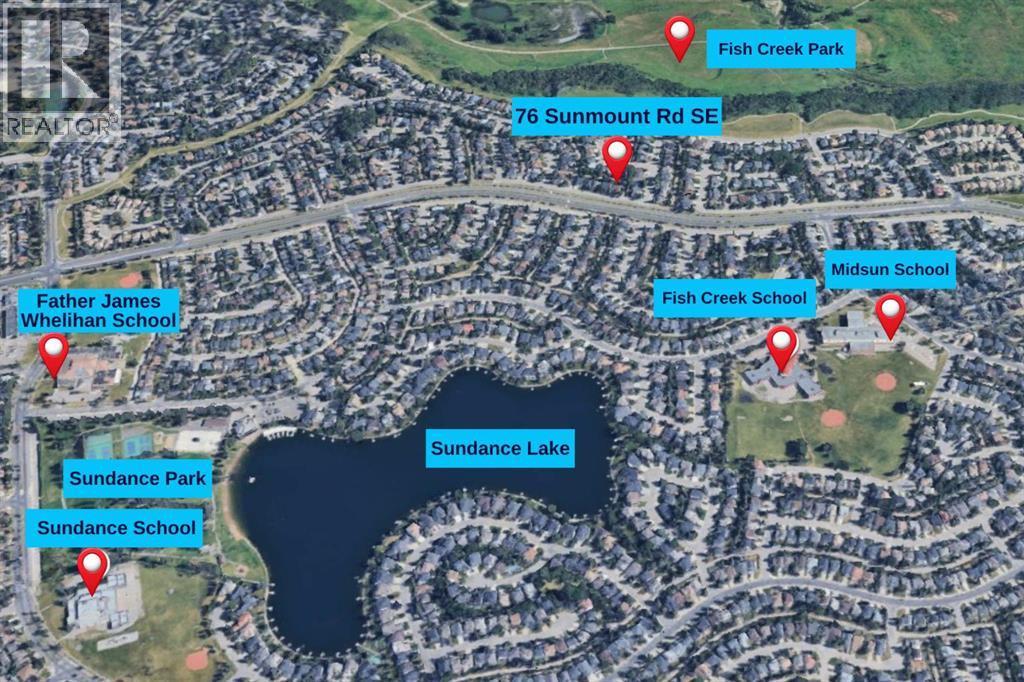 ***OPEN HOUSE SUNDAY MARCH 15 2-4 PM*** 76 Sunmount Rd SE – Beautiful Bungalow in the Private Lake Community of Sundance. Welcome to this warm and inviting home located in the private lake community of Sundance, one of Calgary’s most sought-after family neighbourhoods. Offering year-round lake access, excellent schools, parks, and convenient amenities, this is a wonderful place to call home. Step inside to a large tiled foyer featuring a convenient storage bench, which can easily be converted back to its original planter feature. Just a few steps up, you are welcomed into the bright living and dining room, a perfect space for entertaining family and friends. The living room is highlighted by a cozy wood-burning fireplace, creating a welcoming focal point. The heart of the home is the beautifully designed kitchen and family area. Light hardwood flooring flows throughout this space, complemented by a second wood-burning fireplace located in the kitchen sitting area that creates a warm and inviting atmosphere. The kitchen is a chef’s dream, featuring a butcher block island, quartz countertops, stainless steel appliances with microwave hood fan, and ample cabinetry for storage. Just off the kitchen is the large breakfast nook, surrounded by windows and leading to the private backyard, providing a bright and cheerful place to enjoy your morning coffee or casual meals. The spacious primary retreat offers a peaceful place to unwind, complete with a walk-in closet and private ensuite. Conveniently located nearby is the laundry area, adding everyday convenience. The fully finished basement offers incredible additional living space with two bedrooms, a den that could easily be converted into another bedroom with the addition of a wardrobe, a 4-piece bathroom, and a massive games and recreation room with wet bar, perfect for entertaining or family movie nights. There is also plenty of storage space. Living in Sundance means enjoying year-round lake activities including swimm ing, skating, fishing, paddleboarding, and community events, making this one of Calgary’s most desirable lake communities. Don’t miss your opportunity to own this fantastic home in Sundance. (id:6769