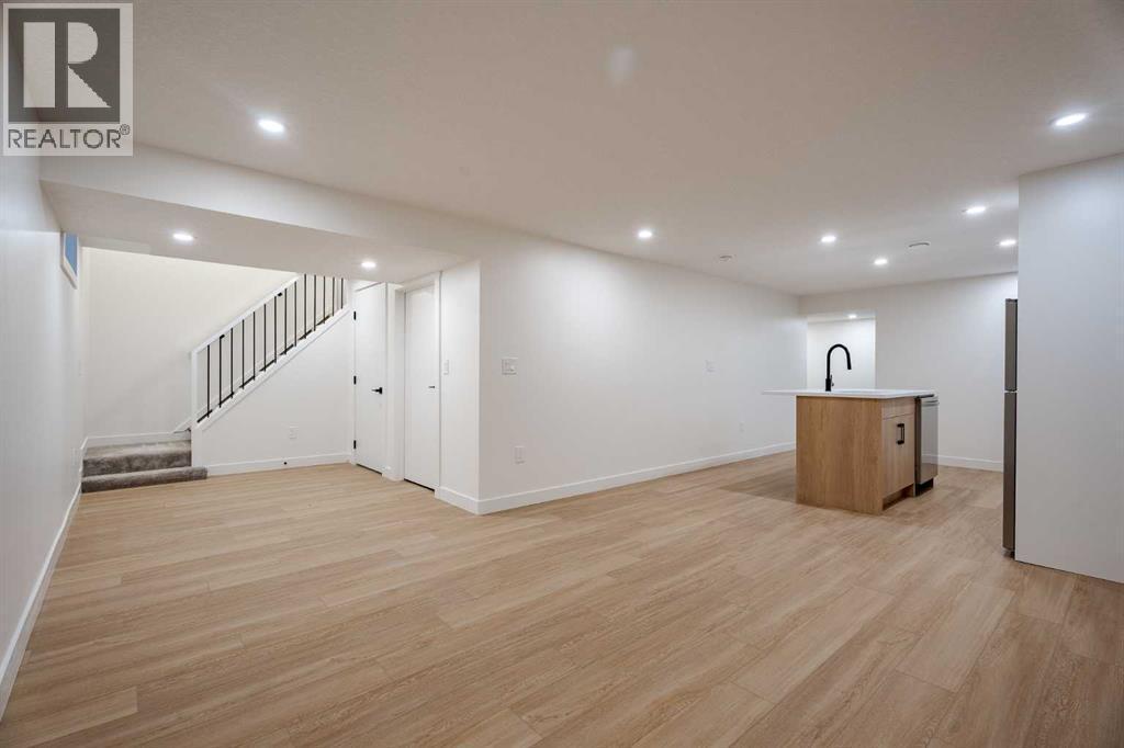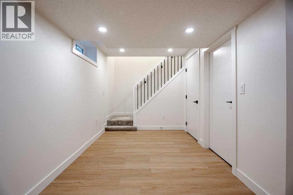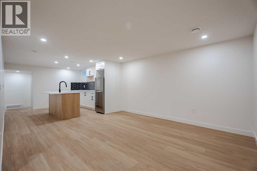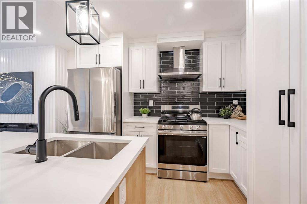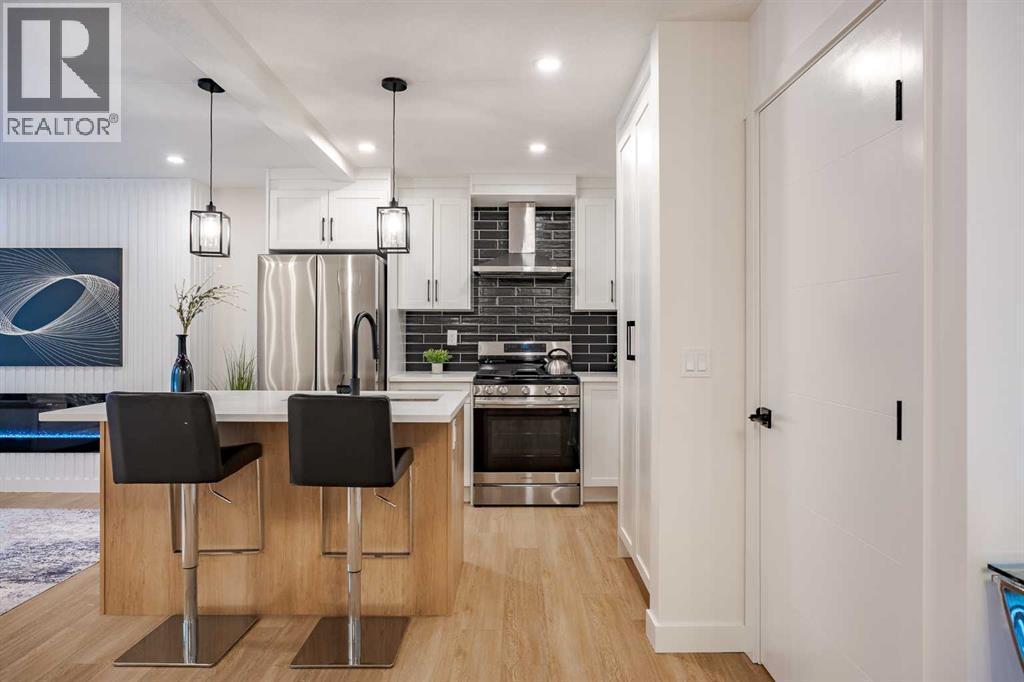 If a home could make a lasting impression, this one certainly does. Welcome to this extensively renovated, down-to-the-studs bungalow in the desirable community of Acadia, where every detail has been thoughtfully redesigned and nothing left untouched. From the new exterior, furnace, hot water tank, windows, doors, trims, flooring, and cabinetry, to the high-end finishes throughout—this home offers the perfect blend of modern style and everyday functionality. Ideally located just steps from schools, parks, and playgrounds, and only minutes from major shopping and amenities along Macleod Trail and Heritage Drive, the location is as convenient as it is desirable.From the moment you arrive, the home’s stunning curb appeal sets the tone. Board and batten siding, custom exterior lighting, and large windows create a timeless modern aesthetic. Inside, a spacious entryway welcomes you into the open-concept main floor, where warm luxury vinyl plank flooring flows seamlessly throughout. The inviting living room features a custom fluted fireplace and a large picture window that fills the space with natural light. At the heart of the home is the beautifully designed kitchen, showcasing ample shaker cabinetry, a textured island with quartz countertops, a built-in pantry, and stainless steel appliances. The dining area is highlighted by a large light fixture and a sliding patio door that leads directly to the backyard. Down the hall, a stylish 3-piece bathroom with custom tile-work adds a touch of everyday luxury. The primary retreat offers space for a king-sized bed, a custom walk-through closet with built-in cabinetry, and a private spa-inspired 5-piece ensuite featuring a dual vanity, freestanding tub, and glass shower. An additional bedroom with a large window and closet completes the main level. The fully finished basement is equally impressive, offering a spacious recreation area perfect for relaxing or entertaining. A sleek kitchenette with new stainless steel appliances, a modern 4-piece bathroom, and two large bedrooms provide incredible flexibility for extended family, guests, or additional living space. A private laundry and utility room complete the lower level. Step outside to enjoy the generously sized yard, complete with a concrete patio and gas line for summer BBQs. The oversized double garage with an extra-large overhead door is perfect for car enthusiasts or additional storage. Stylish, functional, and completely move-in ready, this one-of-a-kind property truly has it all. Book your private showing today and experience it for yourself. (id:6769