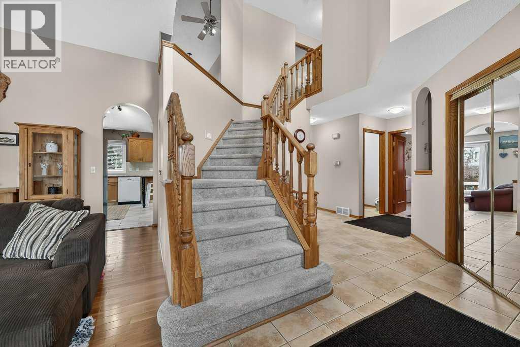 *OPEN HOUSE MAR 15 / 11 AM -2 PM* This is a rare opportunity to own a beautiful and solid family home, perfectly nestled on a quiet and safe cul-de-sac and backing onto a serene green belt in the highly desirable community of Hawkwood. With only six homes on the street, this property offers exceptional privacy and a wonderful sense of community. Its charming curb appeal, mature landscaping, and expansive triple-attached garage create a welcoming first impression and offer the lifestyle of comfort. Inside, the home features a bright living room, filled with natural light from large soaring windows, flows effortlessly into the formal dining area—perfect for hosting family dinners and special occasions. Just steps away, the cozy family room with a wood-burning fireplace connects beautifully to the well-appointed kitchen, where abundant cabinetry, a pantry, vaulted ceilings, and a large skylight create an inviting and open space for everyday living. A convenient powder room and warm hardwood flooring throughout the main level add both comfort and elegance. The second floor is designed with rest and privacy in mind. The spacious primary retreat, accessed through elegant French doors, easily accommodates a king-sized bed and features a generous walk-in closet along with a bright 4-piece ensuite complete with in-floor heating. Two additional well-proportioned bedrooms provide excellent space for family members of all ages and can comfortably accommodate queen-sized beds. The unspoiled basement is clean, open, and ready for your personal vision—whether that be additional living space, a home gym, a recreation room, or a customized entertainment area. Recent upgrades provide added peace of mind and value, including new carpet on the entire upper level and staircase (2025), fresh interior paint (2025), driveway lift and crack repairs (2025), new sump pump (2025), a new roof (2024), greenhouse (2024), and a furnace engine replaced in 2016. The home is also equipped with centra l air conditioning rough-in and includes the original 2007 A/C unit, which is being sold in as-is condition. Set on an impressive 7,168 sq. ft. lot, the backyard is truly a private retreat. A large patio finished with waterproof Duradek overlooks the peaceful green space lined with apple trees and leads toward a nearby playground. The generous yard offers endless possibilities—perfect for bonfire evenings, BBQ gatherings, or growing your own produce in the greenhouse. In springtime, when the apple trees bloom, the backyard view becomes truly breathtaking. The location is exceptional. St. Maria Goretti School in a 10-min walk and Hawkwood School 15 min away. Shopping and amenities at Superstore, Beacon Hill Shopping Centre, and Crowfoot Shopping Centre are a short drive away, along with the Crowfoot Library, YMCA, restaurants, and everyday conveniences. Quick access to Stoney Trail makes commuting across the city easy and provides a fast escape to the mountains. Opportunities like this do not come often. (id:6769
