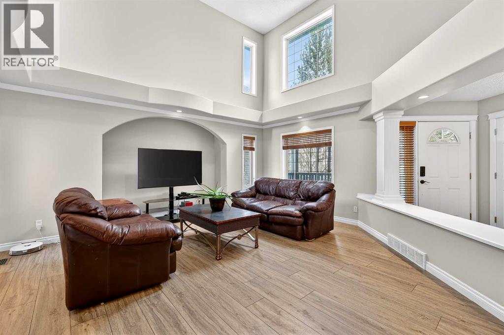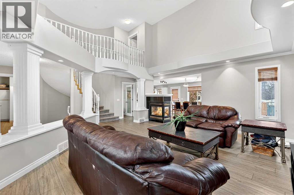 Welcome to 125 Crystalridge Drive, nestled in the highly sought-after community of Crystal Ridge in Okotoks—a postcard-perfect town where small-town charm meets modern convenience. Known for its historic Old Towne, scenic pathways, and wonderful walkability to quaint coffee shops and locally loved restaurants, Okotoks offers a lifestyle that is both vibrant and relaxed. From ball games and community events to everyday amenities just minutes away, it’s easy to see why this is considered one of the most desirable places to raise a family. Presenting over 3,300 square feet of newly refreshed developed living space, this beautifully updated home offers an abundance of room for both everyday living and entertaining. From the moment you step inside, you are welcomed by a stunning open great room with soaring 17-foot ceilings and expansive windows that fill the space with natural light. Brand new luxury vinyl plank flooring flows throughout the main level, creating warmth and cohesion, while a three-sided feature fireplace provides an elegant focal point enjoyed from both the living and dining areas. The spacious dining room seamlessly connects to the refreshed kitchen, where thoughtful updates include brand new quartz countertops, central island, stylish backsplash, refinished cabinetry, corner pantry & new fridge and stove—perfectly designed for both family living and entertaining. Completing the main level is a dedicated office or den, a convenient powder room, and a large laundry area. A graceful curved staircase leads to the upper level where thoughtful design continues. Two secondary bedrooms and a full main bathroom are situated on one side, while an open catwalk with banister leads to the impressive primary retreat. This expansive bedroom offers ample space for a full suite of furnishings and features a beautiful walk-in closet accessed through double French doors. The five-piece ensuite is a relaxing sanctuary with dual vanities, a deep soaker tub, standalone show er, and a skylight that fills the space with natural light. The fully finished basement expands the home’s versatility with two additional bedrooms, a large recreation room, a flexible bonus space, a full bathroom, and a wet bar—ideal for entertaining guests or creating the ultimate family gathering area. Brand new carpet throughout the upper level and basement adds comfort and a fresh finishing touch. Situated on a large lot with convenient back lane access, the property offers excellent potential for RV accessibility to the backyard. The location is equally impressive—walking distance to schools and the beloved Crystal Shores Lake, Okotoks’ only lake community. Here, residents enjoy four seasons of recreation, from summer days spent swimming, fishing, and playing beach volleyball to hockey games and skating in the winter. With the warmth of a small-town community and quick access to Calgary, Okotoks truly offers the best of both worlds-where families grow, memories are made and community truly matters. (id:6769
