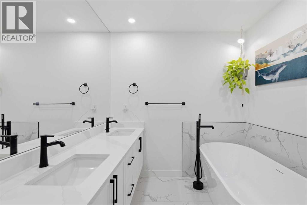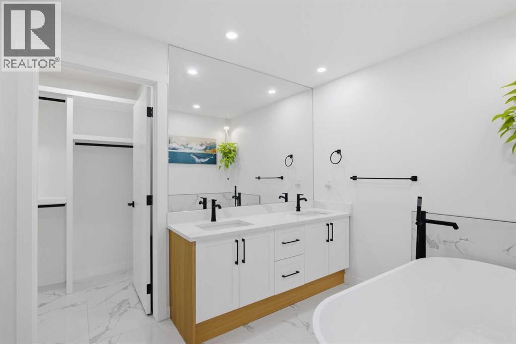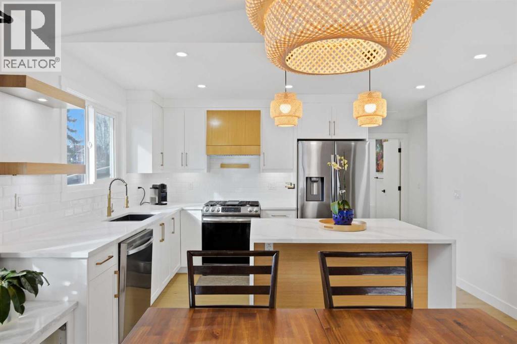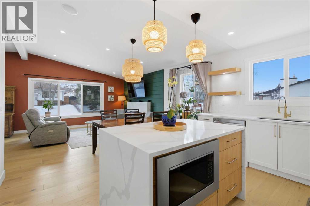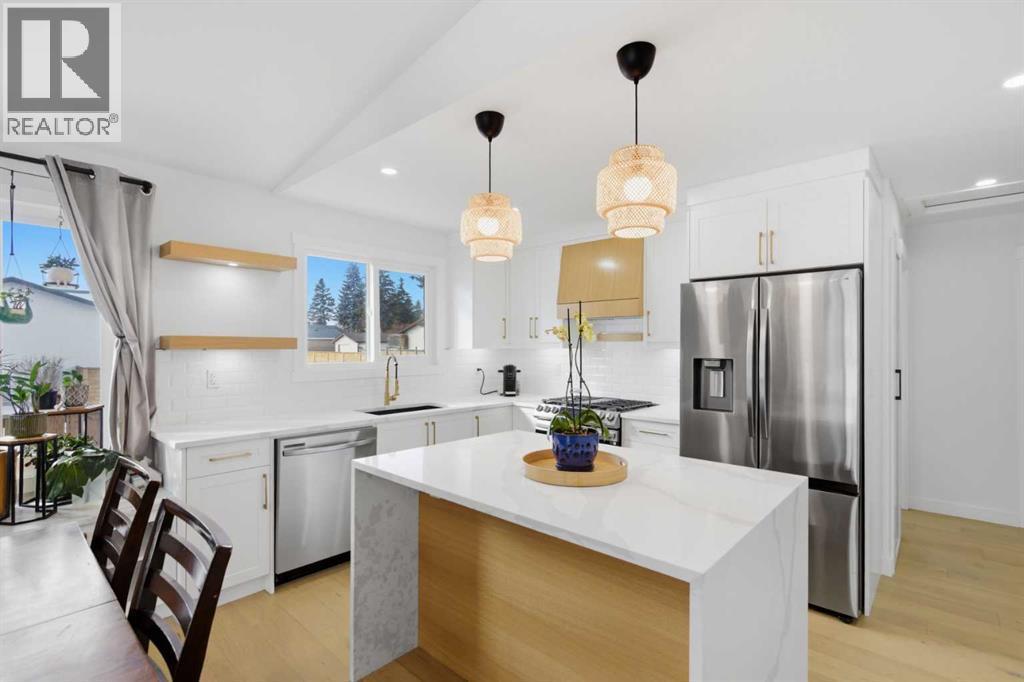 Welcome to this exceptionally renovated 4-bedroom home situated on a premium corner lot inthe established community of Queensland, which is framed by mature trees adding a feeling ofnatural charm. Thoughtfully upgraded throughout, this home blends modern design withtimeless comfort. You’ll feel the warm, inviting atmosphere the moment you step inside,highlighted by bright recessed lighting, natural Light, high vaulted ceilings, and custom in-ceiling speakers.On the main floor, the spacious primary retreat with a striking feature wall truly stands out! Thespa Inspired ensuite features a walk-in glass shower, deep soaker tub, a double vanity withelegant finishes and a dream walk-in closet. Paired with a second bedroom and a seamless flowfrom the kitchen to the living room, which is filled with bright south-facing sunlight. The fullydeveloped lower level creates the perfect gathering space, complete with a stylish wet bar and cozy lounge area ideal for hosting family & friends. Finishing off the basement with 2 fullbedrooms, laundry and storage.Step outside to your covered outdoor oasis, a peaceful extension of the home- perfect forenjoying Calgary’s summer evenings. The expansive corner lot provides additional yard spacefor recreation and outdoor living, all enclosed by a brand-new fully fenced backyard with anoversized double gate for easy trailer or small equipment access.The home’s exterior showcases Hardie board siding, providing exceptional durability along witha clean, upscale aesthetics designed to stand the test of time. Inside all major appliances,drywall, windows, spray foam insulation, HVAC, hot water tank, plumbing pipes, electricalwiring, and roof have been updated within the past two years offering peace of mind andmodern efficiency. Those hot Alberta summers are no match for the recently installed central AC!Families, car enthusiasts and hobbyists will appreciate the rare garage configuration that offer's adouble oversized de tached garage plus a single attached garage, both featuring durable epoxyfloors. The single attached garage offer's the added convenience of a functional boot room entryinto the home. With its proximity located just a short walk from a dog park, Fish Creek Provincial Park, schools,pathways and everyday amenities, this home delivers the perfect balance of nature,convenience, and refined living in one of Calgary’s most welcoming communities. Beautifully upgraded, perfectly located, and thoughtfully designed, this is a rare opportunity toown a truly standout home in Queensland. (id:6769