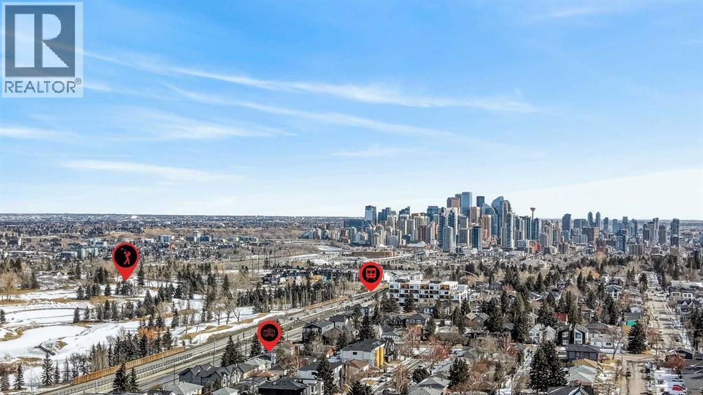 Welcome to this beautifully renovated 4-level split semi-detached home offering stylish inner-city living in an unbeatable location. Thoughtfully updated throughout, this property combines modern finishes with a functional layout designed for today’s lifestyle.The main level features soaring vaulted ceilings and large windows that fill the space with natural light. The open-concept living and dining area is ideal for entertaining or relaxing at home. Just a few steps up, the elevated kitchen overlooks the living space through sleek glass railings, adding architectural interest and a sense of openness. Complete with stainless steel appliances, quartz countertops, and a large central island, this kitchen is both practical and impressive.The lower levels provide excellent separation of space. Two well-sized bedrooms offer privacy and comfort, while a versatile flex room is perfect for a home office, gym, or hobby space. The fully developed fourth level adds a spacious family room, ideal for movie nights, a media lounge, or additional living space to suit your needs. Quality finishes and attention to detail are evident throughout.Location is exceptional. Situated directly across from Shaganappi Point C-Train station, commuting downtown is quick and convenient. The city core is just minutes away, and you are within walking distance to Safeway, Walmart, and a variety of shops and restaurants.An outstanding opportunity for first-time buyers, professionals, or investors looking for a move-in-ready property in a prime transit-oriented location. (id:6769