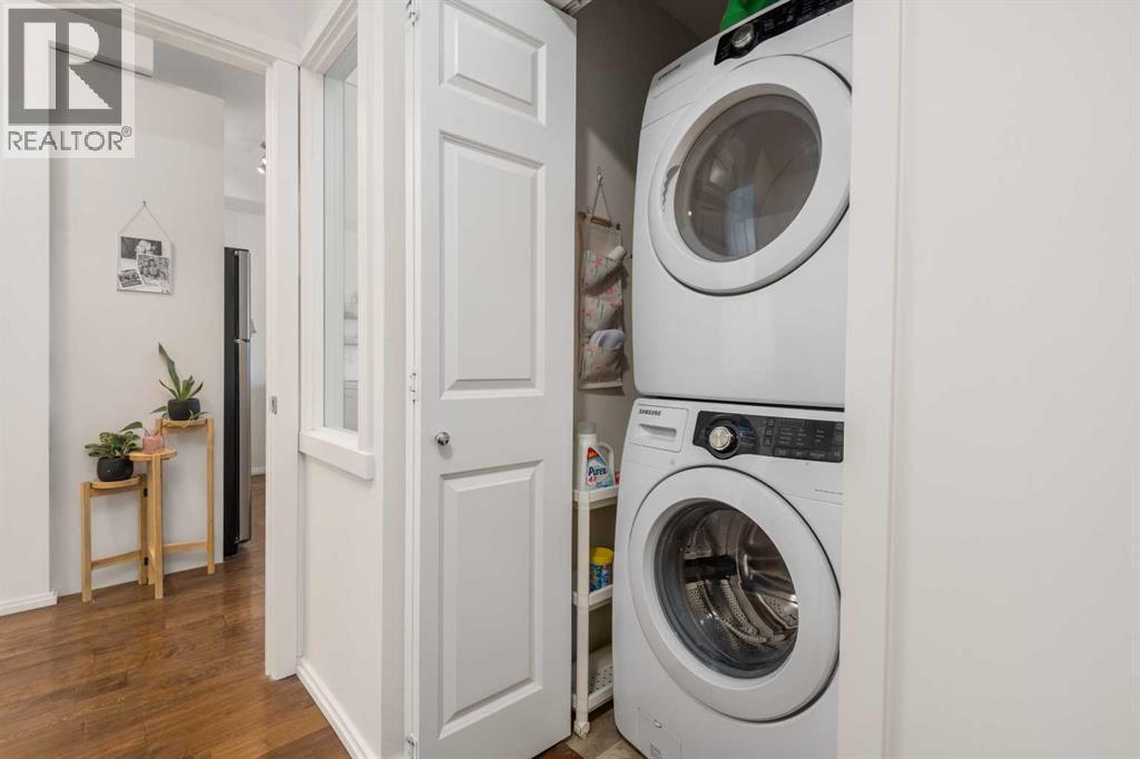 Welcome to 1403, 279 Copperpond Common SE – a beautifully updated two-bedroom, one-bathroom apartment in the desirable community of Copperfield. Offering 552 square feet of comfortable and contemporary living space with the low condo fee of $317.30. this condo is the perfect stylish, well kept, move-in-ready home. Upon entering, you'll immediately notice the fresh feel created by marble tile in the foyer, 9ft ceilings, premium engineered hardwood flooring, beautiful views and lighting. The open-concept design seamlessly connects the living, dining, and kitchen areas, providing an ideal space for entertaining and everyday meals. The kitchen features all stainless steel appliances, ample counter space, and abundant cabinetry. Adjacent to the kitchen, the dining area flows naturally into the spacious living room, bathed in natural light from large windows. The primary bedroom is spacious and shares the large NW facing windows. The second bedroom is equally spacious and versatile, perfect for a guest room, home office, or additional living space. The 4-piece bathroom is conveniently located next to the entrance and out of the way. The in-suite laundry adds an extra layer of convenience to your daily routine. Step outside onto the Northwest-facing balcony, where you'll find a gas hook-up perfect for BBQ enthusiasts, making it an ideal spot for outdoor dining and relaxation. Additionally, there is one titled parking surface stall and a storage locker in the parkade for even more convenience. Located just minutes from shopping, restaurants, public transportation, and many other amenities, with quick access to the South Health Campus, this condo offers both comfort and convenience in a prime location. (id:6769