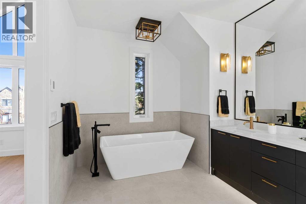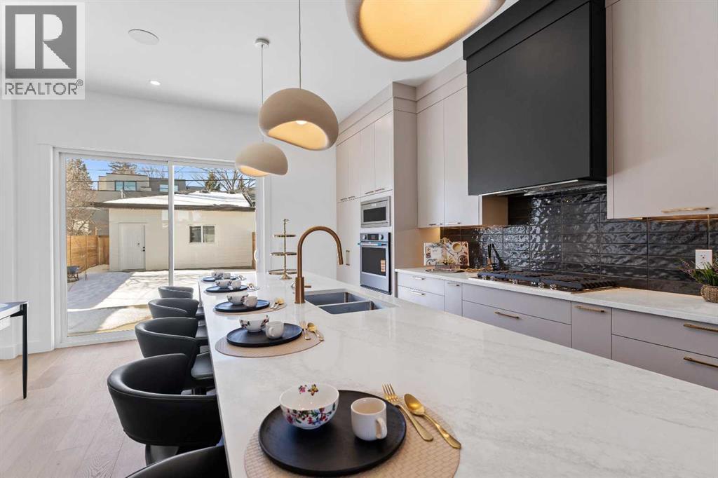 *SHOWSTOPPER ~ WITH A UNIQUE LAYOUT* Welcome to this brand-new, exquisitely designed luxury home located in the highly sought after Killarney inner city area, an exceptional neighbourhood just minutes from downtown Calgary. This stunning residence offers superior finishes and thoughtful features that truly set it apart from the competition. Step into the unique main floor layout and be greeted by an inviting living room to your left, complete with a cozy fireplace and a discreet half bath. The centrally located dining area flows seamlessly into a spacious kitchen at the back, which overlooks a west facing backyard with a raised deck ~ perfect for entertaining or relaxing outdoors. A practical mudroom with a walk~in closet completes the main level, providing ample storage and convenience. Upstairs, the large primary bedroom boasts a vaulted ceiling, private balcony, luxurious ensuite, and generous walk-in closet ~ a true retreat. Two additional secondary bedrooms feature elegant tray ceilings and walk~in closets, complemented by a well~placed upper laundry room for added ease. The fully finished basement offers a legal suite with a central kitchen, two bedrooms positioned on opposite ends for privacy, and a shared living room area. The front bedroom includes a walk~in closet, sharing a modern four ~ piece bathroom. For ultimate comfort, the home is pre~wired with a rough~in for air conditioning and equipped with speakers. This home’s value lies in its exceptional style; stunning curb appeal, high~end finishes, and thoughtfully designed living spaces that elevate everyday living. Don’t miss your chance to own this remarkable and stylish new construction home in the beloved Killarney community. (id:6769