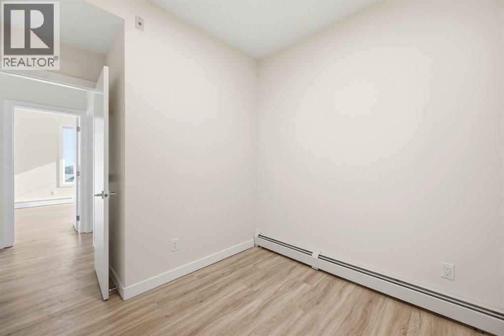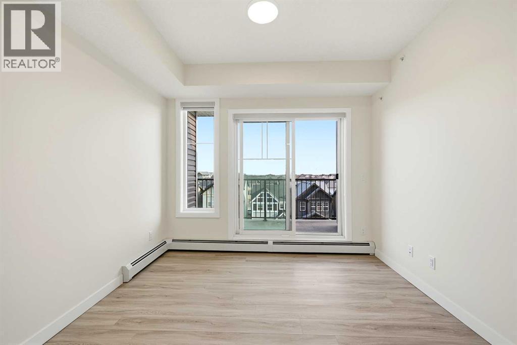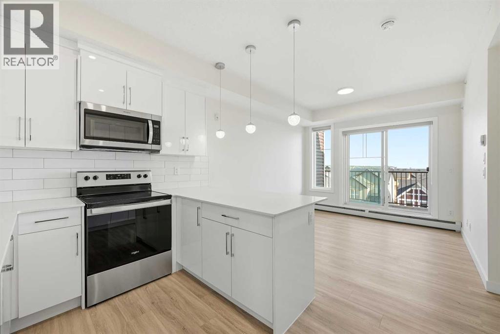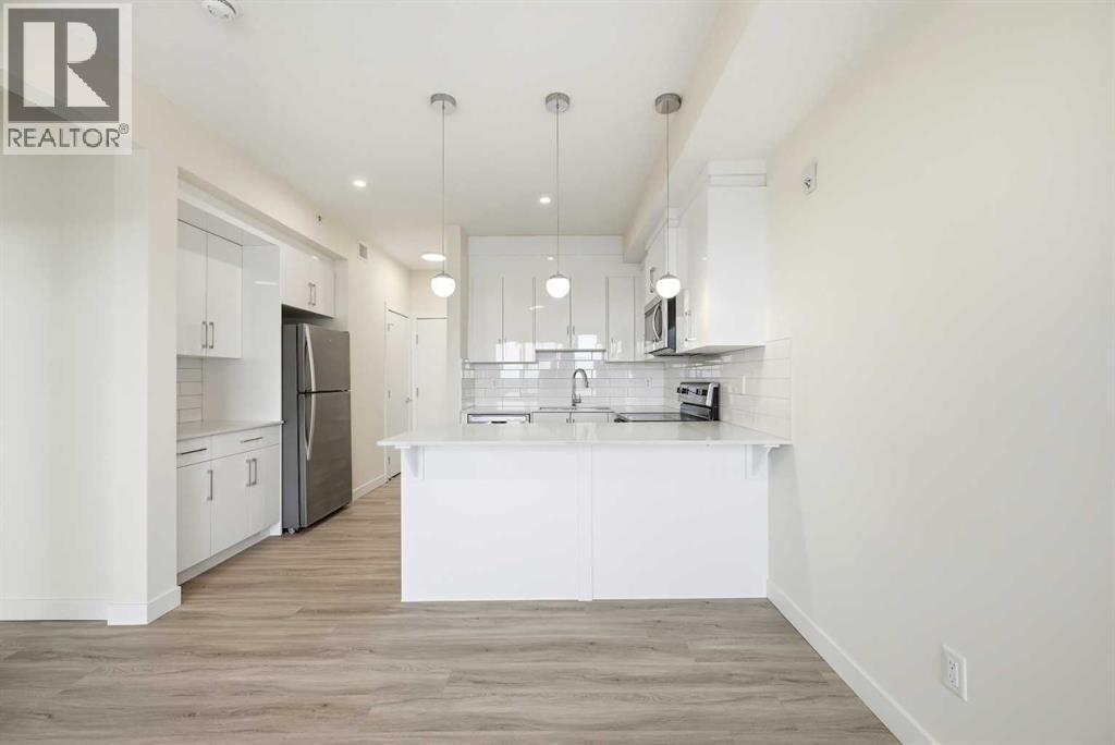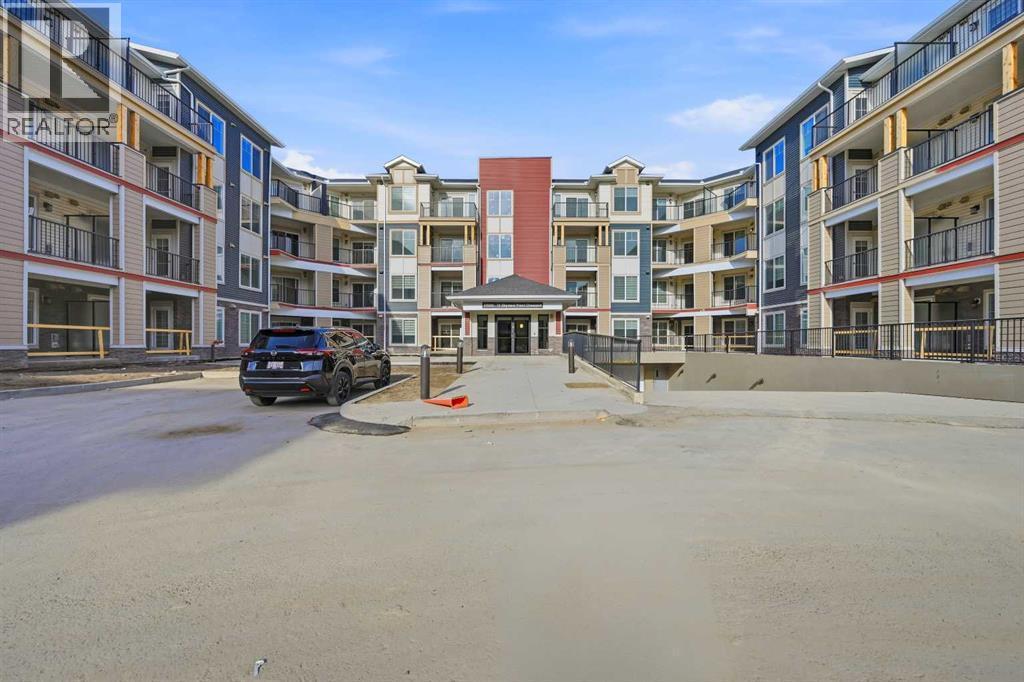 TOP FLOOR/CORNER UNIT/ BEAUTIFUL VIEWS FROM UNIT/2 BEDROOM/1 BATH/BALCONY. Discover modern living in this brand-new, never-occupied 2-bedroom, 1-bathroom condominium in the highly desirable community of Skyview Ranch NE Calgary Offering 656 of living space (Included Balcony) & immediate possession, this beautifully finished unit combines style, functionality, and convenience in one exceptional package. Key location features- WALKING DISTANCE TO SCHOOL, SHOPPING, PARK & more. Step inside to find a bright and airy open layout enhanced by 9-foot ceilings and oversized windows that allow natural light to pour in. The contemporary design is highlighted by wide-plank luxury vinyl flooring and elegant quartz surfaces throughout, creating a clean and upscale aesthetic. The kitchen is thoughtfully upgraded with stainless steel appliances, quartz countertops, soft-close cabinets, a generous PANTRY, and a convenient BREAKFAST ISLAND perfect for dining, meal prep, or casual entertaining. The kitchen flows effortlessly into the dining and living areas, providing a comfortable and welcoming space for both daily living and hosting guests. Two well-sized bedrooms offer flexibility for a home office, guest room, or roommate setup. The stylish 4-piece bathroom features modern finishes and quartz counters for a polished look. Additional features include in-suite laundry and upgraded window coverings for added comfort and privacy. Enjoy outdoor relaxation on the spacious private balcony complete with a gas line for BBQs—ideal for summer evenings. This unit also includes TITLED UNDERGROUND PARKING, a titled storage locker, and secure bike storage for added convenience. Located in a newly built complex, this property offers low-maintenance living close to shopping, schools, transit, major roadways including Stoney Trail, and Calgary International AIRPORT. Perfect for first-time buyers, young professionals, downsizers, or investors looking for a turnkey opportunity in a growing neighborho od. Move in right away or choose a flexible possession timeline to suit your needs. An excellent opportunity to own in one of Calgary’s most dynamic communities. Call your favorite realtor to book showings. (id:6769