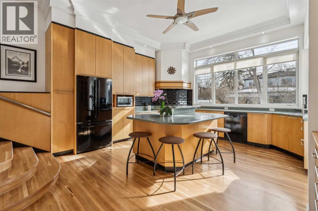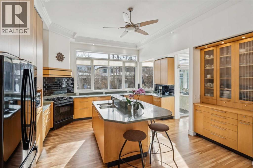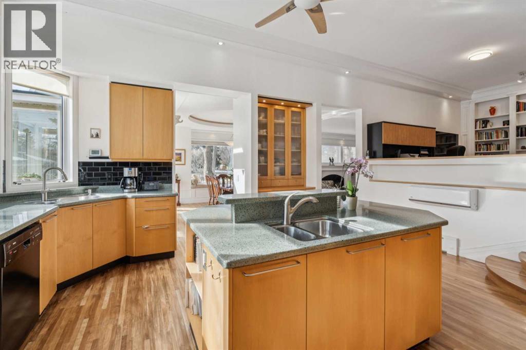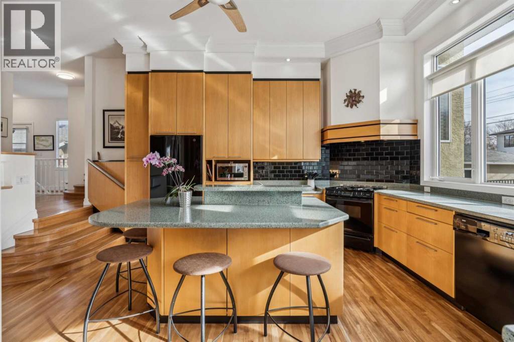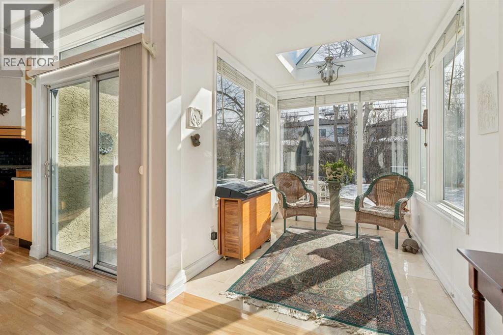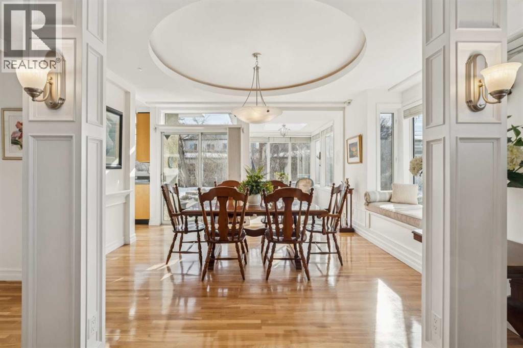 **** OPEN HOUSE, SATURDAY & SUNDAY, 2-4PM ****. Welcome to Renfrew. This beautifully renovated and expanded mid-century home offers over 2,300 sq. ft. with 4 bedrooms and 3 bathrooms, gorgeous hardwood, highlighted by 9-foot ceilings throughout. A rare inner-city offering, the property features both a double attached garage and a double detached garage, providing exceptional parking and storage.An additional highlight is the future redevelopment potential. Situated on an expansive 11,000 sq. ft. corner lot facing Beaumont Park. Properties of this size are increasingly being redeveloped into multi-plex projects with six or more townhomes, making this an attractive opportunity for investors, builders, or homeowners seeking long-term value.The elegant living room is filled with natural light from an abundance of windows and anchored by a gas fireplace with a substantial mantel and built-in shelving. It flows into the dining area—perfect for large family gatherings—and a bright sunroom ideal for plants or a relaxing retreat. The kitchen impresses with an 11-foot ceiling, sleek Denca cabinetry, generous counter space, and large windows overlooking the stunning backyard.The master's quarter's features a walk-in closet and spacious 4 piece ensuite, while two additional bedrooms, a full bathroom, and a versatile den—ideal for a home office or library—complete the main level.The fully developed lower level offers an entertainment room, kitchenette/summer kitchen, 4th bedroom, second laundry area, and direct access to the Double Attached Garage. A Double Detached Garage and 40-foot driveway provide additional parking for vehicles, hobbies, or even an RV. Additional highlights include a 60,000 BTU heat pump for efficient heating and air-conditioned comfort and a rainwater capture system. With spring just around the corner, you’ll truly appreciate spending time in the beautifully landscaped, park-like yard. Curved paver pathways wind through a vibrant collection of peren nial gardens, flowering plants, and mature shrubs, creating a peaceful setting that feels both private and inviting. Whether you’re tending to the garden, enjoying a morning coffee on the patio, or tending to the gas barbecue on a warm summer evening, this thoughtfully designed outdoor space offers a wonderful connection to nature right in the heart of the city. Renfrew is a vibrant inner-city community offering excellent amenities, including Renfrew Athletic Park, a Natural Park, and the Nose Creek pathway system. Residents enjoy nearby recreation facilities, indoor pool, skating arenas, schools, and quick access to local restaurants and cafés along Edmonton Trail, all just minutes from downtown. Move in & Enjoy! (id:6769