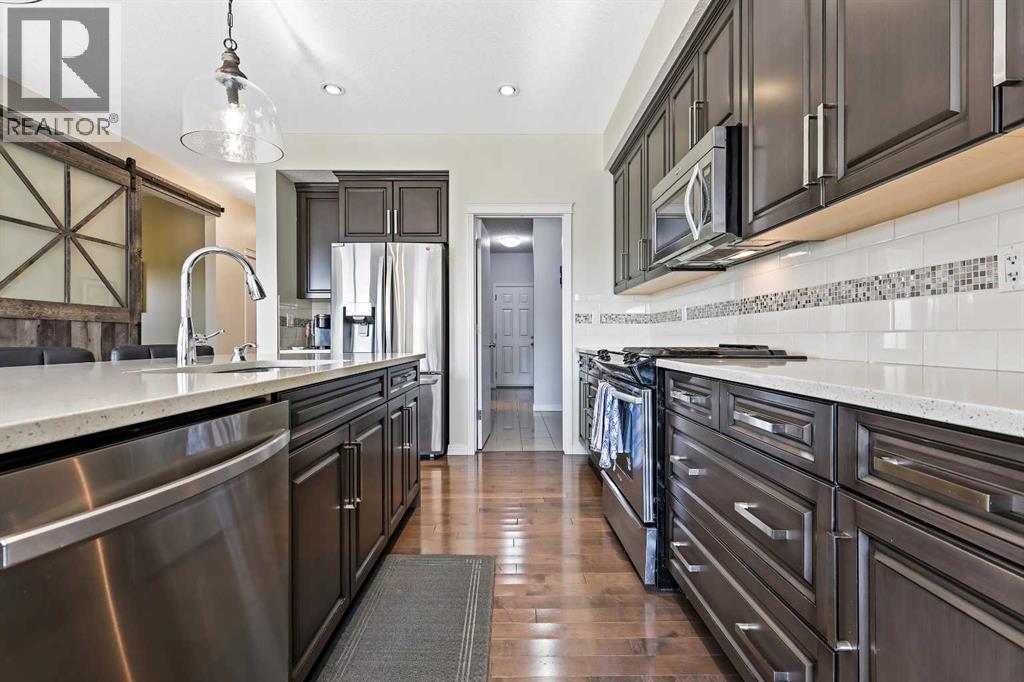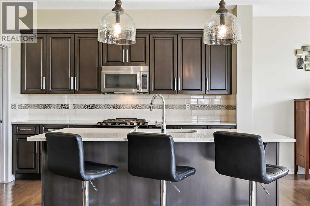 Searching for a 3-bedroom detached home in Auburn Bay with pond views and a sun-filled backyard? 415 Auburn Bay Avenue SE offers over 2,200 sq. ft. of living space, desirable south and west backyard exposure for all-day light, and direct access to pathways, schools, and the lake. You’ll immediately appreciate the home’s unique positioning, with no neighbours on the west side—providing added privacy, extra natural light and direct views of the adjacent green space. From the front steps, enjoy watching Auburn Bay’s annual Christmas parade pass by and create lasting family traditions. Inside, the bright and thoughtfully designed main floor centres around a spacious kitchen featuring stainless steel appliances and quartz countertops. The layout flows seamlessly into the dining and living areas, ideal for everyday family living and entertaining. At the rear of the home, large windows showcase the backyard, where the south and west exposure fills the space with sunlight throughout the day. Step onto the deck to take in peaceful pond views, access the walking path directly, and enjoy watching the Community's seasonal fireworks reflect over the water. Upstairs, the primary bedroom offers stunning mountain views and serves as a relaxing retreat, complete with a five-piece ensuite. New carpet throughout and new tile flooring in the bathrooms adds a stylish and modern touch, while two additional bedrooms provide comfortable space for children, guests, or a home office. With over 2,200 sq. ft. of living space and walking distance to top-rated schools, shopping, restaurants, and Auburn Bay Lake, this three-bedroom detached home delivers the light, lifestyle, and location families seek in one of Calgary’s most desirable lake communities. Book your private showing today! (id:6769