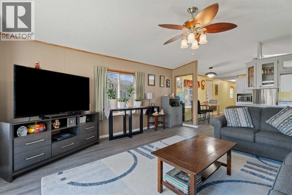 Welcome home to 22 Doubletree Way! This beautifully maintained 3-bedroom, 1.5-bath mobile home is located in the highly sought-after 55+ adult community of Ranch Estates in Strathmore. With 1,147 square feet of thoughtfully designed living space, this home offers the perfect blend of comfort, style, and functionality. Enjoy a bright, open layout featuring tasteful modern updates throughout. Recent upgrades include brand new kitchen appliances, a high-efficiency furnace, and central air conditioning, 3 new windows —everything is done for you, so you can move in and enjoy the space right away! Situated in a peaceful, park like setting, this home also includes a single detached garage, access to loads of well-maintained green space, and two community gardens. Conveniently located close to local amenities, this is a rare opportunity to own a turn-key home in one of Strathmore’s most desirable adult communities. (Updates include the following: 3 new windows on the south side of the family room. Roof 2014. All kitchen appliaces replaced in 2023. New insulation and heat tape completed in 2024. Furnace 2024. AC 2024. Washer/Dryer 2024. Deck enclosure 2024. Outside deck 2024. Vinyl plank flooring 2024. Main bath redone in 2025. Primary bedroom flooring 2025. Garage roof 2025.) (id:6769