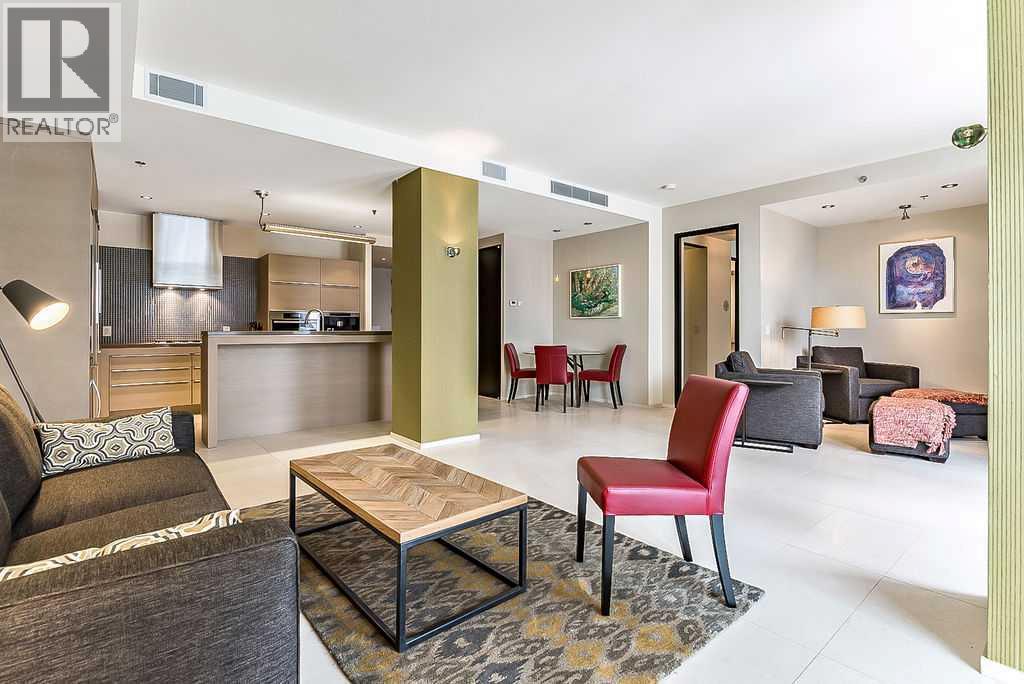 Enjoy living at one of Calgary's premiere apartment residences, Le Germain. Located in the heart of the city only steps to the shops, eateries, and entertainment of Stephen Avenue. This spacious one bedroom plus den has a fabulous view of downtown with its floor to ceiling windows. The open plan features an island kitchen with a Miele stainless steel appliance package that includes a warming tray and a coffee maker. The kitchen is beautifully finished with quartz counters. Relax in the den with its stylish and functional wood wall unit. The master has lots of storage with a built in wardrobe as well as a walk in closet with built ins. Unwind in the luxurious en suite that has dual vanities, large soaker tub, and walk in shower. Included are two indoor parking stalls and a storage locker. Le Germain offers amenities such as full concierge service, a fitness and spa area, fine dining valet service, and maid service. The property offers a lifestyle that few can duplicate. Do not miss it! (id:6769