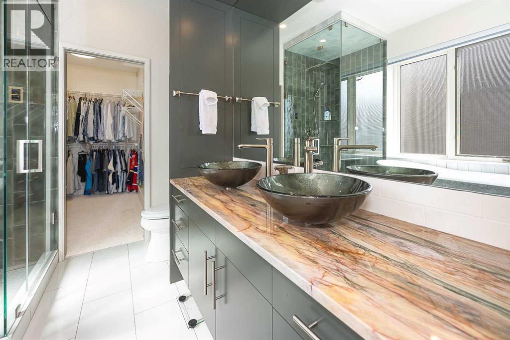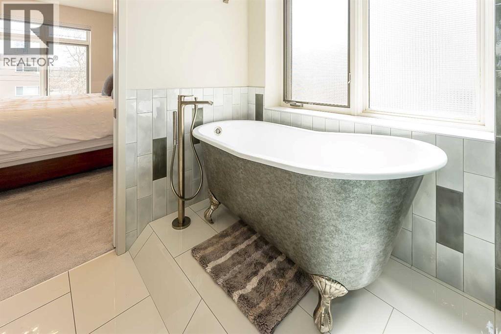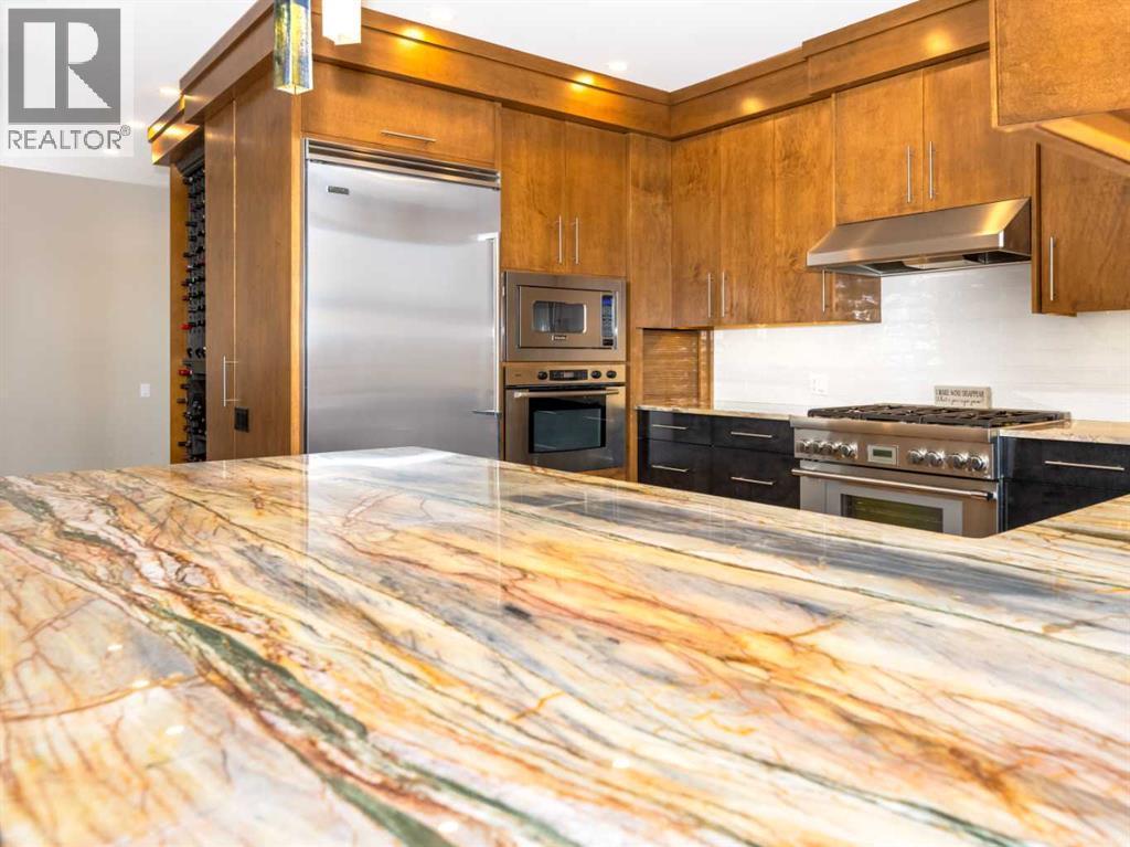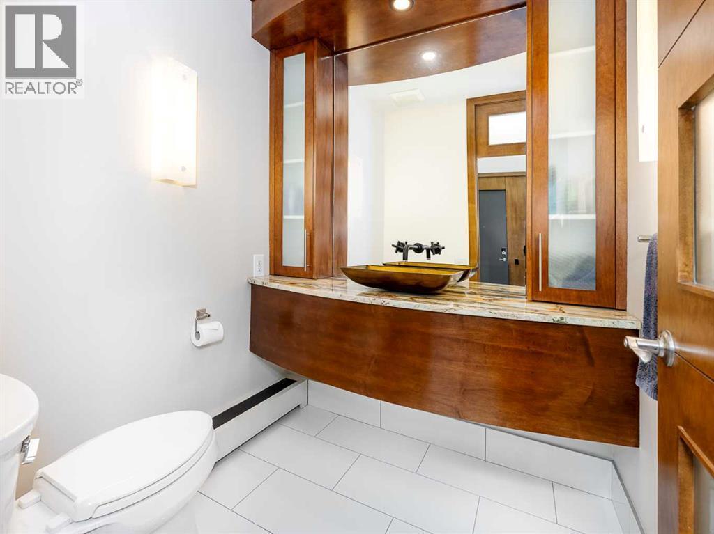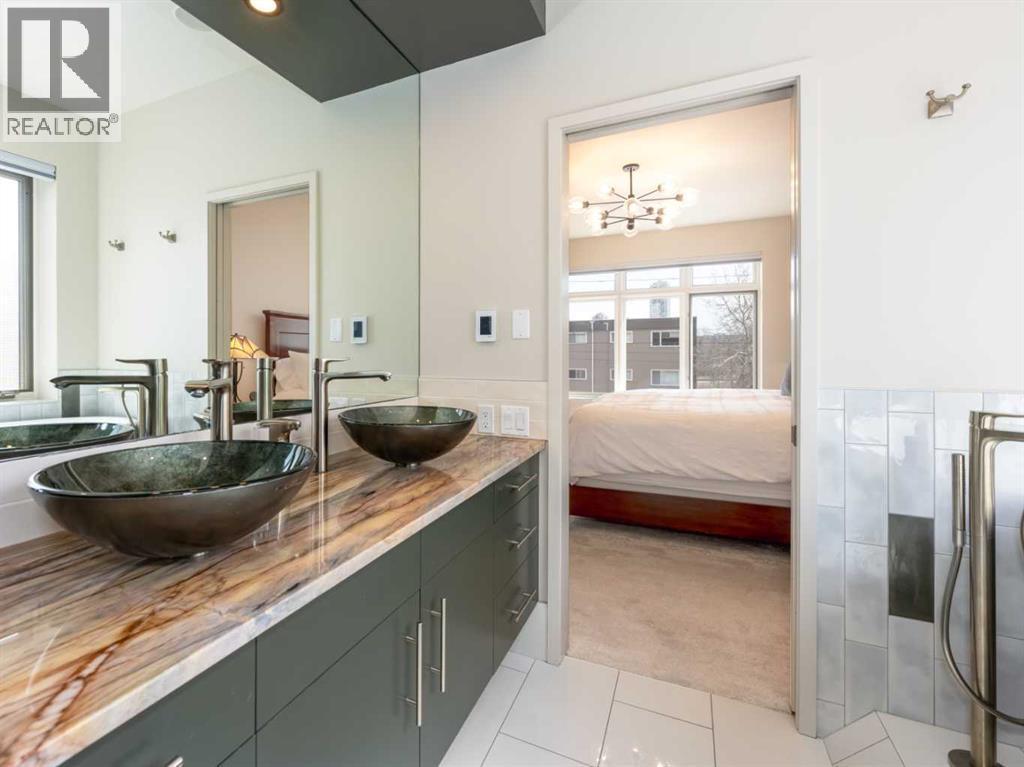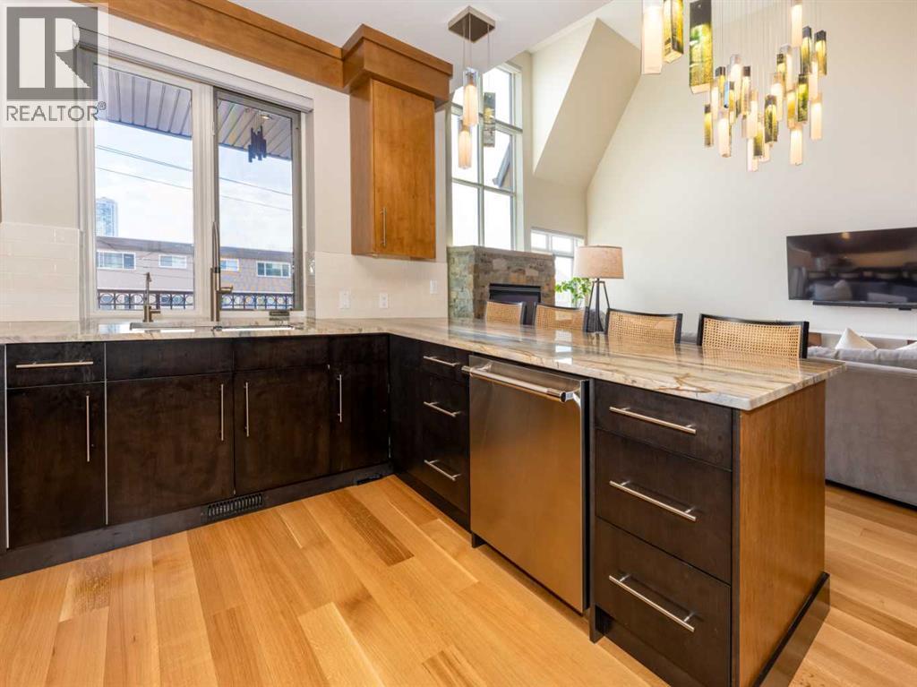 Luxury and sophistication converge in this meticulously renovated penthouse in the heart of Hillhurst. Just steps from Kensington’s vibrant shops and restaurants, the Bow River pathways, and the downtown core, this exceptional residence offers an elevated urban lifestyle. Situated in the boutique 12-unit Villagio building, constructed with superior ICF for outstanding soundproofing and energy efficiency, the home features a semi-private elevator that opens directly to the unit’s entrance. A grand foyer with soaring ceilings and an overhead skylight sets the tone as you enter this impressive two-level residence. The open-concept design is highlighted by dramatic 18-foot ceilings and a stunning south-facing wall of windows that fills the space with natural light. The central living room showcases a custom stone gas fireplace and a striking imported 120-piece hand-blown glass chandelier. Patio doors lead to one of two south-facing outdoor spaces, ideal for relaxing or entertaining. The chef’s kitchen is a true showpiece, featuring premium appliances including a Thermador dual-fuel gas range, Sapphire dishwasher, Viking refrigerator, and built-in microwave. Hand-selected quartzite countertops complement the space, while imported custom light fixtures add refined character. Adjacent to the kitchen, the dining area features a custom wine display with oak racking and a built-in buffet complete with a wine fridge and quartzite counters. A distinctive custom light fixture adds warmth and elegance to the space. The main-level primary retreat offers built-in cabinetry and a luxurious spa-inspired ensuite with dual sinks, Hansgrohe fixtures, quartzite countertops, a steam shower, and a custom cast-iron slipper tub. The suite is completed by a spacious walk-in closet. A powder room and convenient laundry area complete the main floor. The upper level features a second bedroom with access to a large in-suite storage room, a three-piece bathroom, and a versatile flex space ideal fo r a home office. A catwalk overlooking the living area below leads to patio doors that open onto the second south-facing patio, creating another private outdoor retreat. Extensive renovations throughout the home include new quarter-sawn engineered oak flooring on the main level, newer carpeting upstairs, modern railings overlooking the living room, fresh paint, and new remote-controlled window coverings. Comfort is enhanced by a newly installed Fujitsu mini-split four-zone inverter system, providing flexible climate control with independent heating, cooling, or fan settings for individual areas. The unit also includes two titled parking stalls, both generously sized to accommodate a full-size truck. This remarkable penthouse must be experienced in person to be fully appreciated. (id:6769