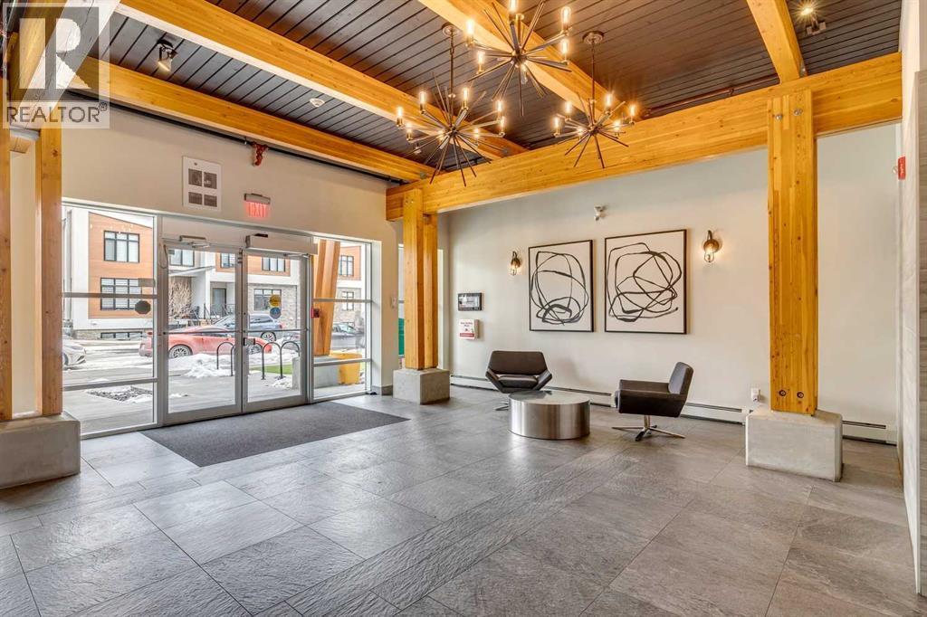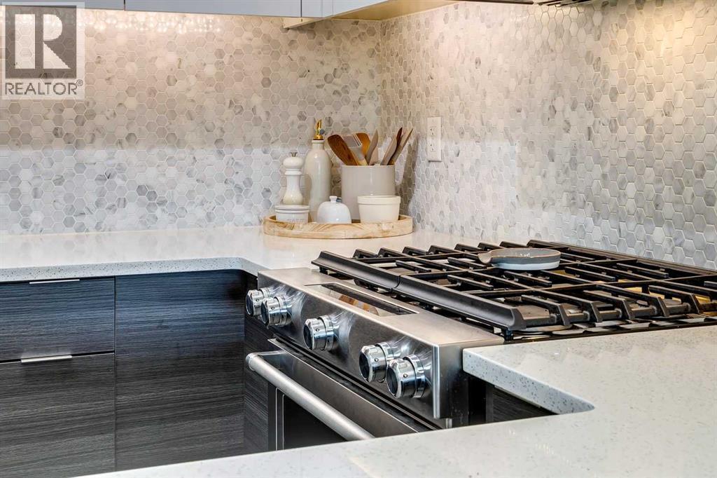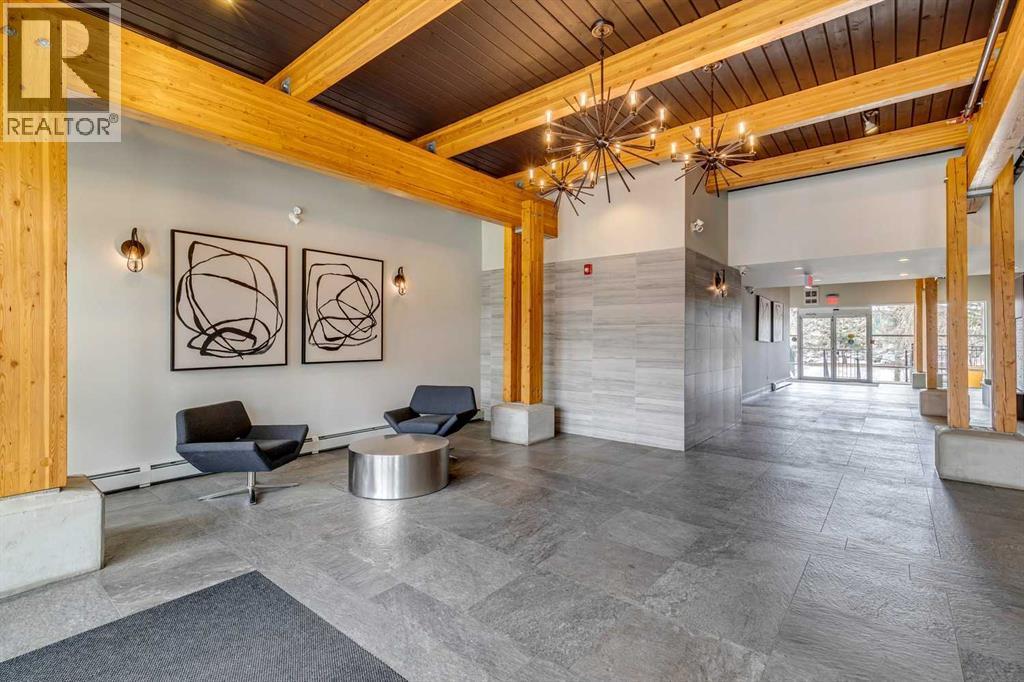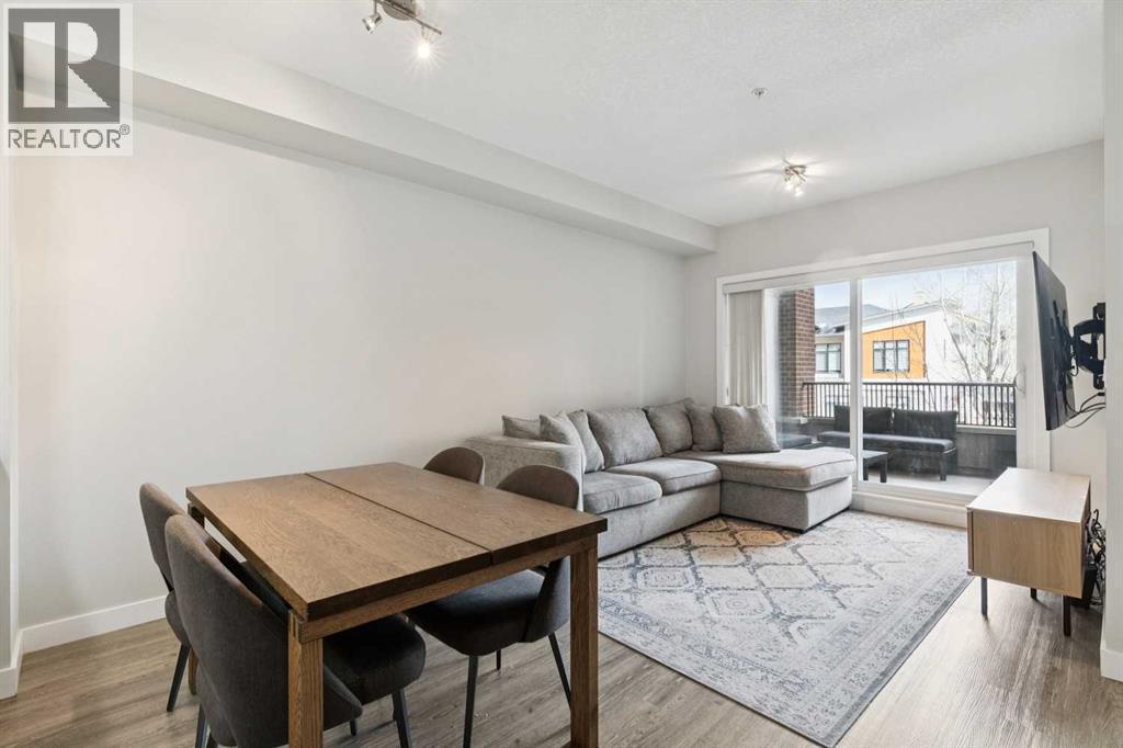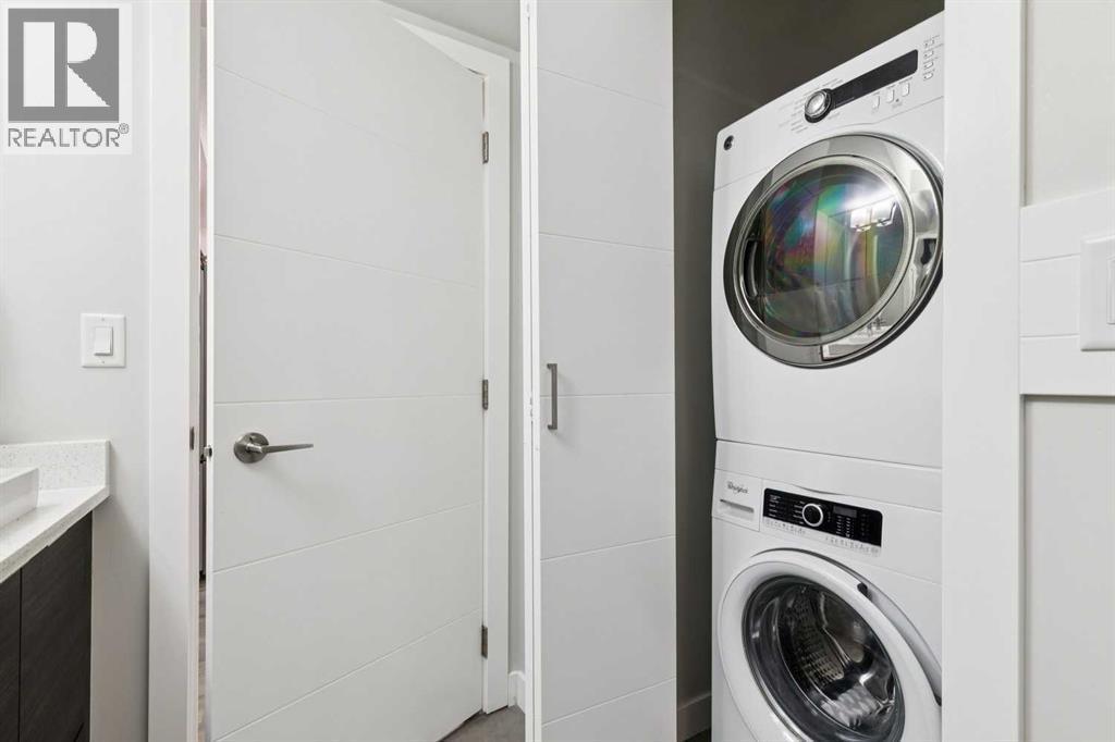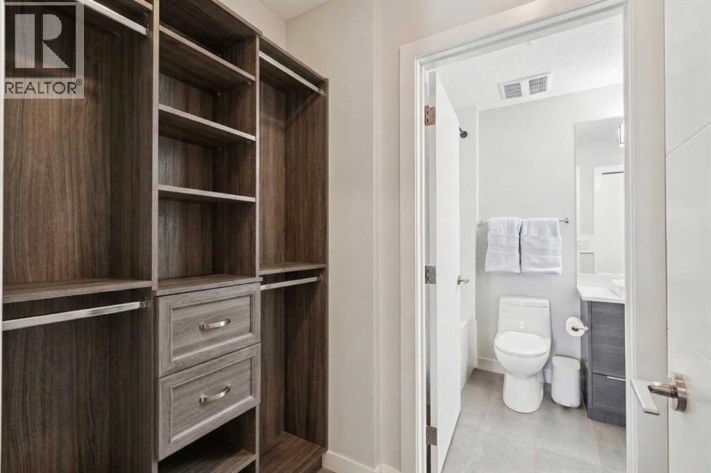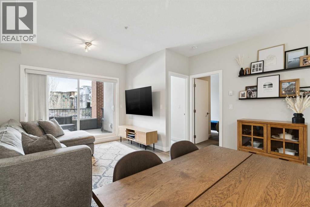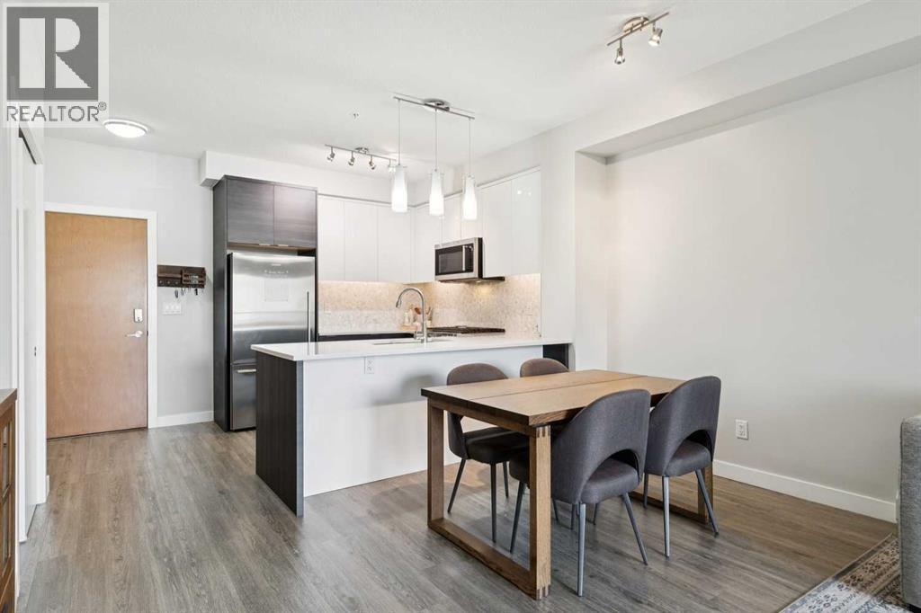 Welcome to the Axess building in Currie Barracks, one of southwest Calgary’s most desirable and thoughtfully designed communities. This beautifully maintained southwest-facing 700+ sq. ft. residence offers modern finishes, an open layout, and exceptional walkability — just steps from Mount Royal University, parks, pathways, and local amenities.Natural light fills the open-concept living space through large sliding glass doors that lead to your private southwest-facing balcony complete with a gas BBQ hookup — the perfect place to enjoy evening sunsets or relaxed outdoor dining.At the heart of the home is a sleek, contemporary kitchen designed for both everyday living and entertaining. Features include a striking mix of white and dark cabinetry, elegant quartz countertops, stainless steel appliances including a gas stove, a stylish tile backsplash, and a large peninsula offering additional prep space and casual seating.Easy care laminate plank flooring flows throughout the main living areas, creating a modern and cohesive feel while enhancing durability and comfort.The primary bedroom offers a comfortable retreat with a walk-through closet and direct access to a beautifully finished 5-piece bathroom featuring quartz countertops, tiled flooring, dual sinks, and a deep soaker tub ideal for relaxing at the end of the day. A second bedroom provides flexibility for guests, a home office, or additional living space depending on your needs.Additional highlights include in-suite laundry, titled underground parking, a secure storage locker, and access to the building’s convenient car wash bay and secure bicycle storage. The complex is well maintained and offers visitor parking for guests.Currie Barracks is a vibrant master-planned community known for its beautiful green spaces, historic charm, and exceptional location. Residents enjoy quick access to Marda Loop’s popular restaurants, cafés, and boutique shopping, along with convenient routes to Crowchild Trail, dow ntown Calgary, and public transit.Whether you are a first-time buyer, investor, professional, or downsizer, this stylish and low-maintenance home offers outstanding value and an unbeatable lifestyle in one of Calgary’s most sought-after southwest communities. (id:6769
