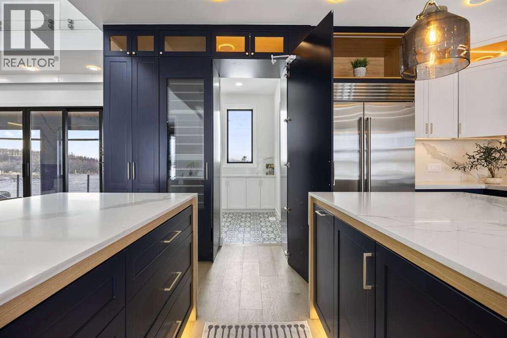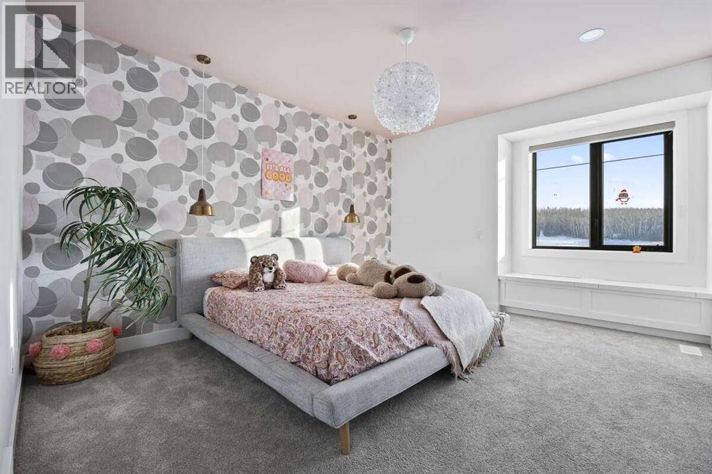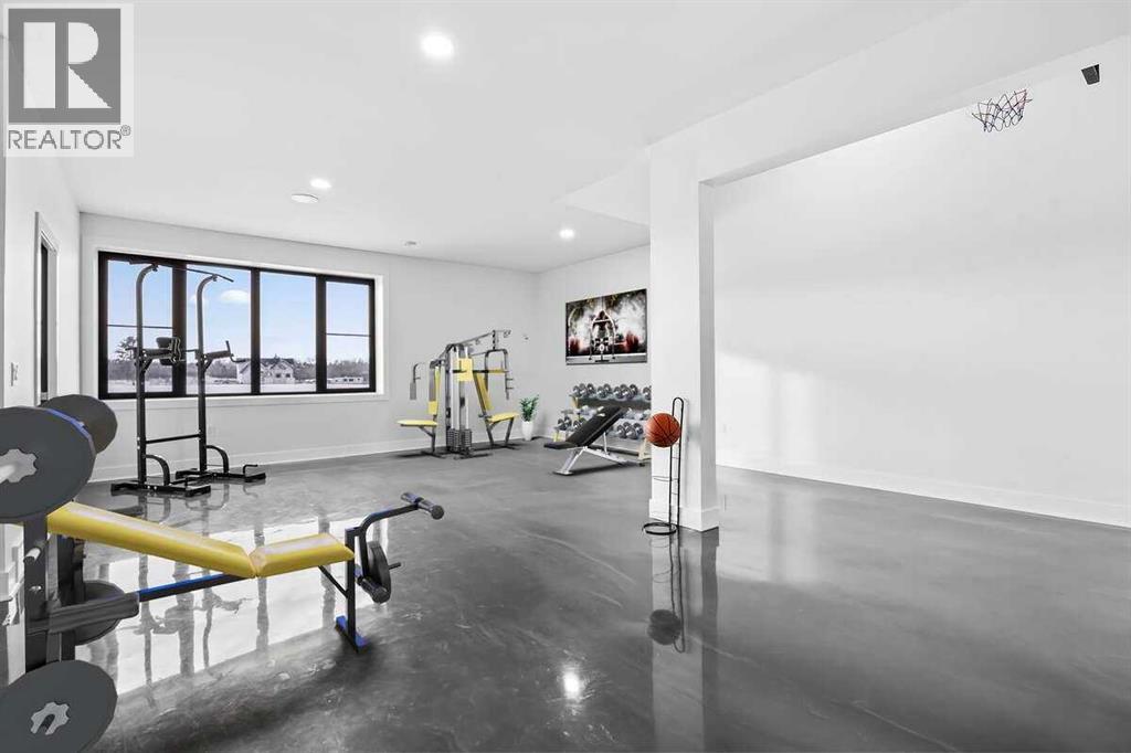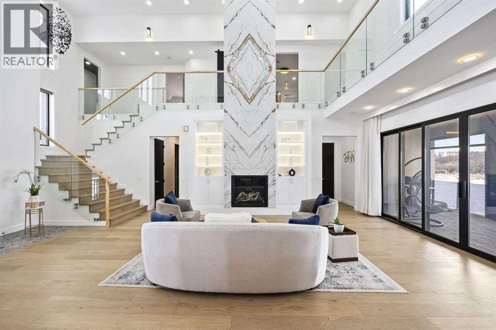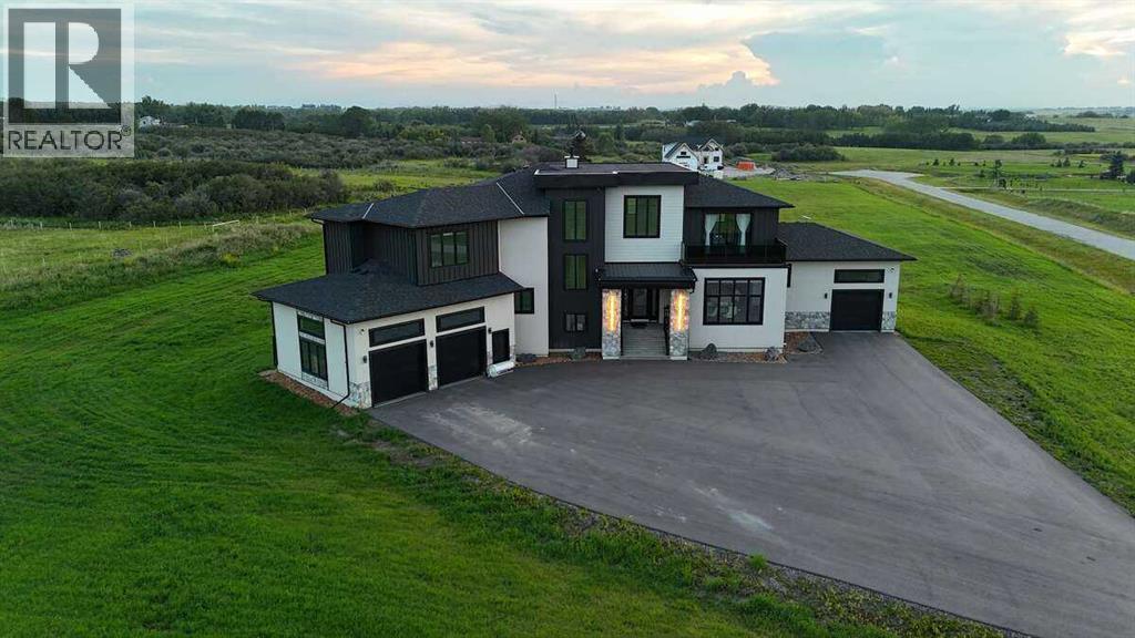 *** For more information, please click the "More Information" button. ***Welcome to an extraordinary blend of modern elegance and countryside charm. Built in 2023, this stunning 6-bedroom, 5.5-bathroom estate offers over 7,200 sq. ft. of meticulously designed living space, nestled on a picturesque 5-acre property. More than just a home, it’s a peaceful retreat surrounded by nature, yet conveniently close to Calgary’s South Campus hospital, top-rated schools, and urban amenities, offering the perfect balance of serene country living and city convenience. As you enter through natural flat stone pillars, a grand entryway welcomes you into warm and expansive living areas set against the breathtaking backdrop of the Rocky Mountains. The living room features a towering stone fireplace that serves as a centerpiece, while a glass-surround walkway bathes the space in natural light. Telescoping glass doors seamlessly connect indoor and outdoor spaces, making it ideal for entertaining or relaxing with loved ones. The chef’s kitchen is the heart of the home, featuring double islands perfect for hosting, high-end appliances including a combination steam oven, and two butler’s pantries. These pantries provide ample storage and include access to a hidden workspace and a single garage, adding both functionality and convenience to the kitchen’s design. The main-floor primary suite is a true sanctuary, boasting floor-to-ceiling west-facing windows that frame stunning views. The spa-inspired en-suite includes luxurious stone-accented walls, an oversized soaker tub, and a walk-in shower, while the custom-designed closet caters to a modern lifestyle with ample space and organization. Upstairs, three spacious bedrooms, each with walk-in closets and private bathrooms, provide comfort and privacy for family or guests. A striking glass walkway connects a custom home office and a cozy family room, creating a unique and inviting upper-level retreat. The lower level is designed for both relax ation and activity. Highlights include a home gym with a pro-height basketball hoop, a luxurious steam shower for post-workout relaxation, an additional bedroom, and a versatile flex room that opens directly to the backyard. The outdoor space offers endless possibilities. The expansive backyard is a blank canvas awaiting your vision—whether it’s a vibrant garden, a playground, or even space for animals. The property’s 5-acre expanse ensures privacy and room to customize. Behind the beauty of this estate lies impeccable functionality. Two mechanical rooms house high-end systems, including advanced A/C, on-demand hot water, and multiple furnaces and boilers, ensuring comfort year-round. Premium finishes, custom flooring, and thoughtful details elevate the home’s design. This property is more than a residence—it’s a lifestyle. Whether hosting grand gatherings, seeking a tranquil retreat, or making cherished family memories, this estate delivers it all. Don’t miss your opportunity to own this incredible count (id:6769
