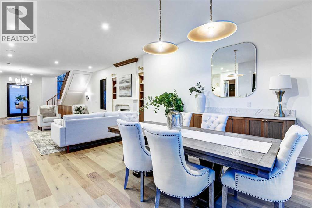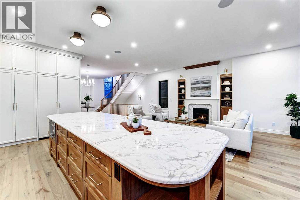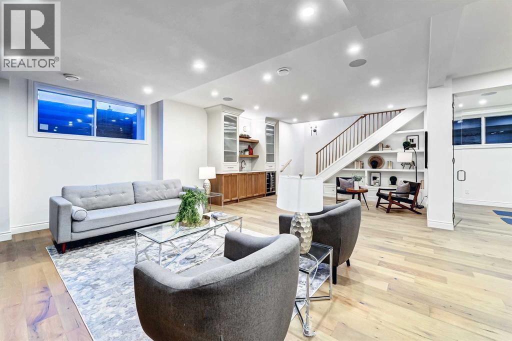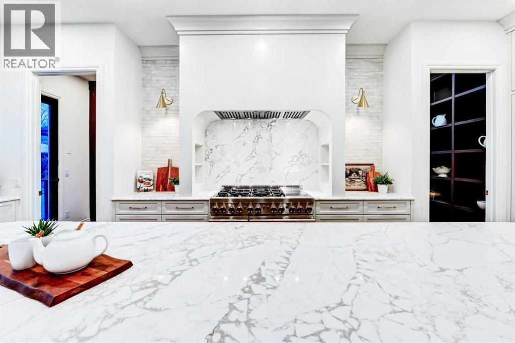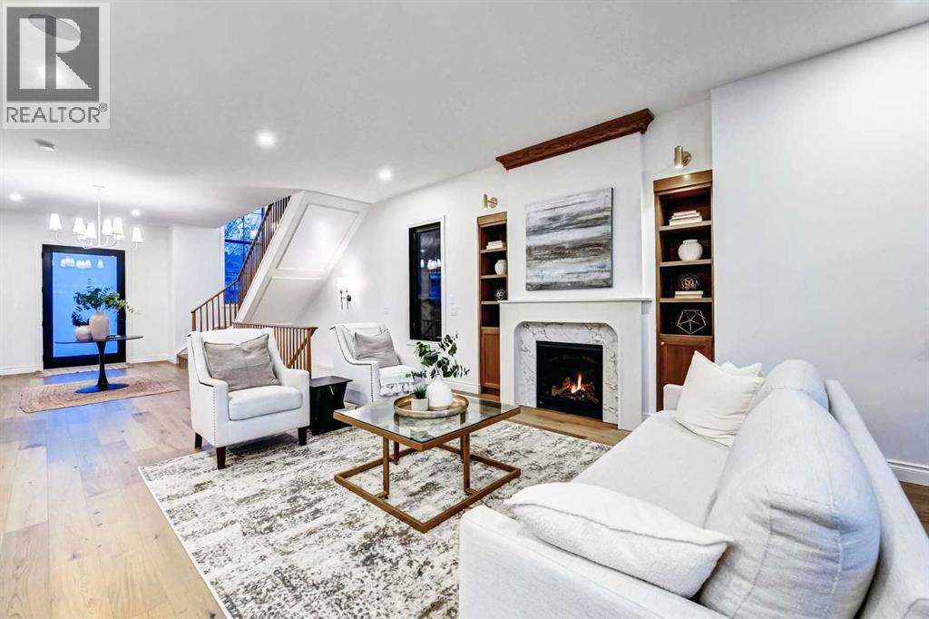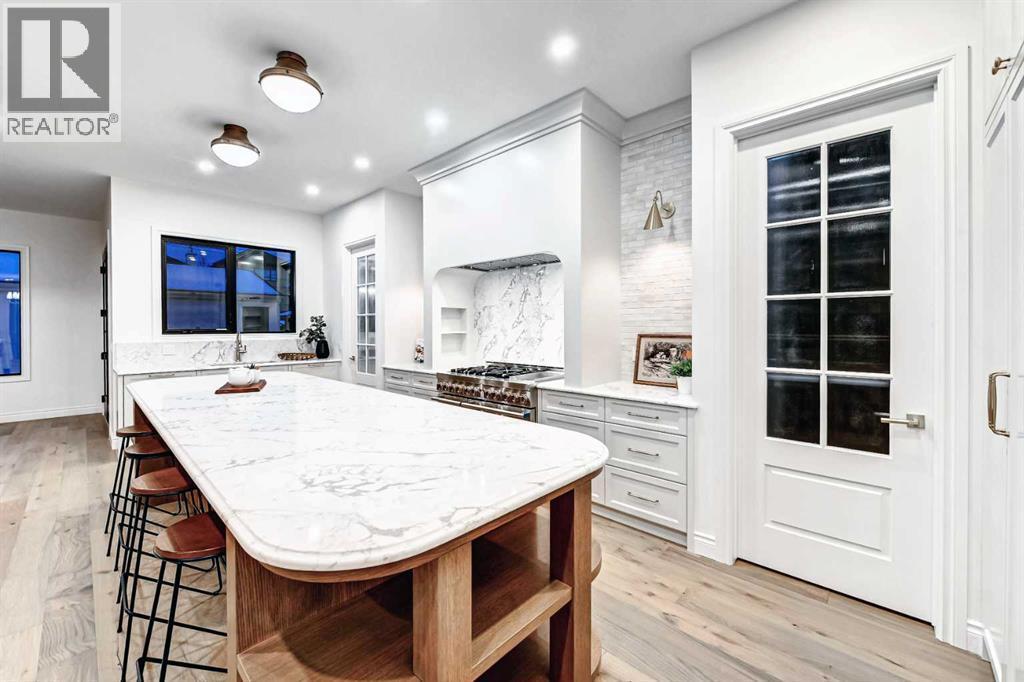Set on a quiet street in the heart of Marda Loop, The Bardot is an exceptional custom residence that blends refined French-Country character with contemporary luxury. Thoughtfully designed and built by Cedar Rock Homes with interiors curated by Aly Velji Designs, this home offers four bedrooms, 4.5 bathrooms, and a rare triple-car garage. The striking exterior showcases a sophisticated mix of stone, stucco, and Hardie panel, accented by an aluminum cedar soffit entry, statement front door, and custom aluminum Lux windows with black interior cladding. The fully landscaped and fenced backyard is designed for low-maintenance enjoyment and features a generous composite patio with aluminum and glass railing, creating a private outdoor retreat. Inside, wide plank white oak engineered hardwood flooring flows throughout all levels, complemented by solid core doors and custom site-built cabinetry with wood dovetail drawers. Soaring 10-foot ceilings on the main floor and 9-foot ceilings on both the upper and lower levels enhance the home’s bright and open feel. The main living area is anchored by a cozy gas fireplace and transitions seamlessly into the chef-inspired kitchen featuring a premium JennAir appliance package, including a 48-inch gas range, 48-inch panelled refrigerator, panelled dishwasher, and a microwave drawer integrated into the island with additional storage on both sides. A curved quartz slab island, custom cabinetry, and a bespoke hood fan create a stunning focal point, while the adjacent butler’s pantry adds extended storage and elevated lighting. The dining space is highlighted by a custom oak sideboard, and a spacious mudroom with tailored millwork ensures everyday functionality. A private front office is thoughtfully designed with French doors, floor plugs, and custom glass-front cabinetry. Upstairs, three generously sized bedrooms each feature walk-in closets and private ensuites with heated tile flooring. The primary retreat is highlighted by vaulted c eilings and a spa-inspired ensuite complete with an oversized steam shower with dual rain heads, a freestanding tub, solid slab stone backsplash, and custom hanging mirrors. A beautifully finished upper-level laundry room with sink, hanging rod, and custom cabinetry completes the floor. The fully finished basement expands the living space with a gym, TV and games area, wet bar with beverage fridge, full bathroom, and ample storage. Mechanically, the home is equipped with dual-zone high-efficiency furnaces with humidifiers, along with rough-ins for in-floor basement heating, air conditioning, central vacuum, speakers, security system, and exterior cameras. Every detail of The Bardot reflects intentional design, superior craftsmanship, and timeless appeal, all just steps from Marda Loop’s vibrant shops, restaurants, parks, schools, and only minutes from downtown Calgary. (id:6769