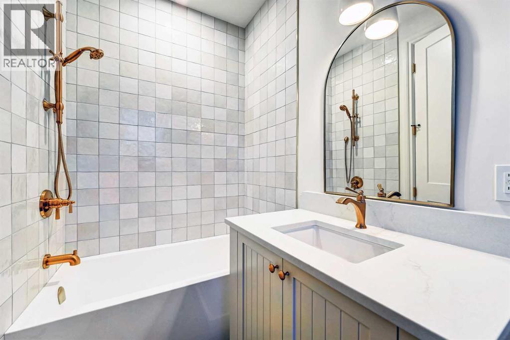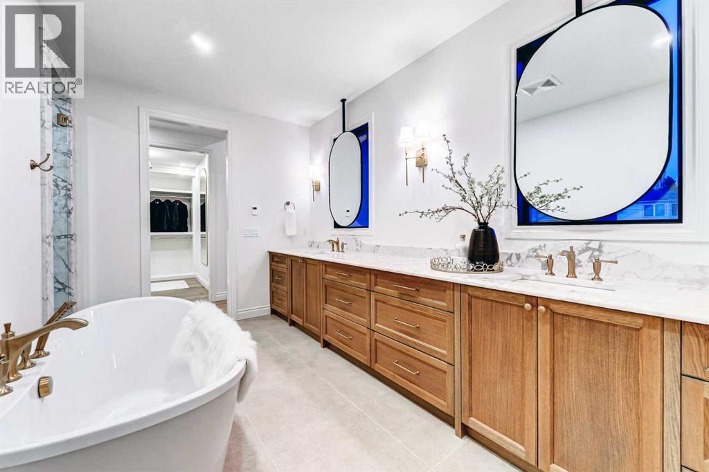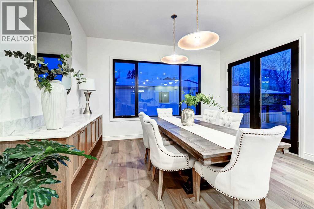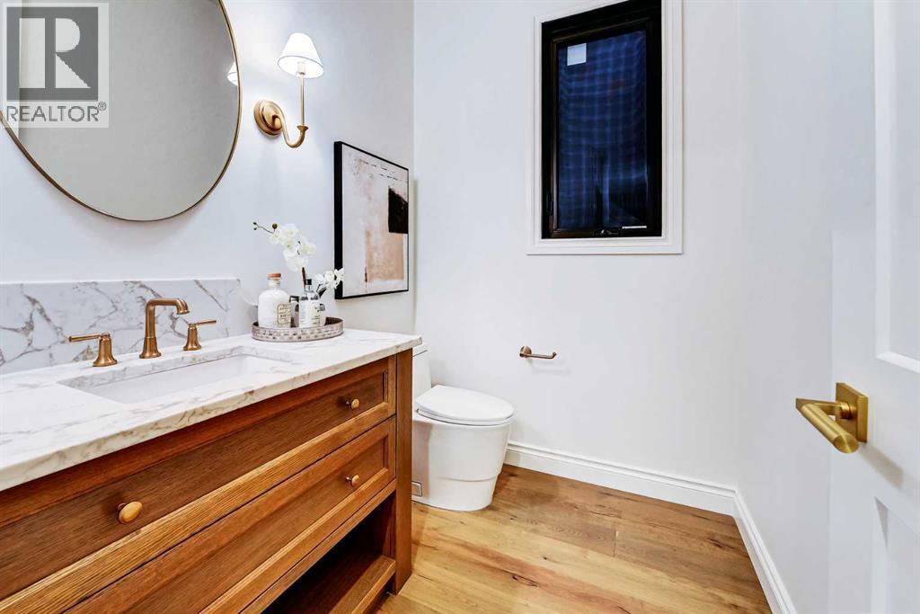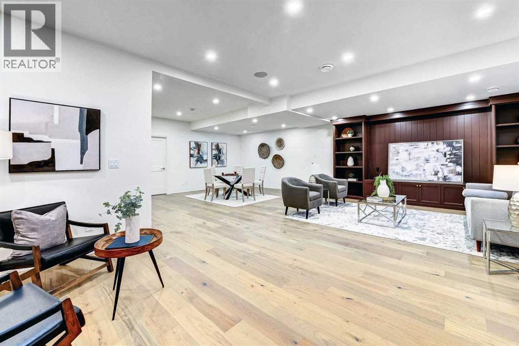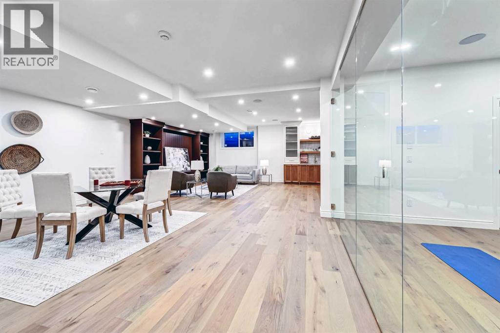 Set on a quiet street in the heart of Marda Loop, The Bardot is an exceptional custom residence that blends refined French-Country character with contemporary luxury. Thoughtfully designed and built by Cedar Rock Homes with interiors curated by Aly Velji Designs, this home offers four bedrooms, 4.5 bathrooms, and a rare triple-car garage. The striking exterior showcases a sophisticated mix of stone, stucco, and Hardie panel, accented by an aluminum cedar soffit entry, statement front door, and custom aluminum Lux windows with black interior cladding. The fully landscaped and fenced backyard is designed for low-maintenance enjoyment and features a generous composite patio with aluminum and glass railing, creating a private outdoor retreat. Inside, wide plank white oak engineered hardwood flooring flows throughout all levels, complemented by solid core doors and custom site-built cabinetry with wood dovetail drawers. Soaring 10-foot ceilings on the main floor and 9-foot ceilings on both the upper and lower levels enhance the home’s bright and open feel. The main living area is anchored by a cozy gas fireplace and transitions seamlessly into the chef-inspired kitchen featuring a premium JennAir appliance package, including a 48-inch gas range, 48-inch panelled refrigerator, panelled dishwasher, and a microwave drawer integrated into the island with additional storage on both sides. A curved quartz slab island, custom cabinetry, and a bespoke hood fan create a stunning focal point, while the adjacent butler’s pantry adds extended storage and elevated lighting. The dining space is highlighted by a custom oak sideboard, and a spacious mudroom with tailored millwork ensures everyday functionality. A private front office is thoughtfully designed with French doors, floor plugs, and custom glass-front cabinetry. Upstairs, three generously sized bedrooms each feature walk-in closets and private ensuites with heated tile flooring. The primary retreat is highlighted by vaulted c eilings and a spa-inspired ensuite complete with an oversized steam shower with dual rain heads, a freestanding tub, solid slab stone backsplash, and custom hanging mirrors. A beautifully finished upper-level laundry room with sink, hanging rod, and custom cabinetry completes the floor. The fully finished basement expands the living space with a gym, TV and games area, wet bar with beverage fridge, full bathroom, and ample storage. Mechanically, the home is equipped with dual-zone high-efficiency furnaces with humidifiers, along with rough-ins for in-floor basement heating, air conditioning, central vacuum, speakers, security system, and exterior cameras. Every detail of The Bardot reflects intentional design, superior craftsmanship, and timeless appeal, all just steps from Marda Loop’s vibrant shops, restaurants, parks, schools, and only minutes from downtown Calgary. (id:6769