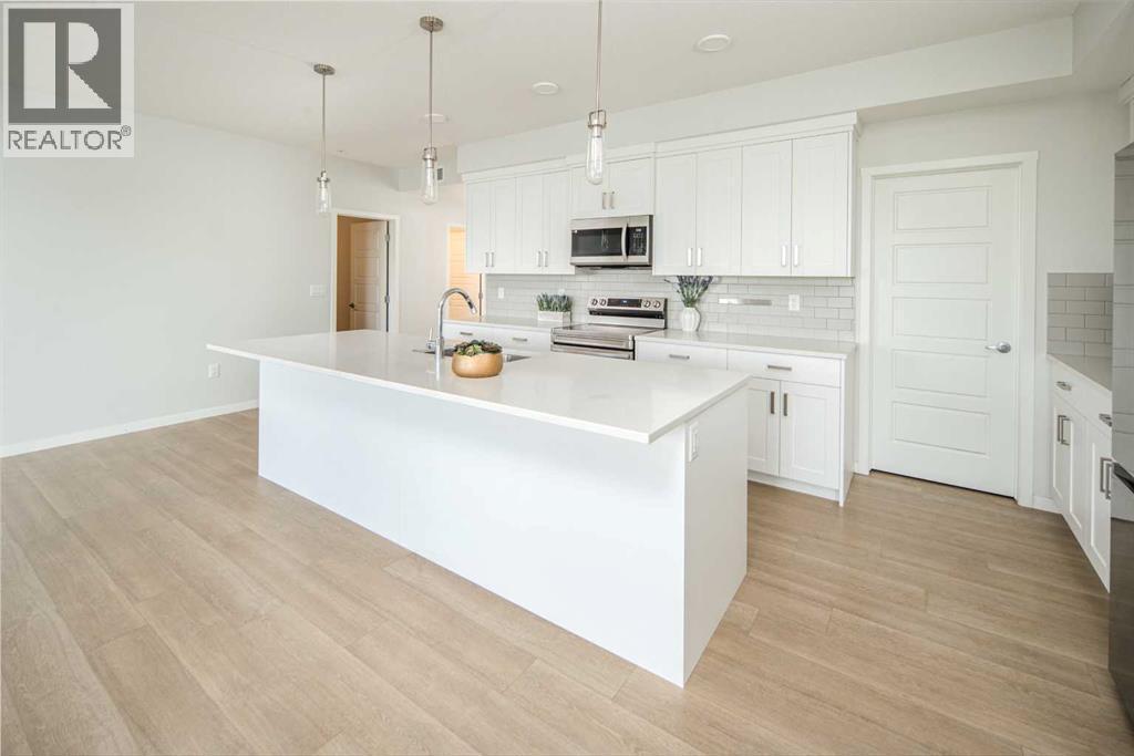 Welcome to Riverstone Manor! Located in the highly sought after southeast community of Riverstone in Cranston. BUILT BY “BUILDER OF CHOICE” WINNER CEDARGLEN LIVING! This unit offers luxury living right at your fingertips! This stunning southwest facing unit features 3 beds, 2 baths, and over 1,188 SqFt of living space. It also comes a titled underground parking stall and building bike storage! open plan, 9' ceilings, Low E triple glazed windows, electric baseboard heating, BBQ gas line on the balcony, Fresh Air System (ERV) and so much more. Super sunny SOUTH UNIT, with UNOBSTRUCTED Views of the Scenic Wet Pond on the balcony. The kitchen is spectacular with full height cabinets, quartz counters, pots/pan drawers, undermount sink, upgraded backsplash and S/S appliances. The island is extensive which transitions into the spacious living area and large dining room, perfect for entertaining. The spacious primary bedroom has a large window (triple pane windows), sizeable walk-in closet and dual vanities with a stand-up shower. The additional bedrooms are perfect for kids, guests, or an office. Nearby is the laundry/storage room (washer & dryer included) and a 4pc bath with quartz counters and undermount sink. Highlights include: Hardie board siding, electric baseboard heating, BBQ gas line on the balcony. Strategically located steps from the beautiful Bow River, adjacent to the scenic wet pond, access to Cranston’s Resident’s Association and many other bespoke amenities. PET FRIENDLY COMPLEX! (id:6769