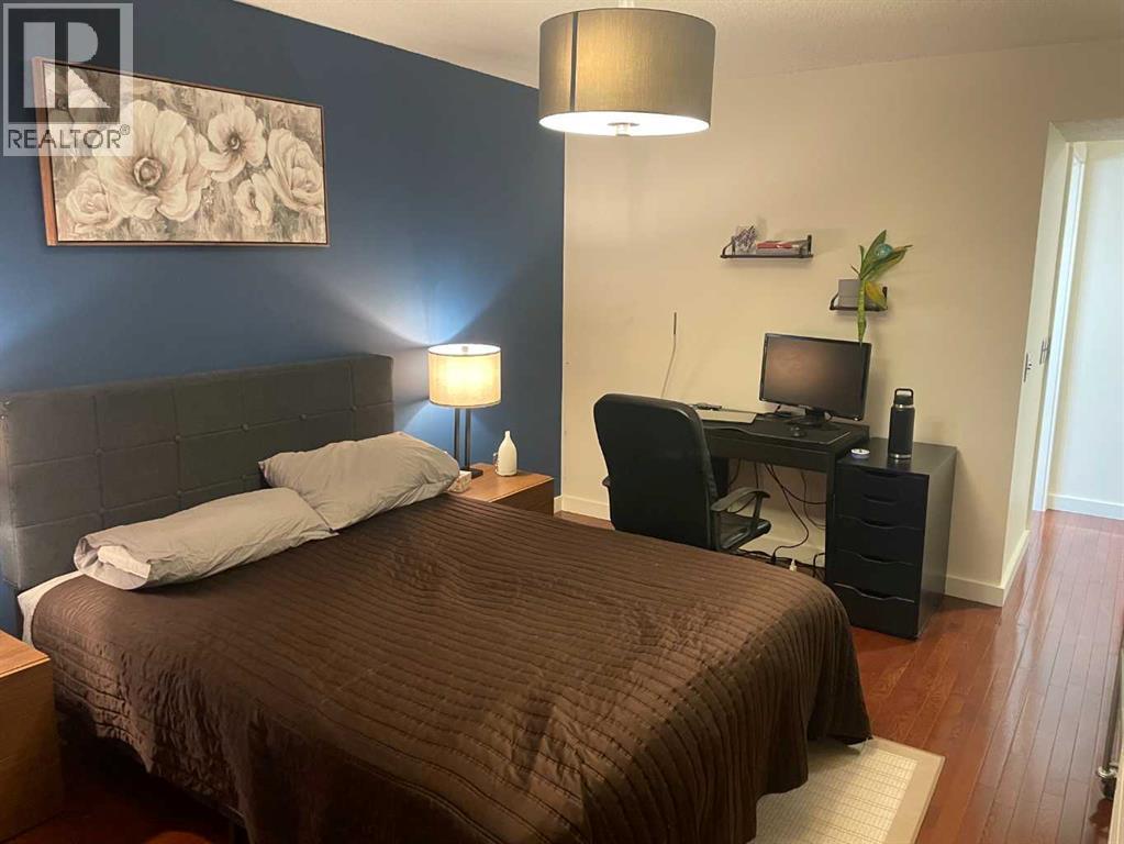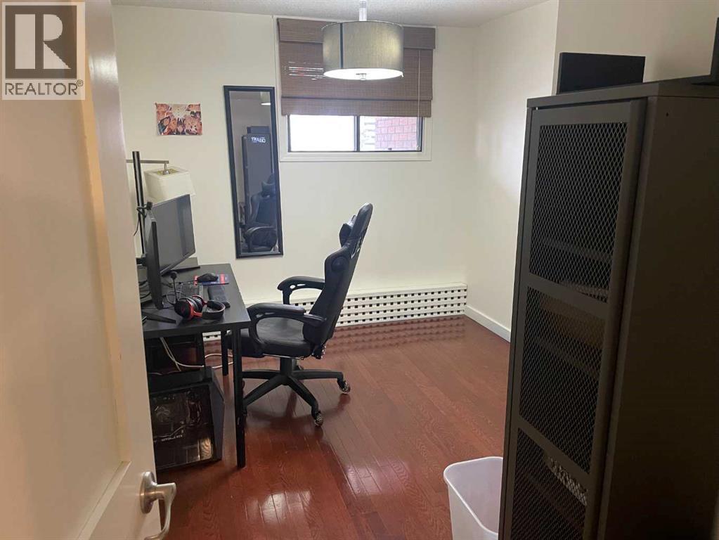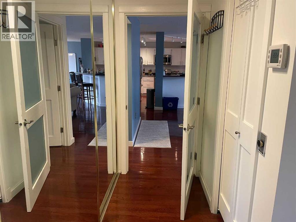 This well maintained unit in the well managed and maintained concrete Cozart Condo. Very bright and light with gleaming hard-wood floors. The layout is open and functional, with a good sized kitchen which opens to the dining and living space, with plenty of natural light thanks to the large windows and patio door. Beautiful hardwood flooring throughout, Stainless steel appliances, Good size laundry and storage area in suite Two good size bedroom and two full baths. Great view and a large balcony. Cozart offers resident management, security, renovated gym, large party room, visitor parking, car wash and a roof top terrace with city skyline views. Convenient inner city living located a short walk to downtown. Trendy Uptown 17th Ave. eateries, bars, shopping, transportation are all just steps away! Assigned parking Number 53. Storage unit 25/604 (id:6769
