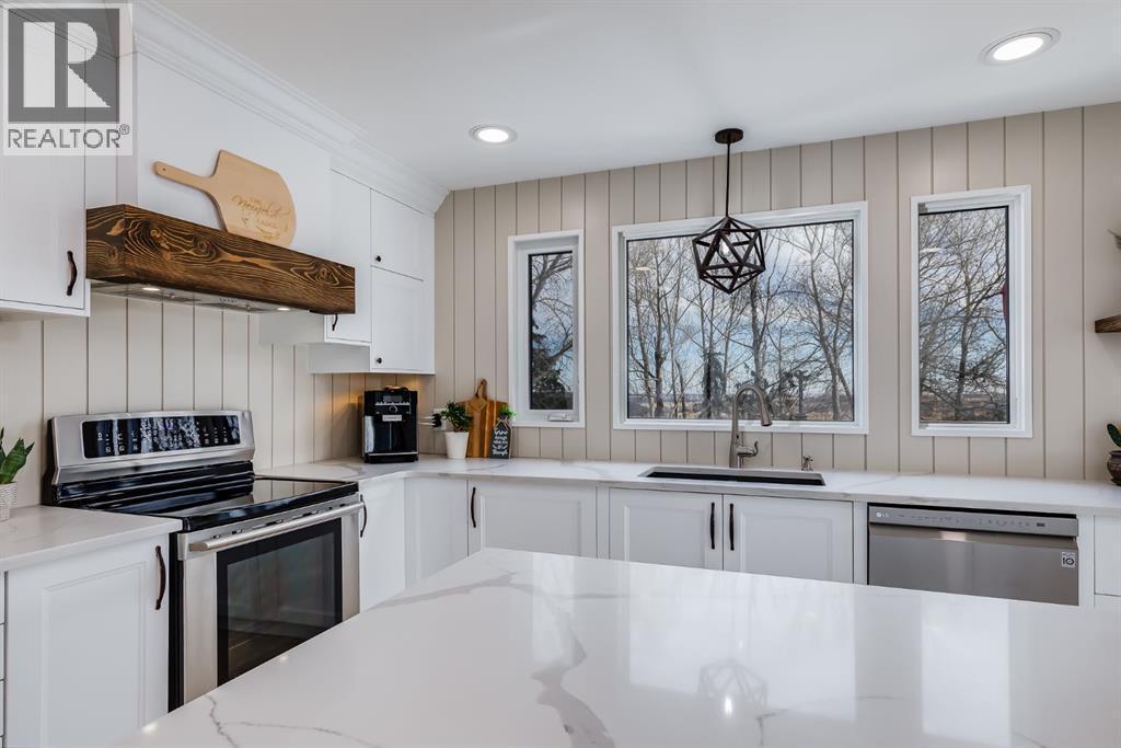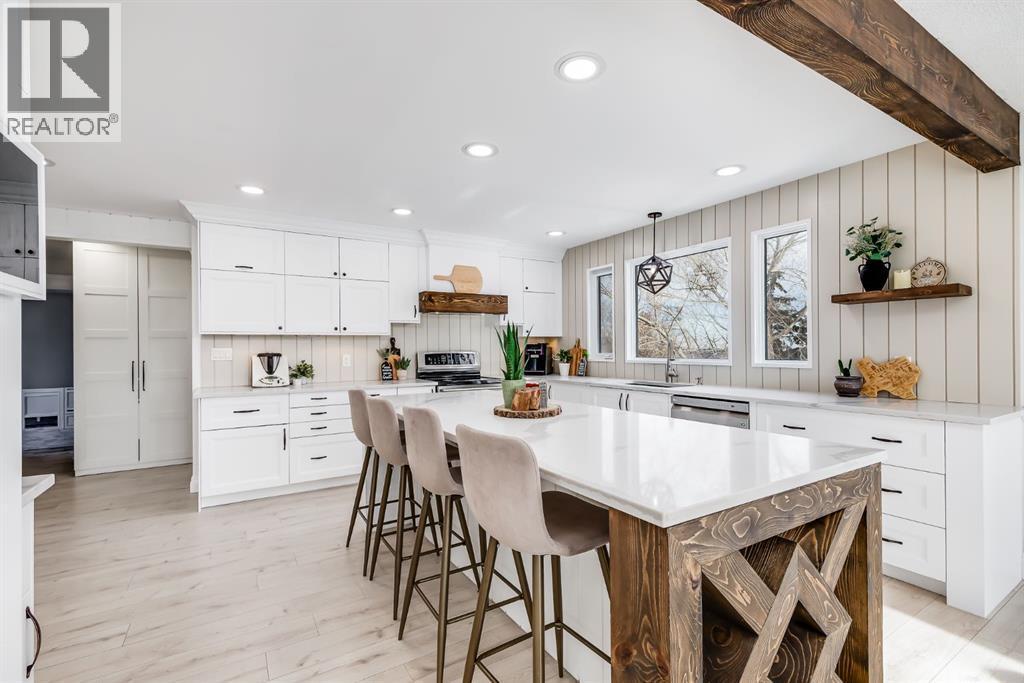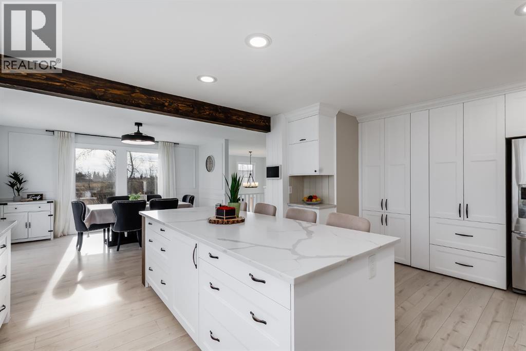 Welcome to acreage living done right. Where space, upgrades, and lifestyle come together just 6 minutes from Okotoks.Set on 3.11 acres with sweeping west-facing views, this striking two-storey gambrel-style home offers over 4,000 sq. ft. of fully developed living space, completely refreshed from top to bottom. This is not a cosmetic update; it’s a full transformation designed for modern country living.From the moment you arrive, the curb appeal makes a statement. The exterior has been freshly repainted and enhanced with new timber-frame accents, a new front entry door, and new black frame windows setting the tone for the quality and care found throughout the home.Step inside and everything feels new. The home features new windows, new flooring and carpet, new interior doors, and fresh paint throughout. The layout remains warm and family-friendly while delivering a clean, contemporary finish that feels both polished and inviting.At the heart of the home is the brand-new kitchen, complete with quartz countertops, updated cabinetry, and generous prep space; perfect for entertaining or everyday life. The adjoining dining and living areas are filled with natural light and designed to capture the peaceful surroundings and wide-open views.The home offers four spacious bedrooms and four bathrooms, including two four-piece baths (one with in-floor heating), a three-piece bath, and a convenient powder room; ideal for families, guests, or multi-generational living. The fully developed lower level adds even more flexibility, whether you envision a media room, home gym, or guest retreat.Comfort and efficiency were clearly prioritized. The home is equipped with three furnaces providing separate zoning for each level, two central air conditioning units serving the main and upper floors, an upgraded electrical panel, a new gas hot water tank, and a Nest smart thermostat. A new washer and dryer on the upper level add everyday convenience.Outside, multiple decks invite you to enjoy breathtaking sunsets and the serenity of acreage living. The land offers room to garden, keep animals, or simply enjoy the privacy and open space. A large barn and fully equipped chicken coop make this property ideal for hobby farming or animal lovers.Located just minutes from Okotoks, this property delivers the rare combination of rural tranquility and quick access to schools, shopping, dining, and recreation. This is more than a home. It’s a turnkey acreage lifestyle, thoughtfully upgraded and ready to be enjoyed.Opportunities like this don’t come along often. This one is ready for its next chapter. (id:6769