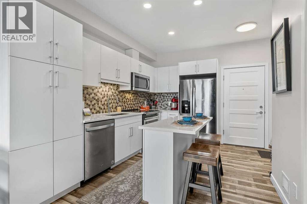 *** For more information, please click the "More Information" button. *** Welcome to Your New Home in Greenwich, Calgary! Nestled in the sought-after Greenwich community, this charming 1-bedroom condo offers the perfect blend of modern convenience and urban living. Located just steps away from the Calgary Farmers' Market West, you'll enjoy easy access to fresh local produce, artisanal goods, and delicious eats – all year round! Inside, this condo boasts an open-concept layout with plenty of natural light, creating a welcoming and airy atmosphere. The spacious living area is perfect for both relaxation and entertaining, while the well-appointed kitchen features sleek, contemporary finishes and ample storage space. Key Features: 1 generous bedroom with walkthrough closet; Bright and inviting living area with large windows; Large balcony with natural gas hook-up; LVP flooring with in-floor heating; Upgraded kitchen with quartz countertops, upgraded stainless steel appliances, and functional island; laundry with full-size stacked washer and dryer for ultimate convenience. Condo fees include: Common area maintenance, Heat, Water, Natural gas (BBQ), Waste removal, Parking, Property Management, Reserve Fund contributions. Titled parking stall. Walkable to Calgary Farmers' Market West for easy shopping and dining. Easy access to WinSport, COP and GoodLifeFitness. Whether you're a first-time buyer or looking to downsize, this condo offers a perfect balance of comfort and location. Enjoy the best of both worlds – a peaceful retreat with quick access to vibrant shopping, dining, and recreation. Don't miss your chance to call this condo home. (id:6769