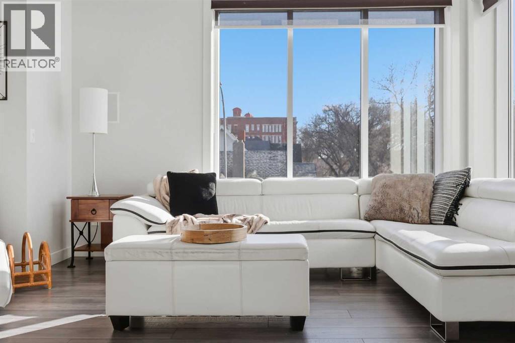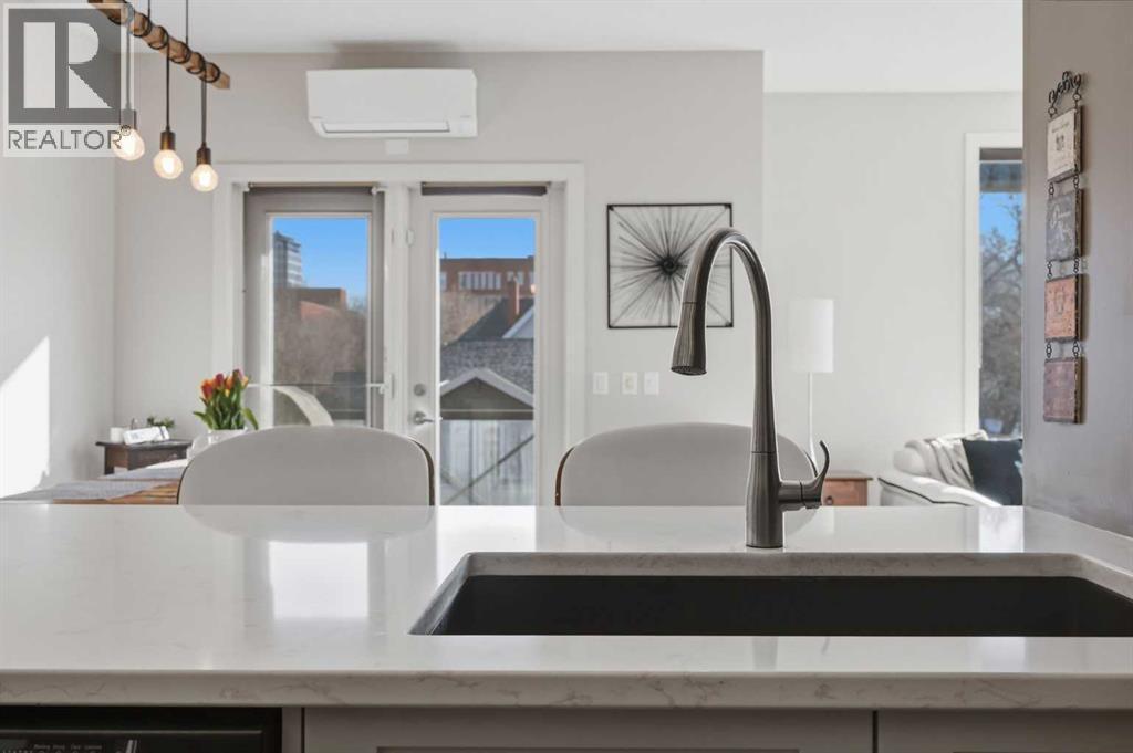 Welcome to #206, 910 18 Avenue SW. This stunning 2-bedroom, 2-bathroom corner unit is perfectly located just steps from the vibrant energy of 17th Avenue. With south-facing picture windows, this beautifully renovated condo is flooded with natural light, creating a warm and inviting atmosphere. Thoughtfully renovated just a few years ago, the home showcases modern, high-quality finishes throughout. The kitchen is a true highlight, featuring sleek quartz countertops, stainless steel appliances, and barstool seating, which creates the perfect space for casual dining, morning coffee, or entertaining guests. The open-concept design flows seamlessly into the dining and living areas, allowing the natural light from the large south-facing windows to fill the entire space. The dining area provides access to your private balcony, ideal for enjoying sunny afternoons or unwinding in the evening. Cozy up next to the fire in your spacious family room that features built-in speakers. Both bathrooms were refreshed during the renovation, offering a clean, contemporary feel that complements the home’s updated aesthetic. The primary bedroom provides a comfortable retreat, complete with a well-appointed ensuite, while the second bedroom and full bath offer flexibility for guests, a home office, or additional living space. Comfort is a priority with air conditioning throughout, ensuring the space remains cool and comfortable during Calgary’s warmer months. Perfect for professionals, downsizers, or investors, this property offers the ultimate lock-and-go lifestyle. Located just a few steps from some of Calgary’s best restaurants, cafés, boutiques, and downtown amenities along 17th Avenue, you’ll enjoy the ideal balance of urban vibrancy and stylish inner-city living. This is a rare opportunity to own a bright, renovated corner unit with titled underground parking in one of Calgary’s most desirable locations. (id:6769