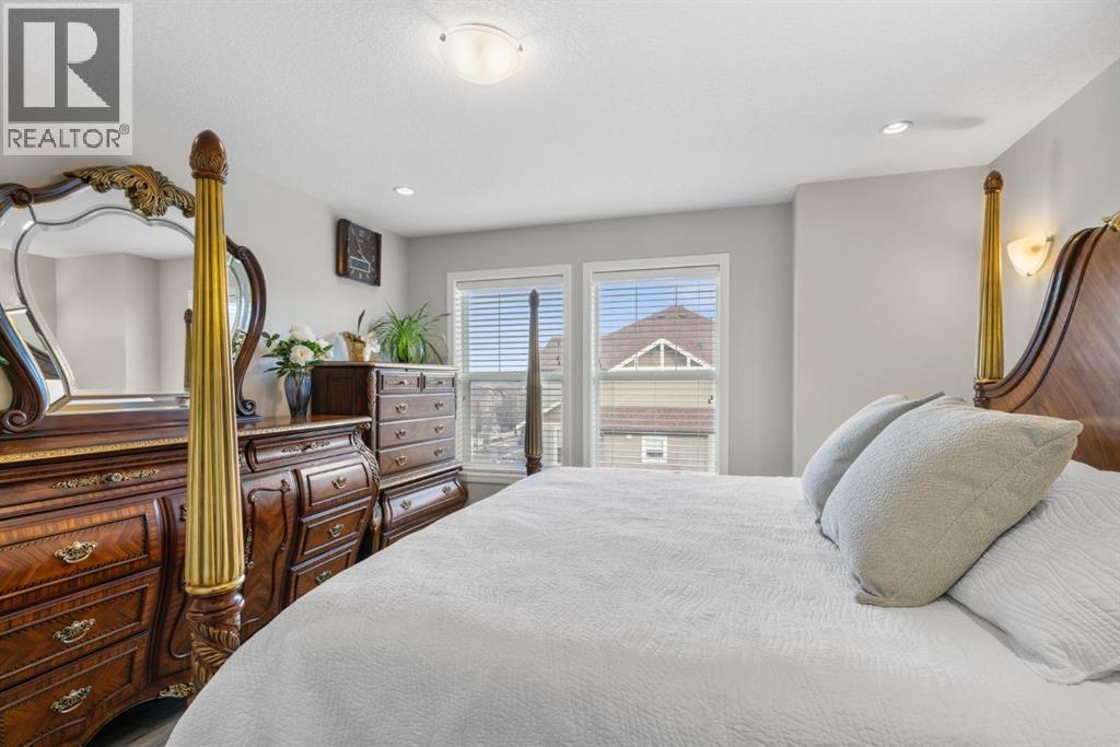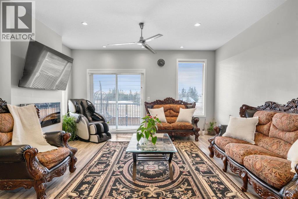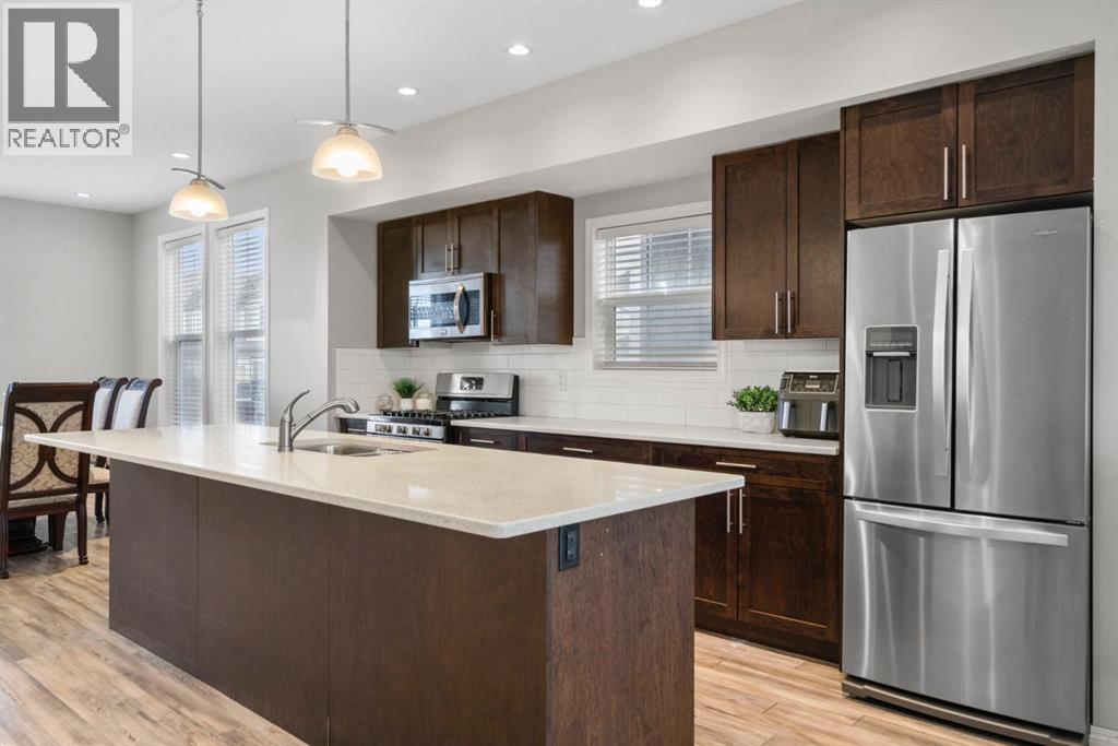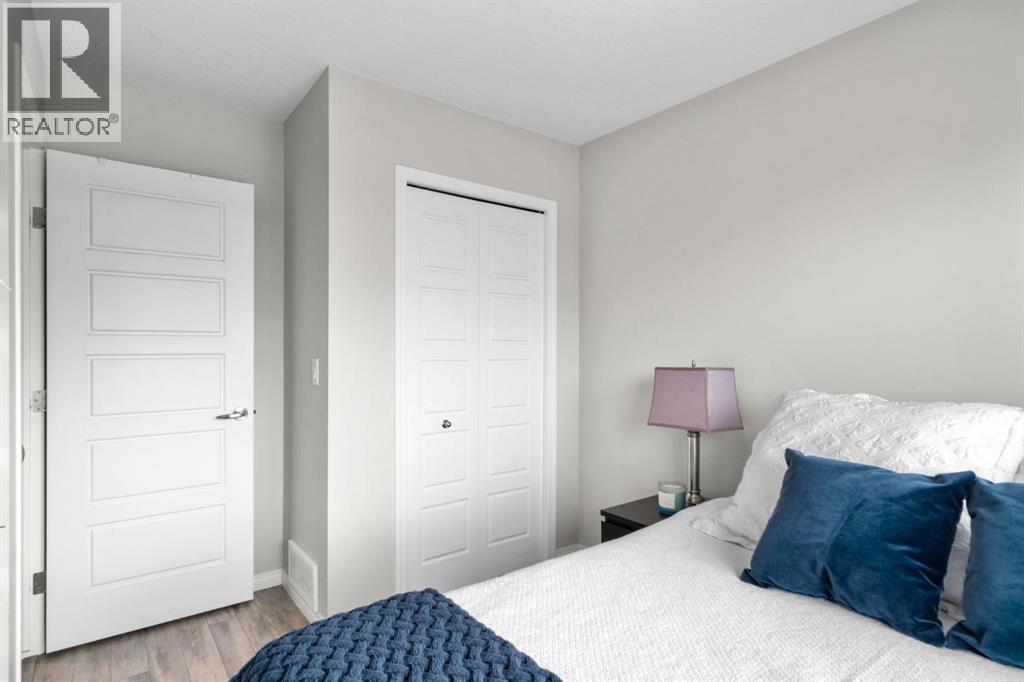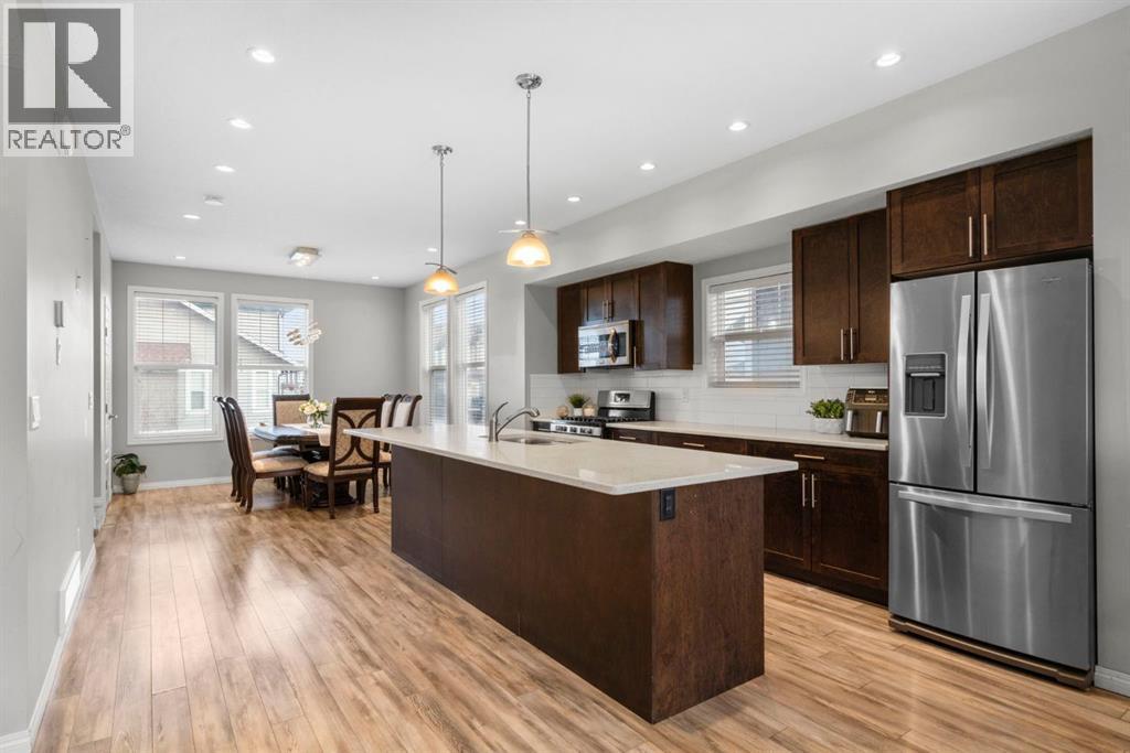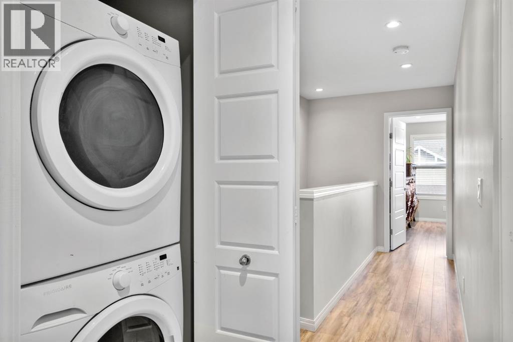 Welcome to this beautifully maintained three-level townhouse in the desirable community of Williamstown in Airdrie, offering 1,718.22 sq ft of well-designed living space, a functional layout, and a rare double attached garage. The ground-level entry provides a welcoming first impression with durable flooring and a bright, practical layout. This level features a spacious office space—ideal for guests, a home office, or multi-generational living—along with a full 3-piece bathroom, offering excellent flexibility and privacy. The main living level showcases an inviting open-concept floor plan designed for both everyday living and entertaining. The kitchen is the heart of the home, featuring quartz countertops, dark cabinetry, stainless steel appliances, a classic subway tile backsplash, and a large central island with seating. The kitchen flows seamlessly into the dining area and spacious living room, where a contemporary electric fireplace adds warmth and style. Large windows flood the space with natural light, and sliding doors lead to a private balcony—perfect for morning coffee or evening relaxation. A convenient main-floor powder room completes this level. Upstairs, the home continues to impress with three additional bedrooms, including a generous primary retreat featuring a 4-piece ensuite and ample closet space. A second full bathroom serves the additional bedrooms, while upper-floor laundry adds everyday convenience and efficiency. Outside, enjoy open sightlines and green space views, enhancing both privacy and lifestyle appeal. Located in a well-maintained complex, this home is close to walking paths, parks, schools, shopping, and offers easy access to major commuter routes. This move-in-ready townhouse delivers the perfect blend of space, comfort, and location—ideal for families, professionals, or investors seeking a low-maintenance lifestyle in one of Airdrie’s most welcoming communities. (id:6769