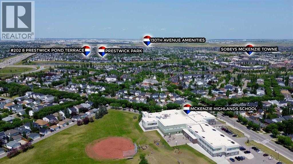 Open House! Saturday, March 14th, 2026, from 1:00 PM to 3:00 PM. ***6 MONTHS FREE CONDO FEES INCLUDED! *** Stunning 2 bed 2 bath CORNER unit in beautiful McKenzie Towne – Welcome home to 202 - 8 Prestwick Pond Terrace. This unit has been impeccably maintained in the sought-after Caledonia on the Waterfront complex. The open-concept living space welcomes with plenty of natural light and neutral colors. The well-designed kitchen features granite countertops, maple cabinetry & center island with seating overlooking the spacious living area and new luxury vinyl plank flooring. The adjacent dining area is framed by bay windows & offers access to the private outdoor balcony. The primary bedroom is generously sized, featuring a 4-piece ensuite bathroom and a walk-in closet with new carpet. A second bedroom, 3-piece bathroom with walk-in shower, and enclosed laundry complete the space. Additional building amenities include a quiet, pet-friendly complex, secure underground parking, and common living/dining/kitchen/library – perfect for gathering with family & friends. This prime location means you can walk to incredible dining & shopping, minutes to 130th Ave amenities, and easy access throughout the city on nearby Deerfoot & Stoney Trail. Enjoy the beautiful pond right outside, as well as walking and biking on local pathways. Book your viewing today! (id:6769