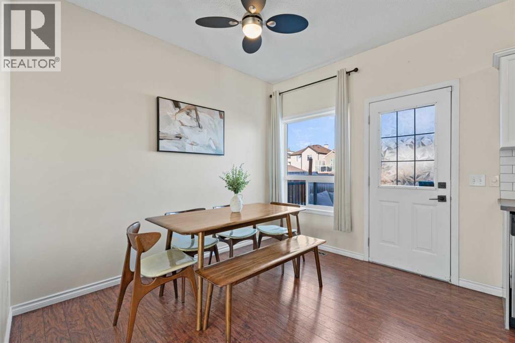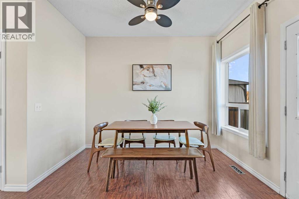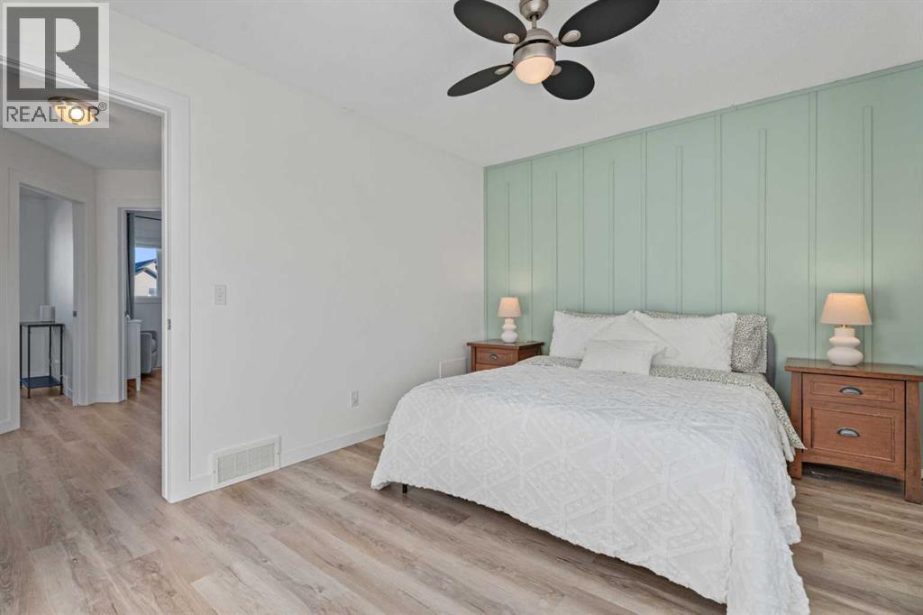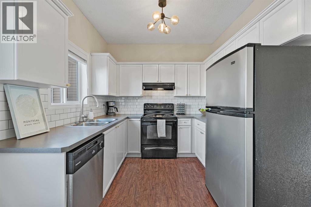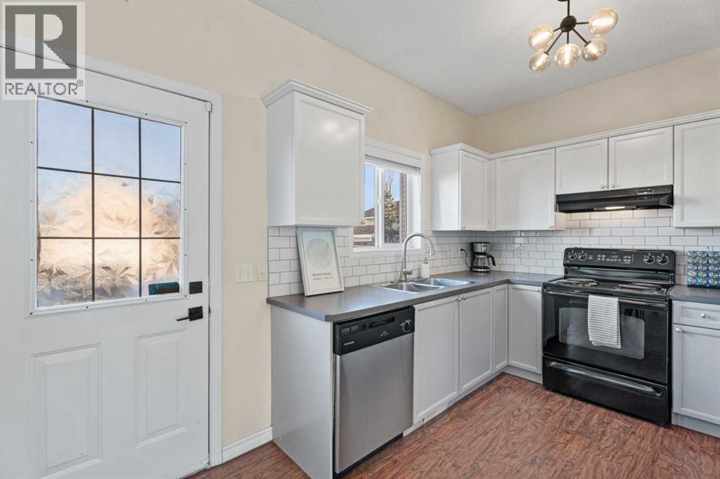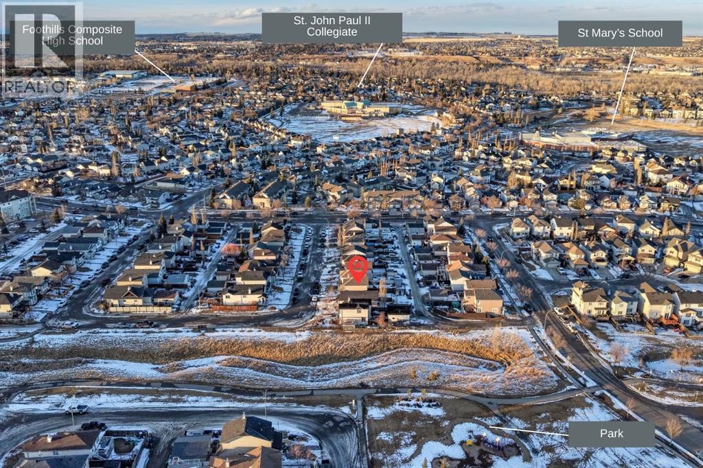 Welcome to this beautifully maintained home, ideally situated on a quiet crescent in the sought-after, family-friendly community of Cimarron Grove. Offering charming curb appeal with a full-width front verandah, this home invites you in from the moment you arrive. Step inside to discover a bright and spacious main floor featuring 9’ ceilings with built-in speakers, modern décor, and a cozy gas fireplace with TV niche above. A large west-facing bay window fills the living room with natural light. The open-concept kitchen showcases flat panel maple cabinetry, tile backsplash, and seamless flow into the sunny dining nook with direct access to the backyard. A convenient 2-piece bath completes the main level. Upstairs, the primary bedroom offers a walk-in closet, while two additional bedrooms and a 4-piece bathroom provide comfortable space for family living. One of the standout features of this property is the side/separate entrance, which provides direct access to the fully developed basement, offering excellent flexibility for extended family, guests, or potential secondary living space which is AIRB&B friendly providing extra income! The lower level includes a spacious family room, a 3-piece bathroom, laundry and additional storage. With many upgrades including new flooring(2025), ROOF (2022), hot water tank(2022). Enjoy the fully fenced backyard complete with a deck, lower patio, and storage shed. Rear alley access leads to a two-car gravel parking pad, adding convenience and functionality. Located close to schools, parks, shopping, and all amenities, this home combines comfort, versatility, and an exceptional location. Book your showing today! (id:6769