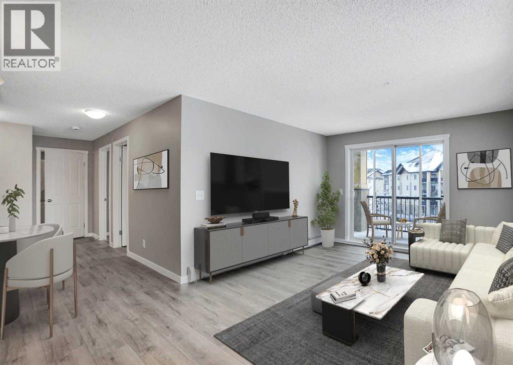 Ever dream of living in a renovated (new vinyl plank flooring, freshly painted, new baseboards & trim) 2 bedroom CORNER unit condo, with underground parking, in-suite laundry and still be able to afford it? WELCOME HOME. The heart of the home, is the kitchen, where you'll enjoy your easy-to-clean glass top stove, newer stainless steel fridge, and enjoy the openness that the breakfast bar allows, and the extra sitting of a full size table, you can sit ALL of your guests. Let the party spill from the kitchen, to the adjacent living room, and even to the large balcony. All of these areas are sundrenched thanks to the SOUTHWEST corner exposure. All the flooring (except tile) has just been replaced with luxury vinyl plank (incredible durable/tough, exceptional looks), the unit has been completed repainted, and new baseboards to fully update. Comes complete with it's own laundry. The condo fees include EVERYTHING, water, heat, and even ELECTRICITY making your budgeting easy. Take the convenient stairs to your underground parking or the elevator. Sobey's, is ~1000 feet away, and the even close Creekside Village offers a variety of service (coffee, dental, chiro, etc). Nose Creek meanders near and offers amazing outdoor enjoyment. From the great price, to the amazing renovations, to the convenience, to the parks, and underground parking, this unit is sure to please. Call today for your private showing. (id:6769