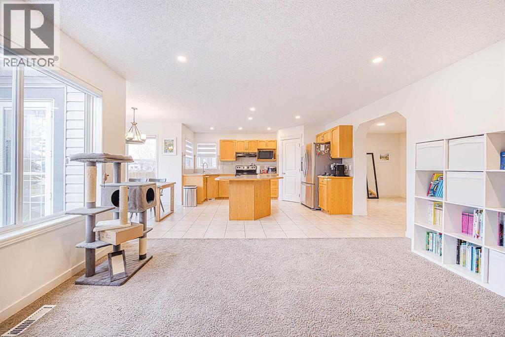 Welcome to this well-maintained family home in Lake Chaparral, offering over 2,436 sq ft of total finished living space, with a bright and practical layout, plus full access to the year-round lake amenities.The main floor features an open living area, a functional kitchen with plenty of storage, and a dining space that leads directly to a large backyard deck—ideal for everyday living and entertaining. Upstairs offers three comfortable bedrooms, including a spacious primary suite with a walk-in closet, private ensuite, and upgraded automatic blinds. A versatile bonus room adds flexibility for work or family use. The finished basement provides a cozy recreation room, an additional bedroom, and a full bathroom.The home has seen valuable updates including a newer hot water tank, a new furnace(2025) with humidifier and UV air purification (2025), new dishwasher, microwave, and kitchen faucet (2025), automatic blinds on the main floor and primary ensuite, CCTV system, a newly installed water softener, replaced roof and siding, and air conditioning for added summer comfort. Outside, a convenient shed provides extra storage for tools and equipment, and the attached double garage completes this practical family home.Situated on a quiet, family-friendly street close to schools, parks, shopping, and Lake Chaparral facilities, this property offers comfort, convenience, and an excellent community lifestyle. (id:6769