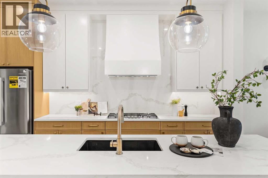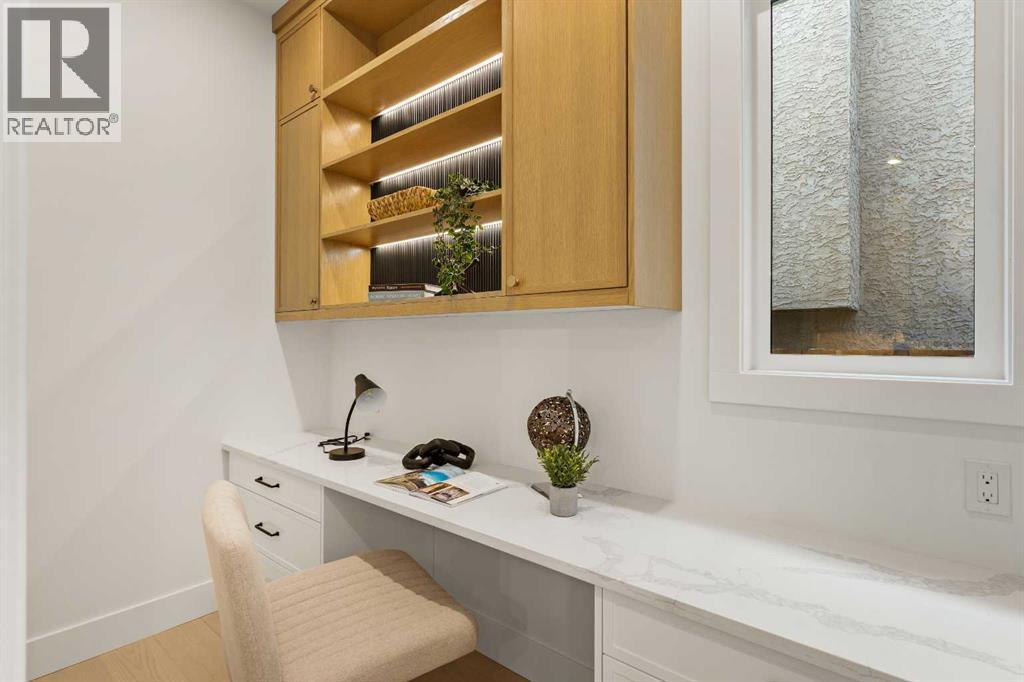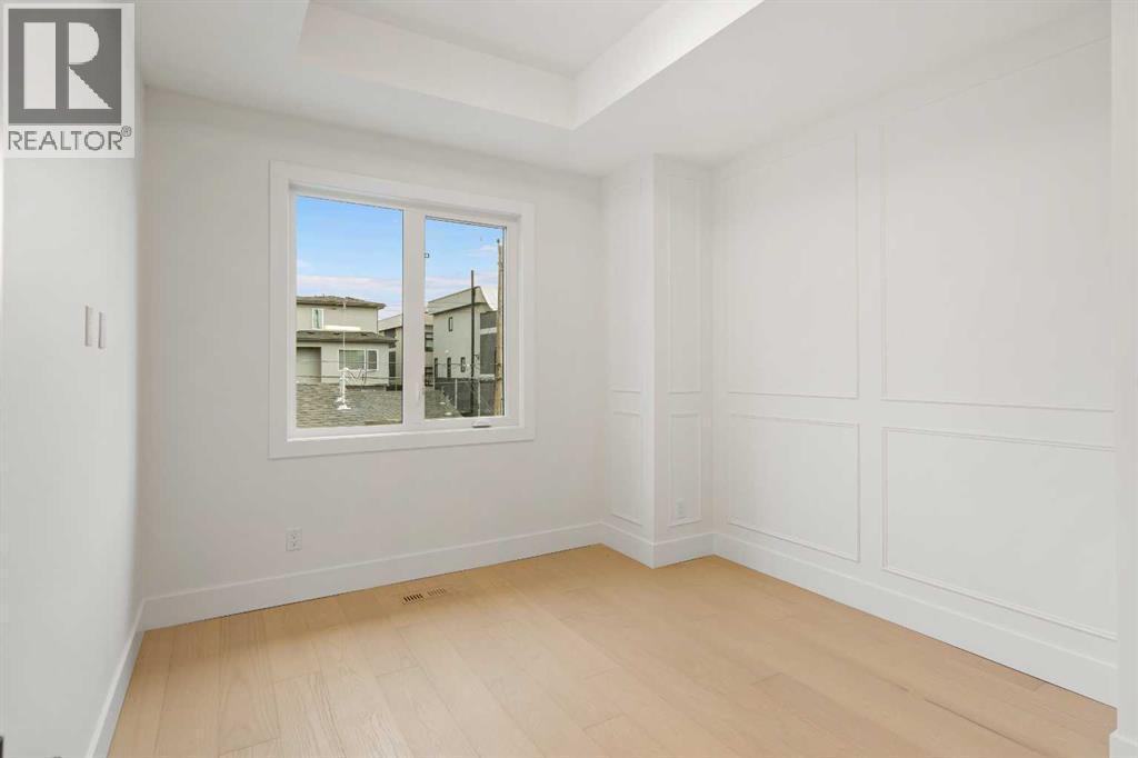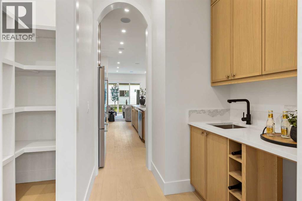 Introducing an exceptional modern infill in the highly sought-after community of Banff Trail, perfectly located on a quiet street just minutes from SAIT, McMahon Stadium, the University of Calgary, Confederation Park, and vibrant local amenities. This thoughtfully designed home offers outstanding craftsmanship, high-end finishes, double detached garage and a legal basement suite—ideal for multi-generational living or added income potential. The upper level, featuring 9ft ceilings, contains three spacious bedrooms, each complete with its own walk-in closet & private en-suite, providing comfort and privacy for the whole family. The luxurious primary retreat is truly impressive, showcasing a spa-inspired 5 pc en-suite, a large walk-in closet, and even a convenient wet bar - a rare and elegant touch. The laundry room is also located upstairs for ultimate convenience. The main floor is designed for both daily living and entertaining, highlighted by a massive chef's kitchen equipped with premium finishes, an oversized island, and a full butler's pantry. A bright living room with cozy gas fireplace, stylish dining area, and a versatile main floor den create the perfect balance of function and flow. Enjoy the 10 foot ceilings throughout this level!The fully developed basement offers a LEGAL SUITE with a separate side entry, complete with two bedrooms, a full bathroom, a comfortable living room, and a fully equipped kitchen all under 9 ft ceilings—ideal for rental income or extended family use.With exceptional design, unmatched convenience, and a prime inner-city location, this stunning home offers everything today’s buyers are looking for. A must-see opportunity! (id:6769