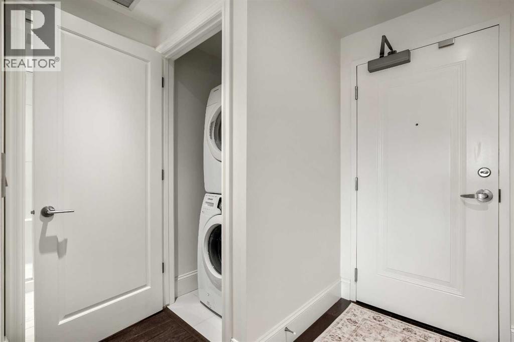 Experience luxury condo living in this beautiful, immaculately maintained 1-bedroom, 1-bathroom residence in this exquisite Champagne development. The unbeatable location has you walking out of your building just steps from the Bow River Pathway system, walking distance to Sue Higgins Off-Leash Dog Park, quick access to Deerfoot Trail, and walking-distance to shopping, restaurants, YMCA and more. This unit is located on the 4th floor of this quiet complex, delivering “penthouse qualities” with no overhead balcony, allowing natural light to flood the space. The interior is rich with quality and taste, featuring fresh paint, new carpet in the bedroom, a brand new microwave, tray ceilings, engineered hardwood flooring, 9 ft ceilings, marble tile, and top-of-the-line finishings. The chef's kitchen is centrally located within the unit, outfitted with premium stainless-steel appliances, including a gas range, an oversized granite island, soft-close cabinetry, making it perfect for entertaining or everyday casual dining. The bedroom can easily accommodate a king-size bed and more. The spa-like ensuite bathroom invites relaxation, offering a soaker tub as well as a tile shower. Enjoy the convenience of underground parking stall, a titled storage unit, bicycle storage, and a car wash bay. (id:6769