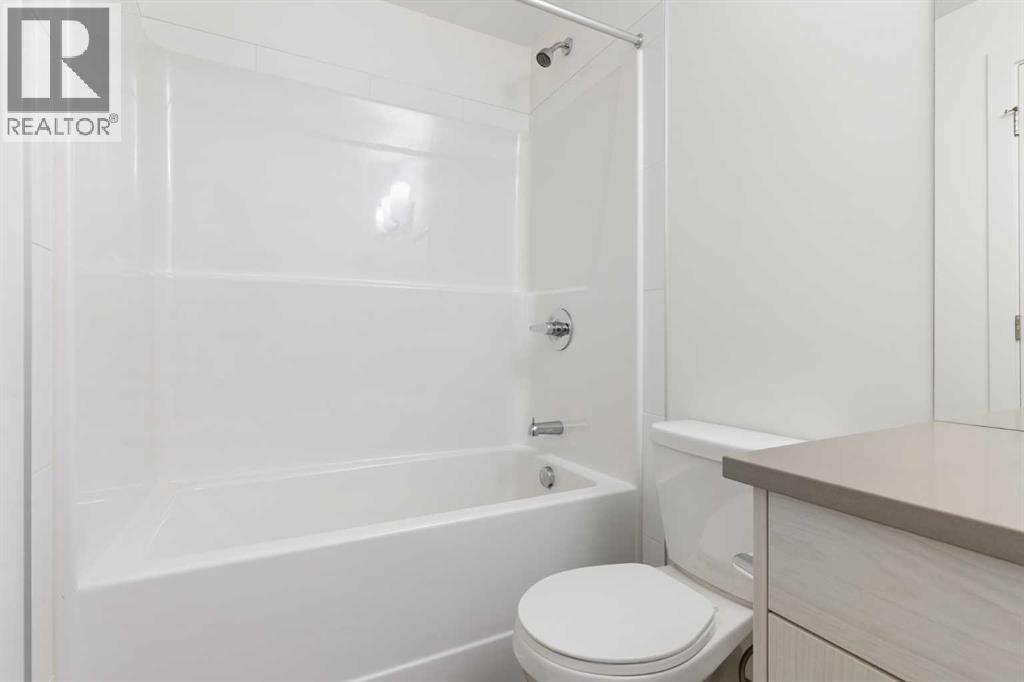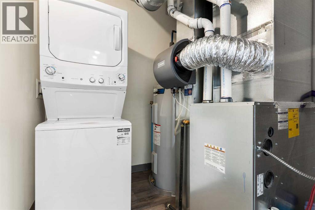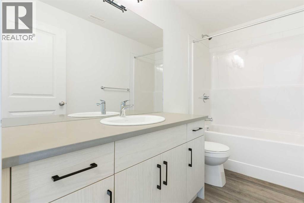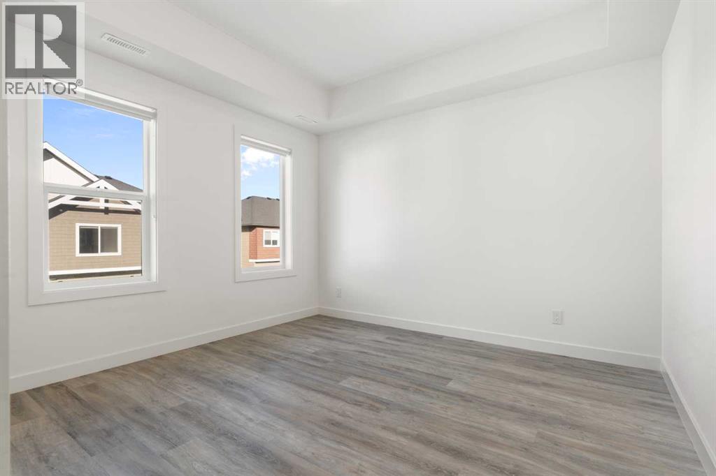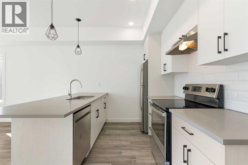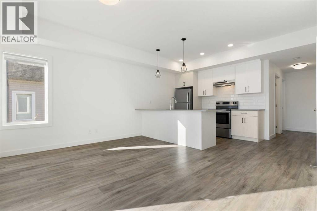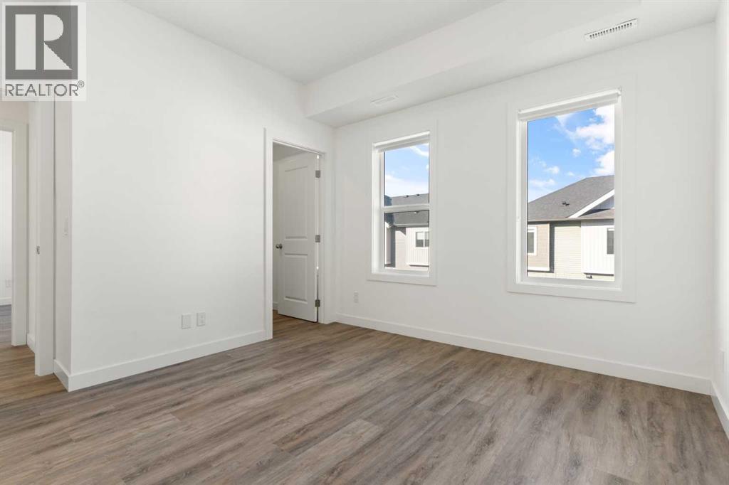 Welcome to The Jasper, a stunning top-floor stacked townhouse that offers the perfect blend of style and function. This unit at 602 24 Rivercrest Drive features over 1250 sq ft of thoughtfully designed living space, with most of the layout conveniently situated on a single level. Step inside and up to the main floor and you will discover an open-concept living area with a full kitchen that's a home chef's dream. The kitchen boasts elegant quartz countertops, soft-close drawers, and stylish two-tone cabinets highlighted by pendant lighting. An adjacent, flexible space is perfect for a spacious dining area or a home office. This home has two large bedrooms and two full bathrooms. The primary bedroom is a true retreat, featuring a massive walk-in closet and a luxurious 4-piece ensuite. A spacious laundry room adds to the convenience.This unique floorplan is designed to feel like a modern apartment but with the added benefits of a main floor storage/flex area and direct access to an oversized, extended single-car garage.This home is perfectly situated to offer the best of both convenience and community. It's located right next to a future school site, with transit options directly at your doorstep for effortless commuting. Enjoy a short two-minute walk to Bow Valley High School, and a quick five-minute trip to the Spray Lakes Sports Centre for all your recreational needs. For bigger city amenities, you're only 20 minutes from South Calgary, and the mountains are within easy reach, with Canmore just a 40-minute drive away. (id:6769