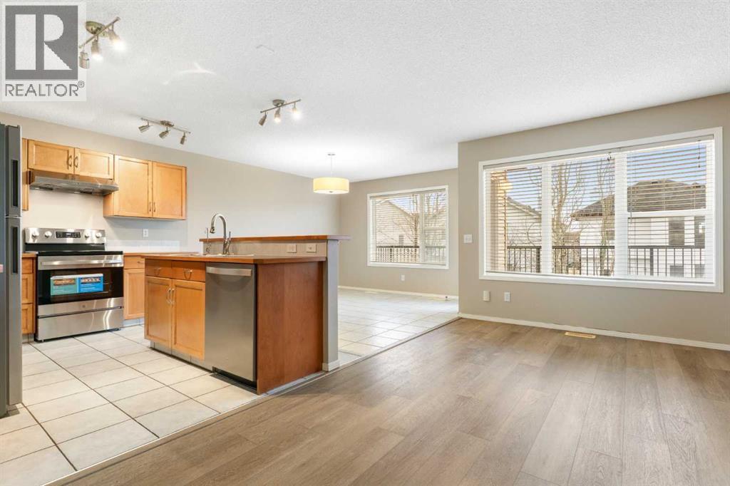 Great location in the desirable community of Evanston. This is a wonderful 4-bedroom, 3.5-bathroom home with over 2600 sq. ft. of living space, a fully developed walk-out basement and a double attached garage. As you enter, you will experience a bright, airy and spacious feeling from the amount of natural light in this open plan. Designed for great functionality, efficiency and flexibility of use, this home has a lot to offer an active family. You will not feel cramped as you welcome guests in the large entrance and there is plenty of space in the walk-in entrance closet. The hallway to the main floor living area beckons one to move beyond the entrance. There you will find a large living room with cozy gas fireplace. Notice the recently installed luxury vinyl plank flooring. Check out the kitchen featuring an island with breakfast bar, stainless steel appliances including a brand-new glass top stove, a high-volume hood fan and wood cabinetry. The adjacent dining room will accommodate a large family or guests and can be expanded into the living room for special occasions. The tile flooring in the kitchen and dining room cleans up easily. Access to a large south balcony with composite decking and metal railing is from the dining room. There is a convenient pantry through the door to the garage entrance. Here you will also find the main floor laundry and space for hanging coats. A 2-piece powder room is tucked away on this floor as well. The partially open stairs to the upper-level lead to a high ceiling bonus room with 2 large windows. This is a great space for family time, home office or a private retreat. A few steps higher takes you to 2 bedrooms and a 4-piece main bathroom. You will end up in the generous primary bedroom with a 4-piece ensuite, including an oval soaker tub and separate shower plus a walk-in closet with organizer. The entire upper level is carpeted with good quality underlay. Then there is the fully developed (2022) walk-out basement with an illeg al suite containing a large bedroom, open living area with cabinets and sink, a living room, a second laundry and a 3-piece bathroom with walk-in shower. The luxury vinyl plank flooring is low maintenance. Step out to the covered south patio and enjoy the fully fenced back yard. The roof was replaced in 2025 with Malarkey Vista Class 4 High-Impact Resistant Shingles. Both the furnace and hot water tank are high efficiency. Centrally located in Northwest Calgary, nestled in slightly rolling terrain, you have easy access to a full range of services, shopping, parks, playgrounds, some schools, public transportation and walkways/biking paths. There is easy access to Stoney Trail to go west to the mountains or east to the airport. This property is well maintained, selectively up-graded and it awaits a new family to call it home. (id:6769