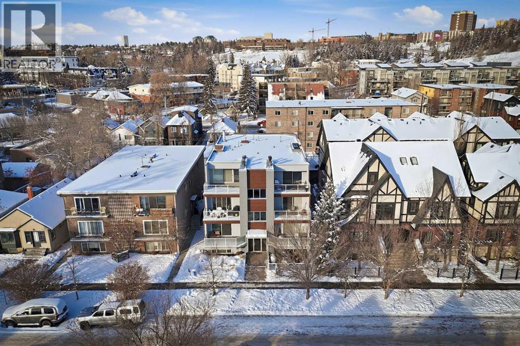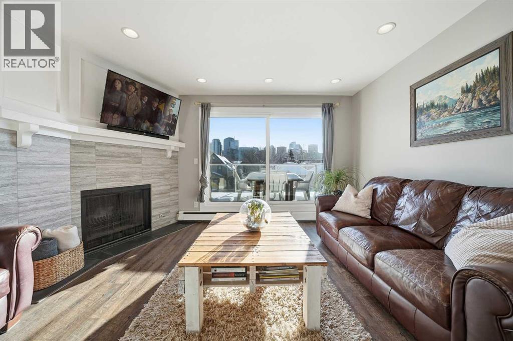 Unique opportunity in the heart of Sunnyside, just steps to the LRT, Safeway, the shops and restaurants of Kensington, Bow River pathways, and a quick walk into Downtown! This rare three-bedroom condo offers the perfect blend of inner-city convenience and comfortable living, all in a beautifully renovated, move-in-ready package. Flooded with natural light, the unit features a newly updated south-facing balcony where you can soak up the sun while enjoying spectacular downtown skyline views: the ideal spot for your morning coffee or evening unwind. Inside, the inviting living room is anchored by a real wood-burning fireplace with gas log lighter, creating a warm and cozy atmosphere that’s hard to find in condo living. The modern kitchen overlooks the spacious dining and living areas, making it perfect for entertaining or everyday living. Thoughtfully designed, the private rear wing of the unit offers three generous bedrooms, including a primary retreat complete with a convenient two-piece ensuite. Additional highlights include in-suite laundry, dedicated in-suite storage, and an exceptional layout that maximizes both function and flow. Whether you're walking to work, biking along the river, or enjoying everything Kensington has to offer, this is truly inner-city living at its best. Nothing to do but move in and enjoy; don’t miss this rare opportunity! (id:6769