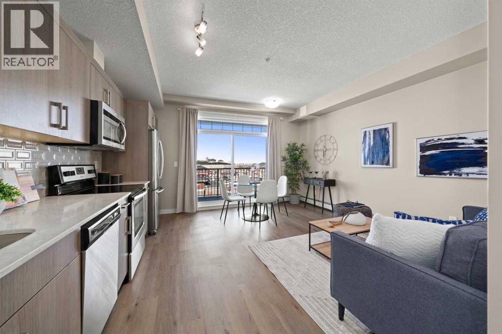 Imagine coming home to a space that feels effortlessly calm, bright, and easy. Perched on the third floor in Auburn Bay, this beautifully maintained one-bedroom suite welcomes you with natural light that pours through the windows and, on clear days, offers a subtle view of the city skyline in the distance. Lovingly cared for by its original owner, the pride of ownership is evident the moment you step inside. The layout is well designed—every square inch thoughtfully planned so there’s no wasted space. The kitchen is truly the heart of the home, with abundant counter space and generous cabinetry that make cooking and entertaining a joy. Whether you’re prepping dinner or hosting a cozy night in, everything has its place. The living area feels open and inviting, while the bedroom offers a peaceful retreat, complete with a transom window that allows soft light to filter through and enhance the tranquil atmosphere. The full bathroom is bright and sparkling, and in-suite laundry adds that everyday convenience. Step outside and you’re within walking distance to Co-op and an incredible array of shops, cafés, restaurants, and services in both Auburn Bay and neighbouring Mahogany—perfect for spontaneous dinner plans or weekend coffee dates. Pet lovers will appreciate that pets are welcome (with board approval), and with a nearby dog park, your four-legged companion will feel just as at home as you do. Added bonuses include a secure, warm, and dry main-floor storage unit and a surface-level parking stall for easy year-round access. This is the kind of home that makes life feel simple, connected, and beautifully manageable—the perfect blend of comfort, convenience, and community. (id:6769